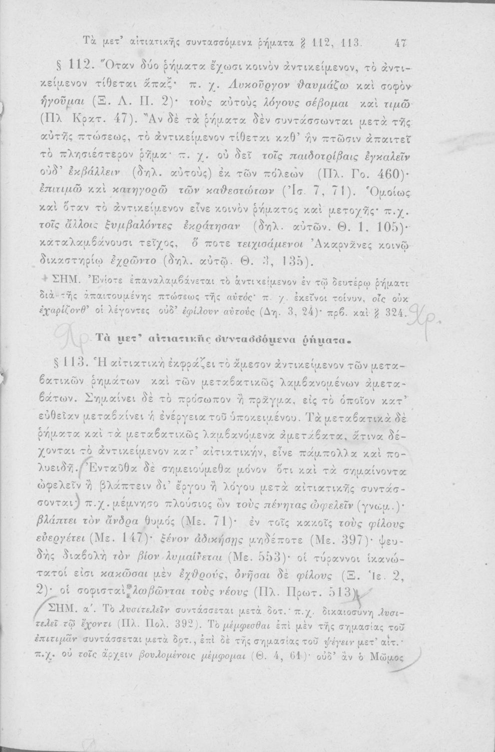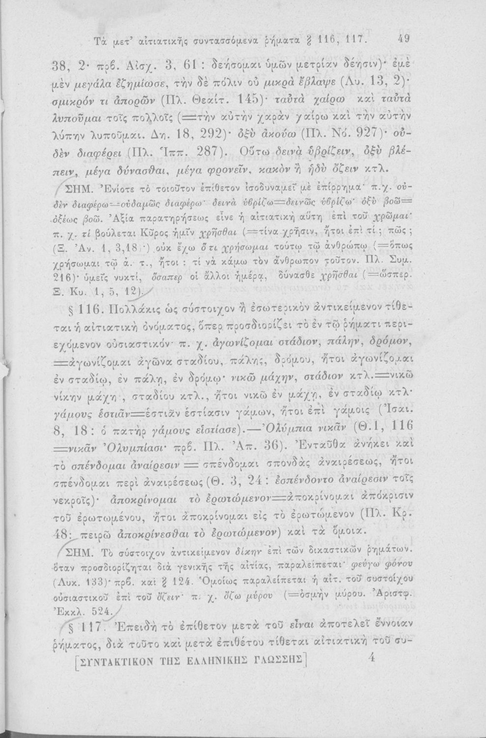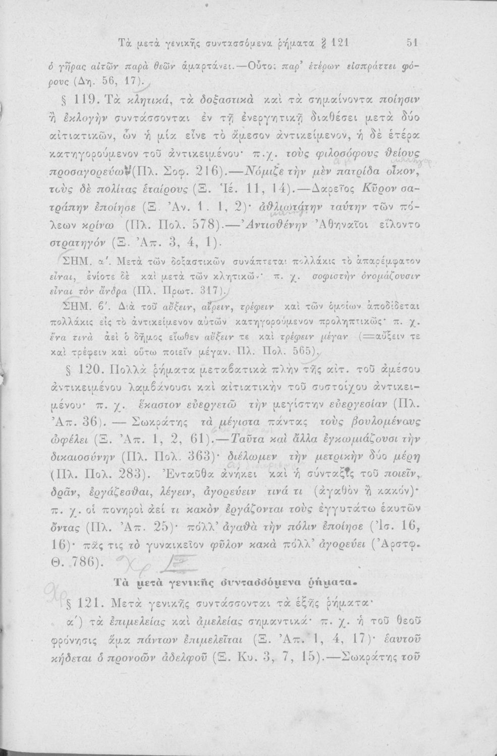 Κωδικός αναγνώρισης: 01-17968 Τίτλος: Συντακτικόν της ελληνικής γλώσσας μάλιστα δε της Αττικής Διαλέκτου προς χρήσιν των Γυμνασίων Συγγραφέας: Κωνσταντίνος Σ. Κατεβαίνης Μέγεθος και υπόστρωμα: Σχολικό εγχειρίδιο, 21εκ., σκληρό εξώφυλλο, 208 σελίδες. |