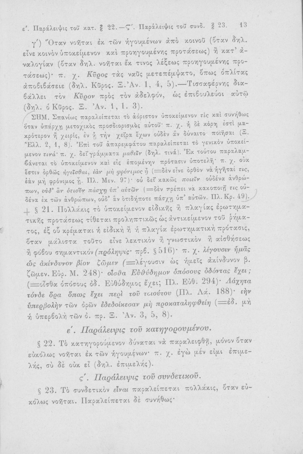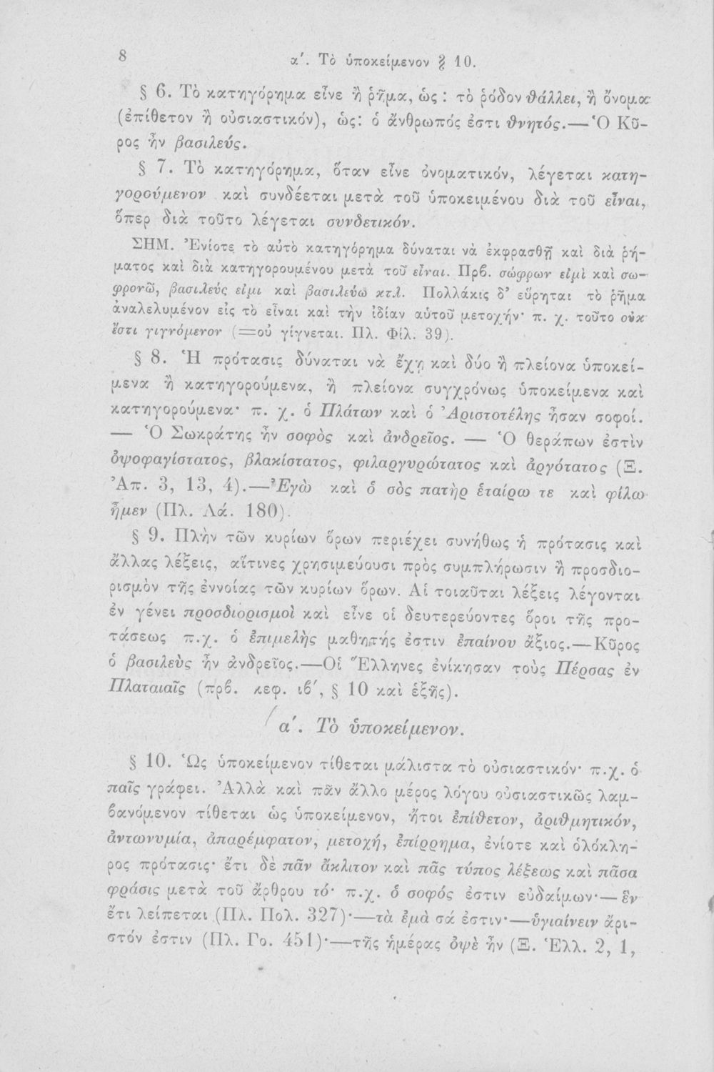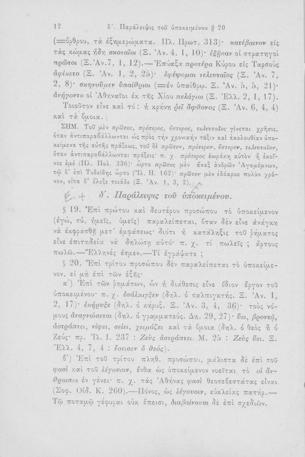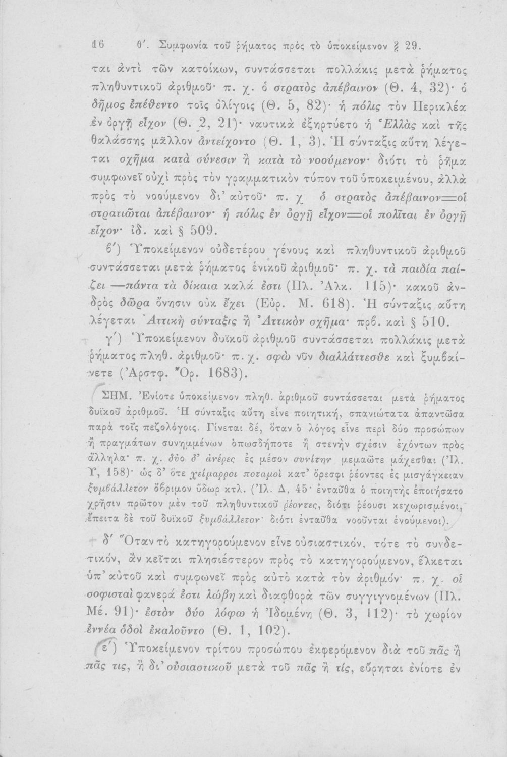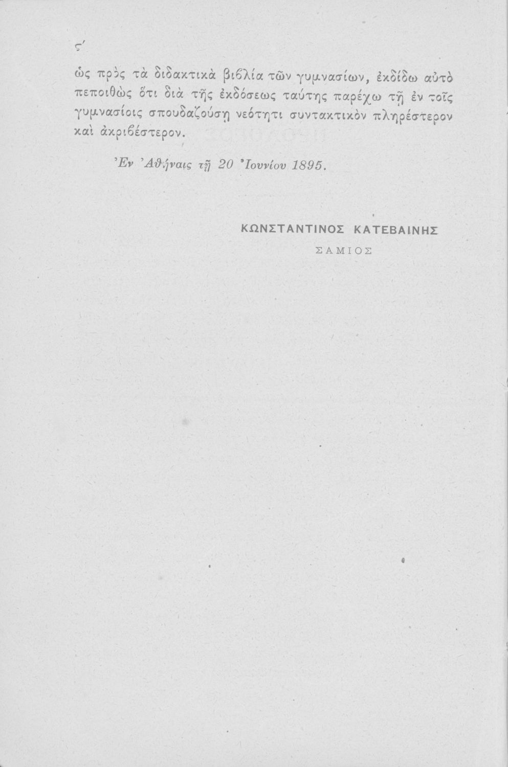 Σχολικό εγχειρίδιο Αρχαίων Ελληνικών για τα Ελληνικά Σχολεία και τα Ανώτερα Παρθεναγωγεία που εξετάζει τα μέρη του λόγου και την σύνταξή τους.