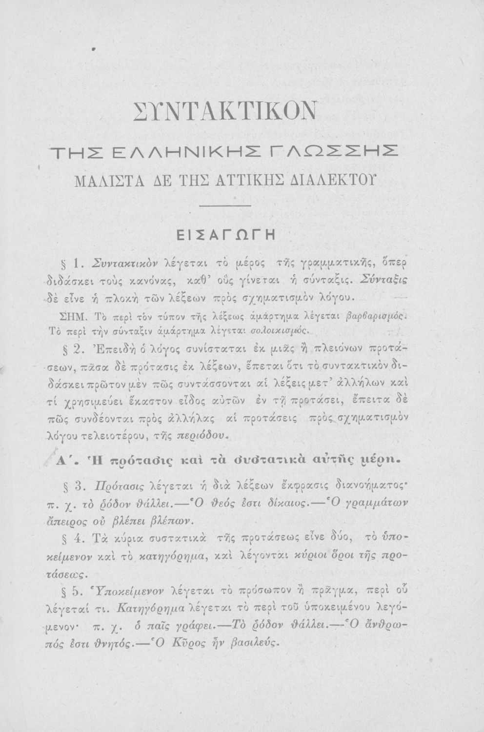 Συντακτικόν της ελληνικής γλώσσας μάλιστα δε της Αττικής Διαλέκτου προς χρήσιν των Γυμνασίων