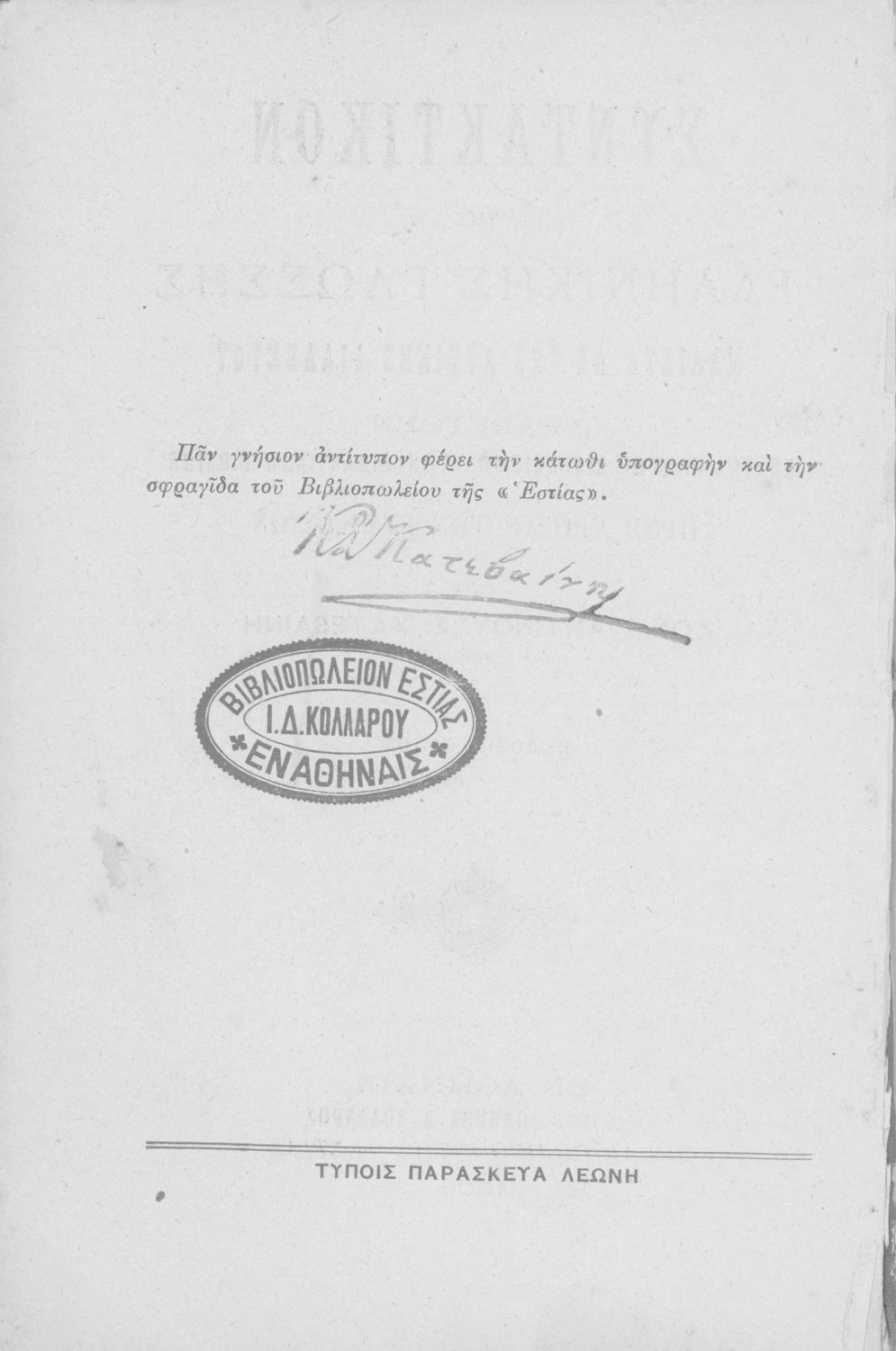 Εκδότης: Ιωάννης Δ. Κολλάρος