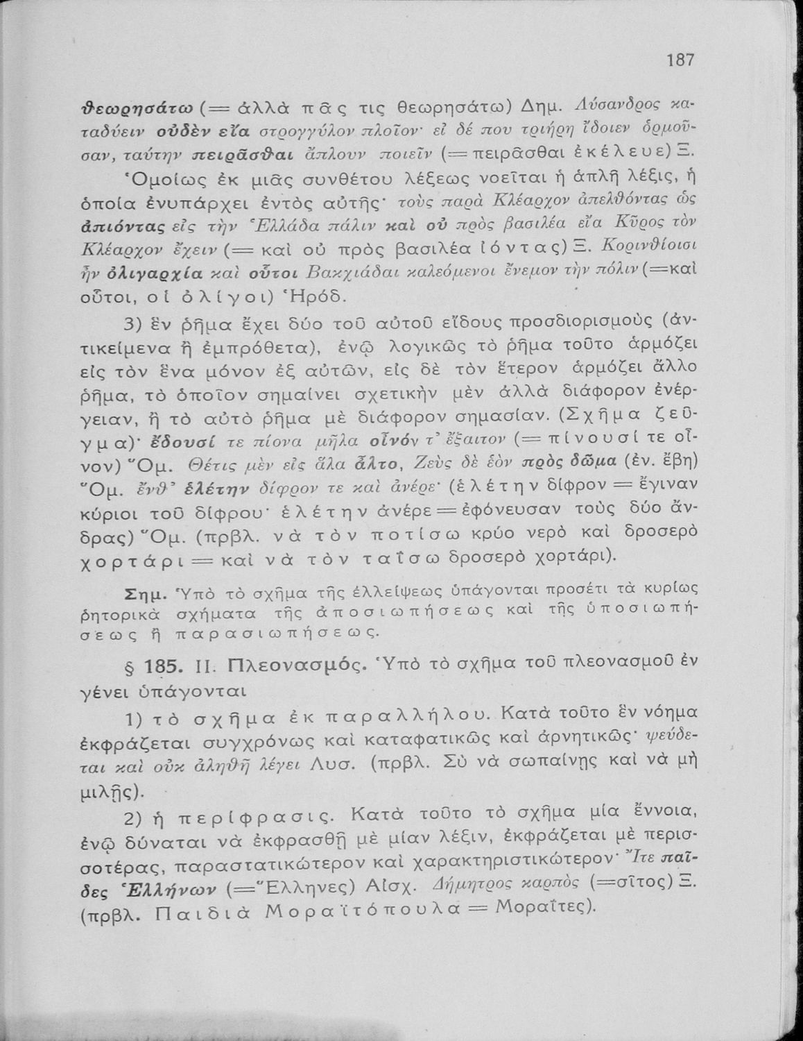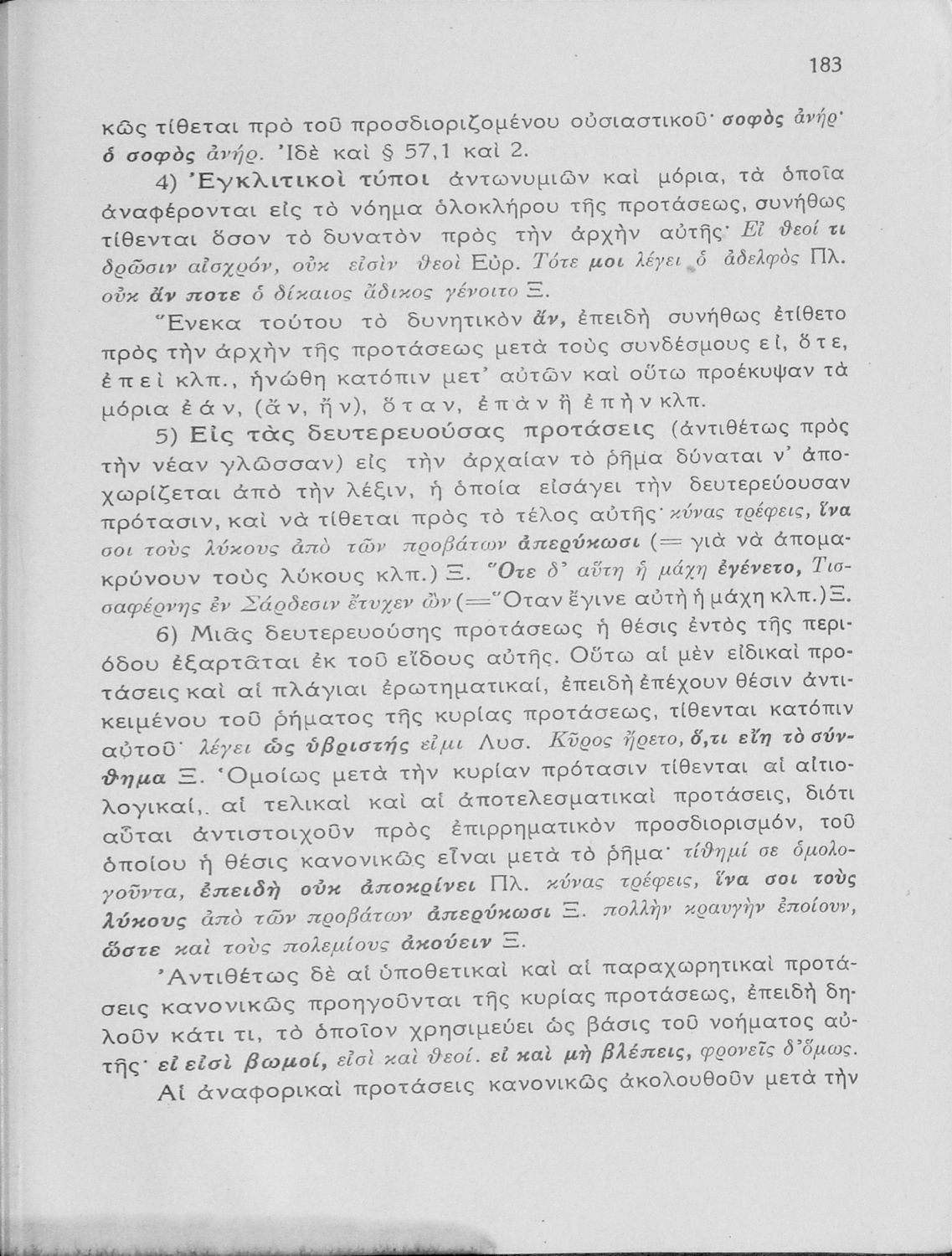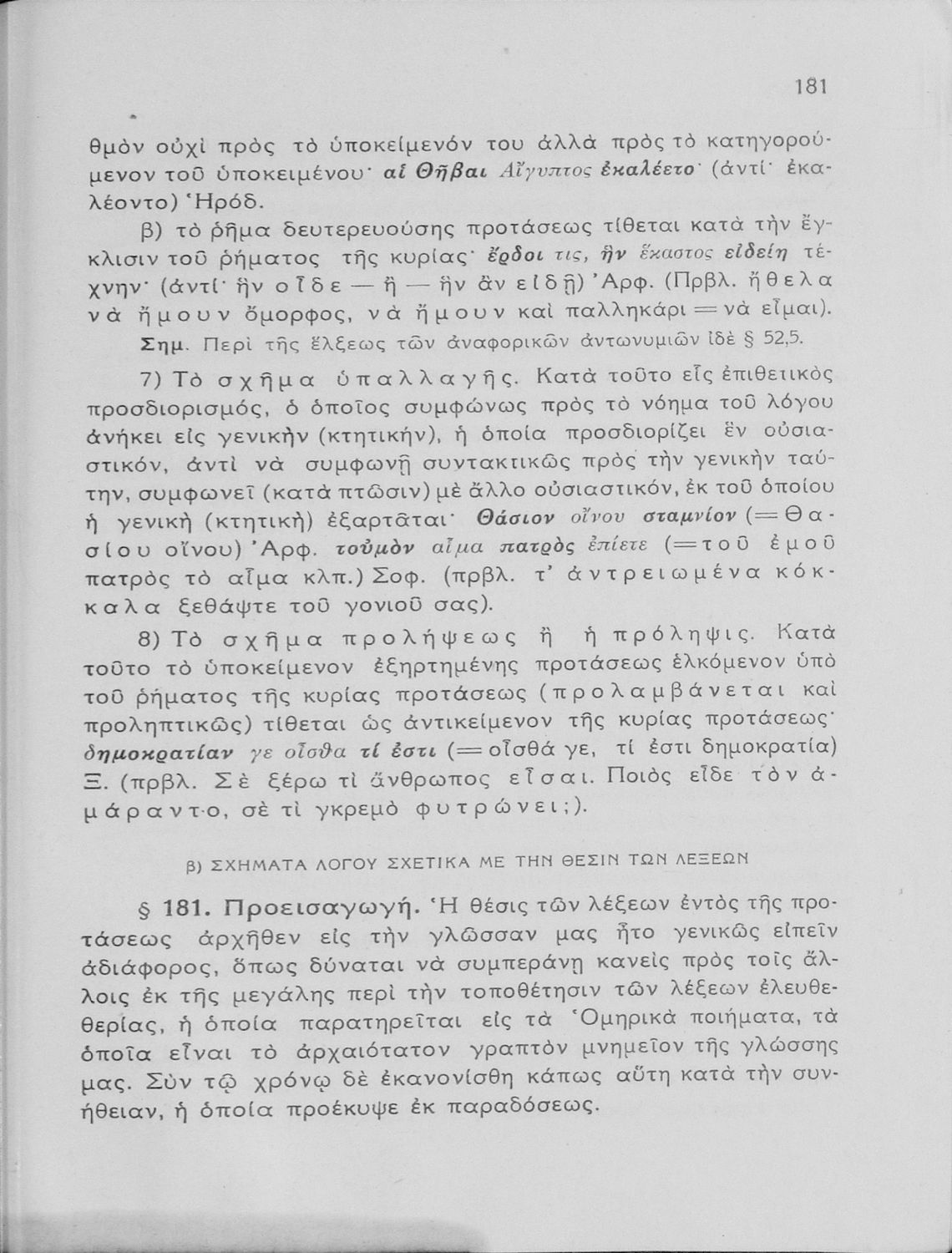 Σχολικό εγχειρίδιο Αρχαίων Ελληνικών Γυμνασίου που εξετάζει τα μέρη του λόγου και την σύνταξή τους.