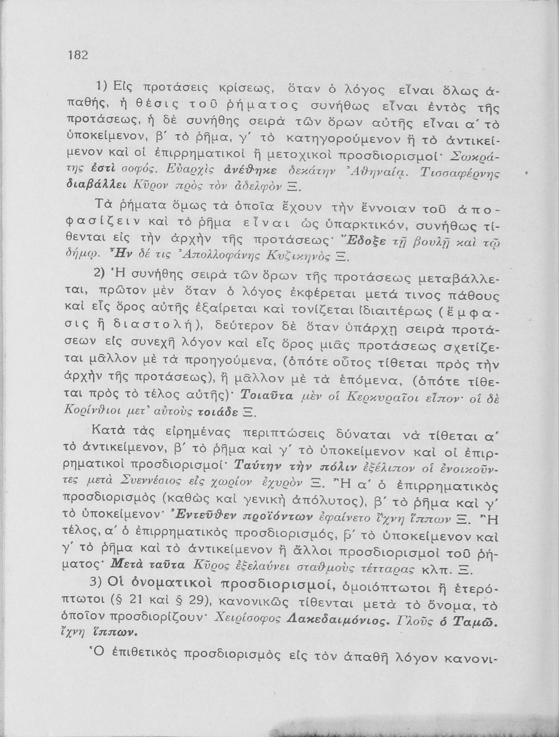 Βαθμίδα εκπαίδευσης: Δευτεροβάθμια Τάξη: Γυμνάσιο Μάθημα: Αρχαία Ελληνικά Γλώσσα: Καθαρεύουσα Παρουσίαση περιεχομένου: Σχολικό εγχειρίδιο Αρχαίων Ελληνικών Γυμνασίου που εξετάζει τα μέρη του λόγου και την σύνταξή τους. |