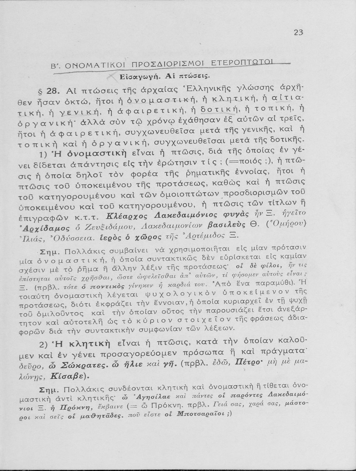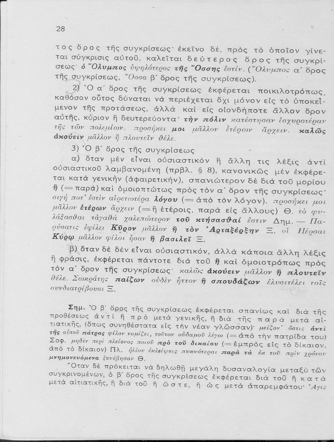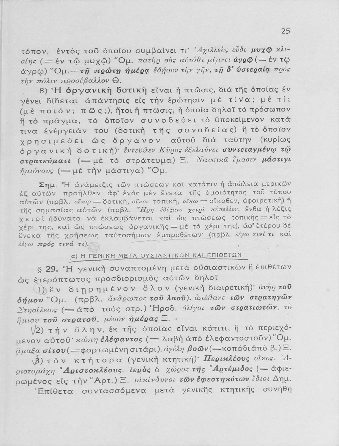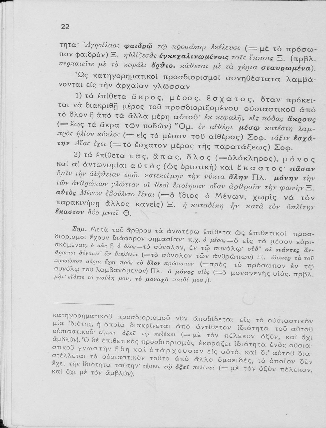 Σχολικό εγχειρίδιο Αρχαίων Ελληνικών Γυμνασίου που εξετάζει τα μέρη του λόγου και την σύνταξή τους.