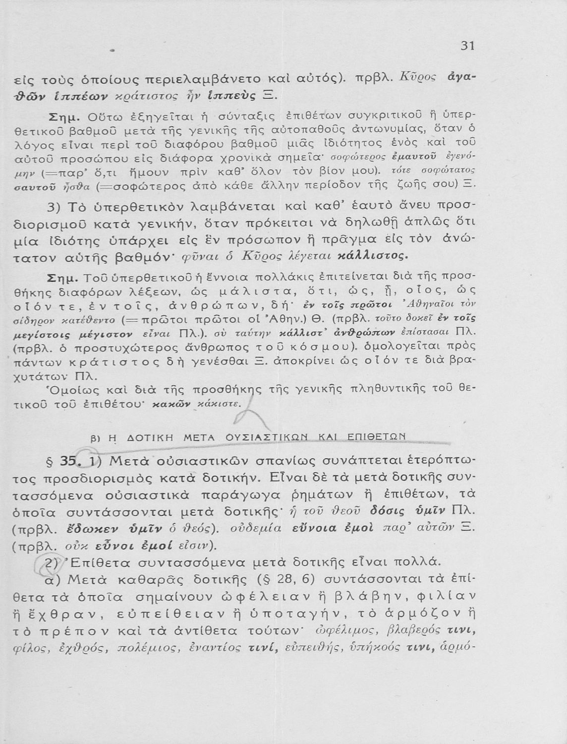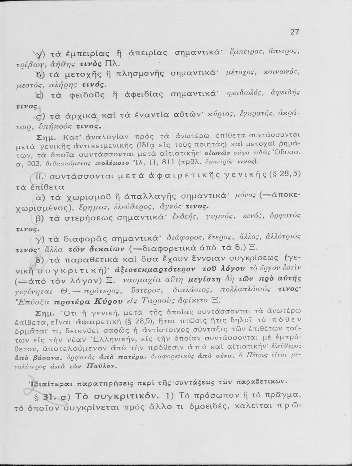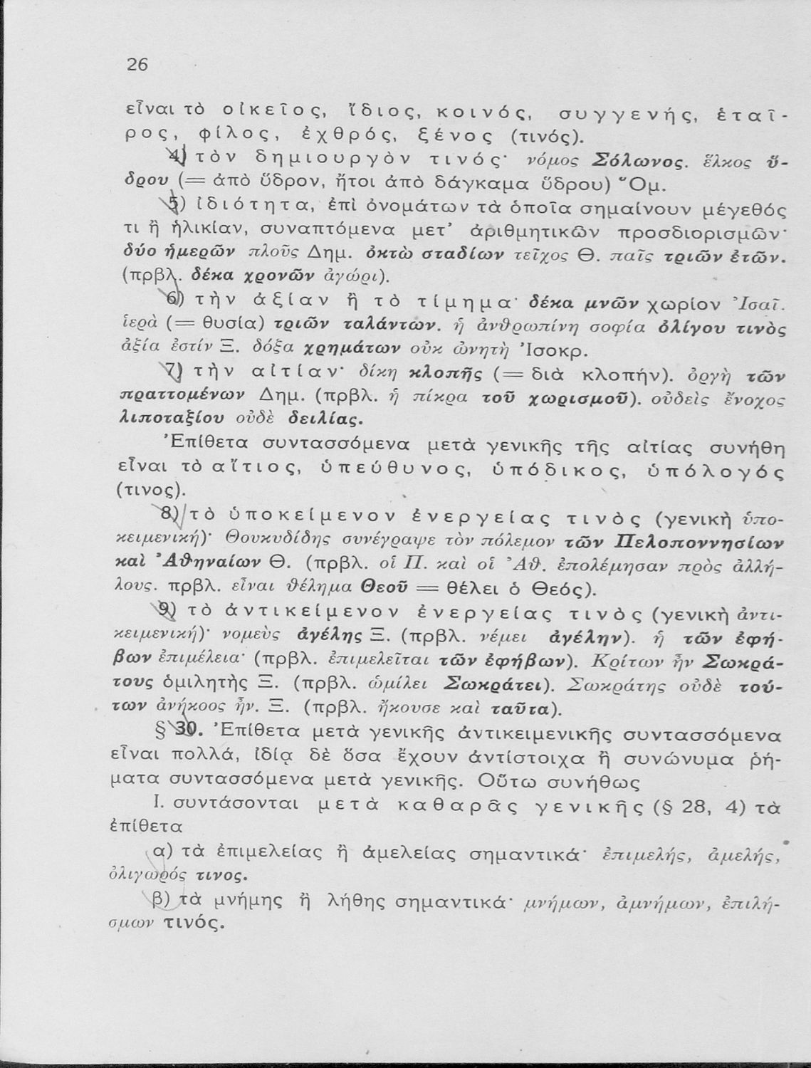 Βαθμίδα εκπαίδευσης: Δευτεροβάθμια Τάξη: Γυμνάσιο Μάθημα: Αρχαία Ελληνικά Γλώσσα: Καθαρεύουσα Παρουσίαση περιεχομένου: Σχολικό εγχειρίδιο Αρχαίων Ελληνικών Γυμνασίου που εξετάζει τα μέρη του λόγου και την σύνταξή τους. |