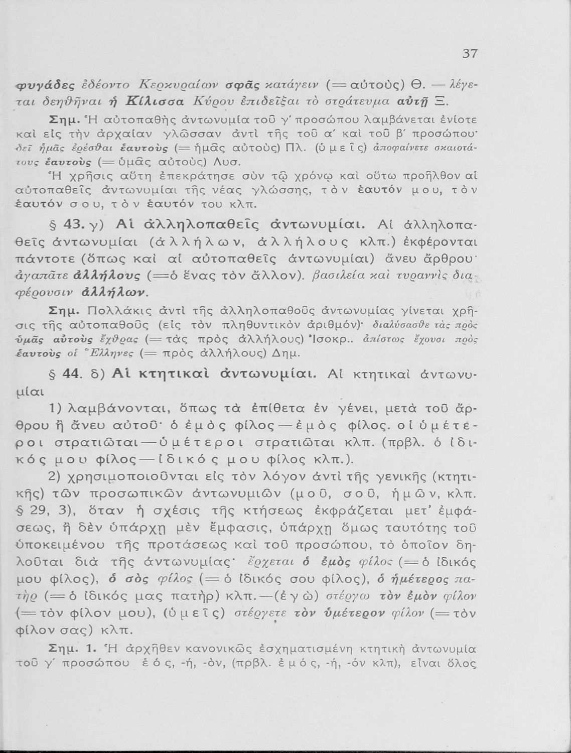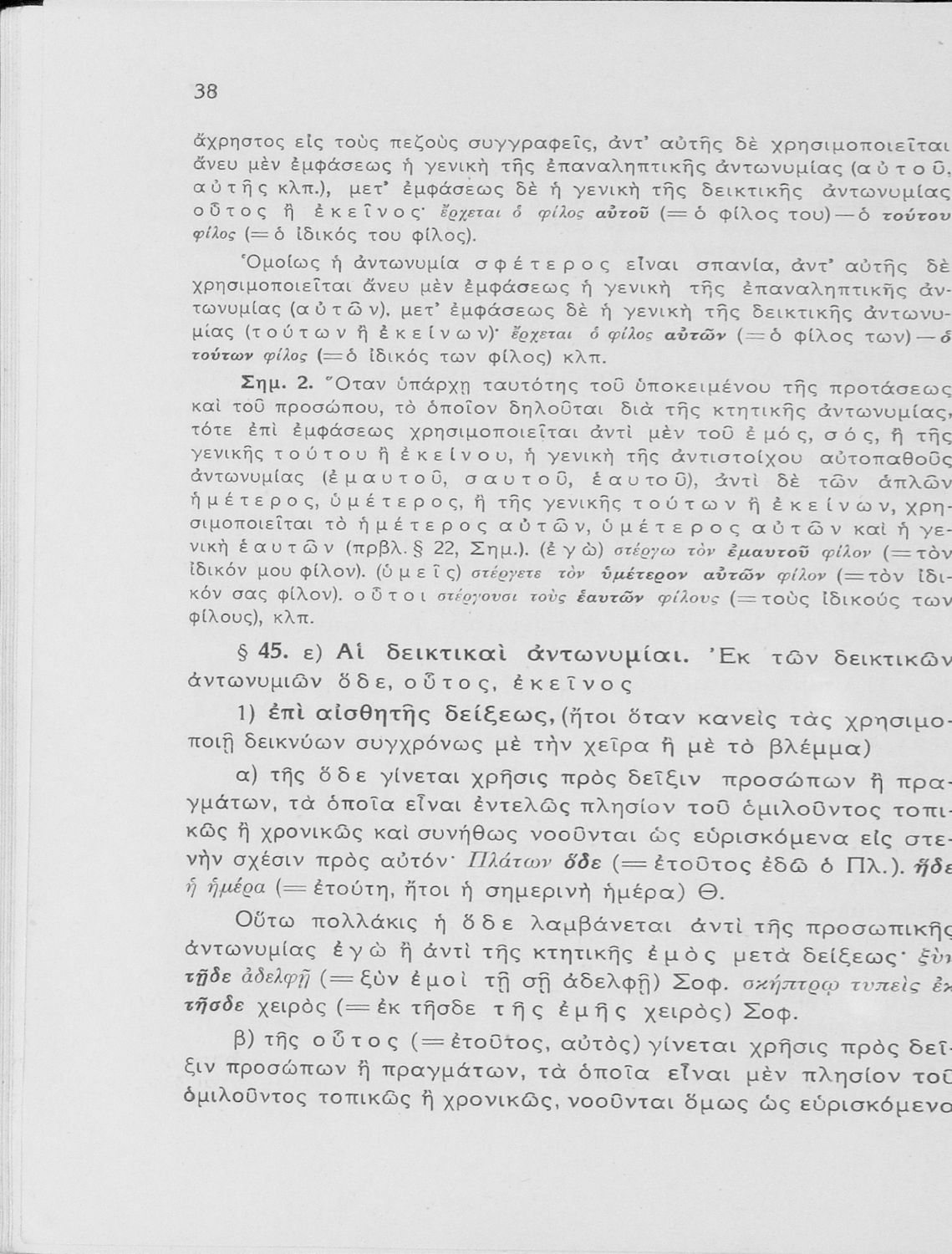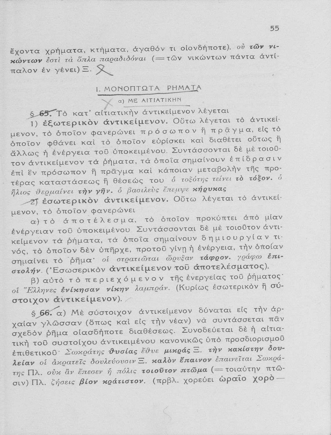 Σχολικό εγχειρίδιο Αρχαίων Ελληνικών για τα Ελληνικά Σχολεία, Παρθεναγωγεία και Γυμνάσια που περιέχει τους κανόνες γραμματικής και είναι χωρισμένο σε φθογγολογικό, τυπολογικό και ετυμολογικό μέρος.