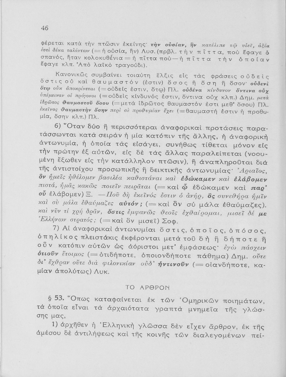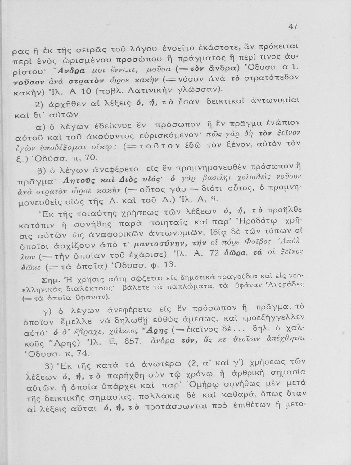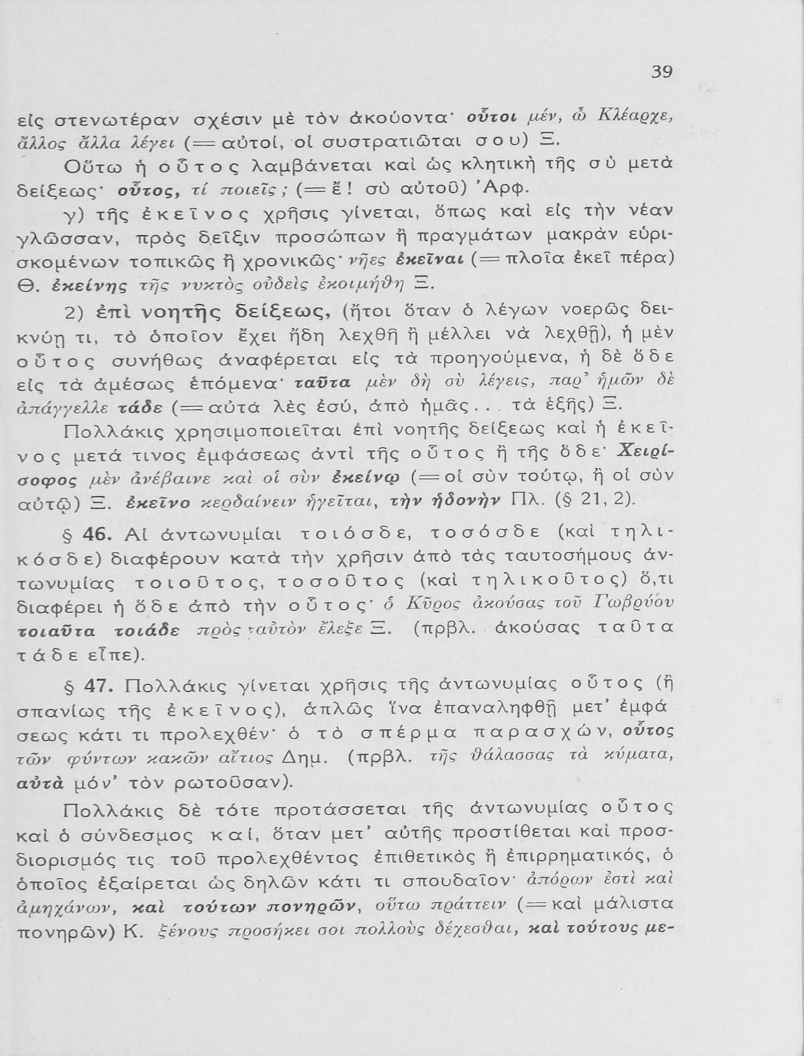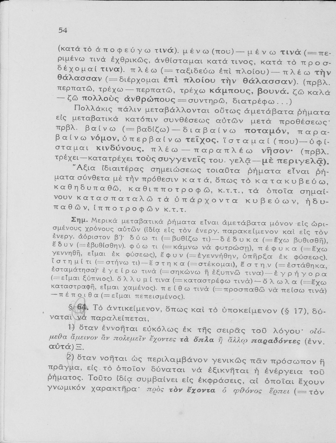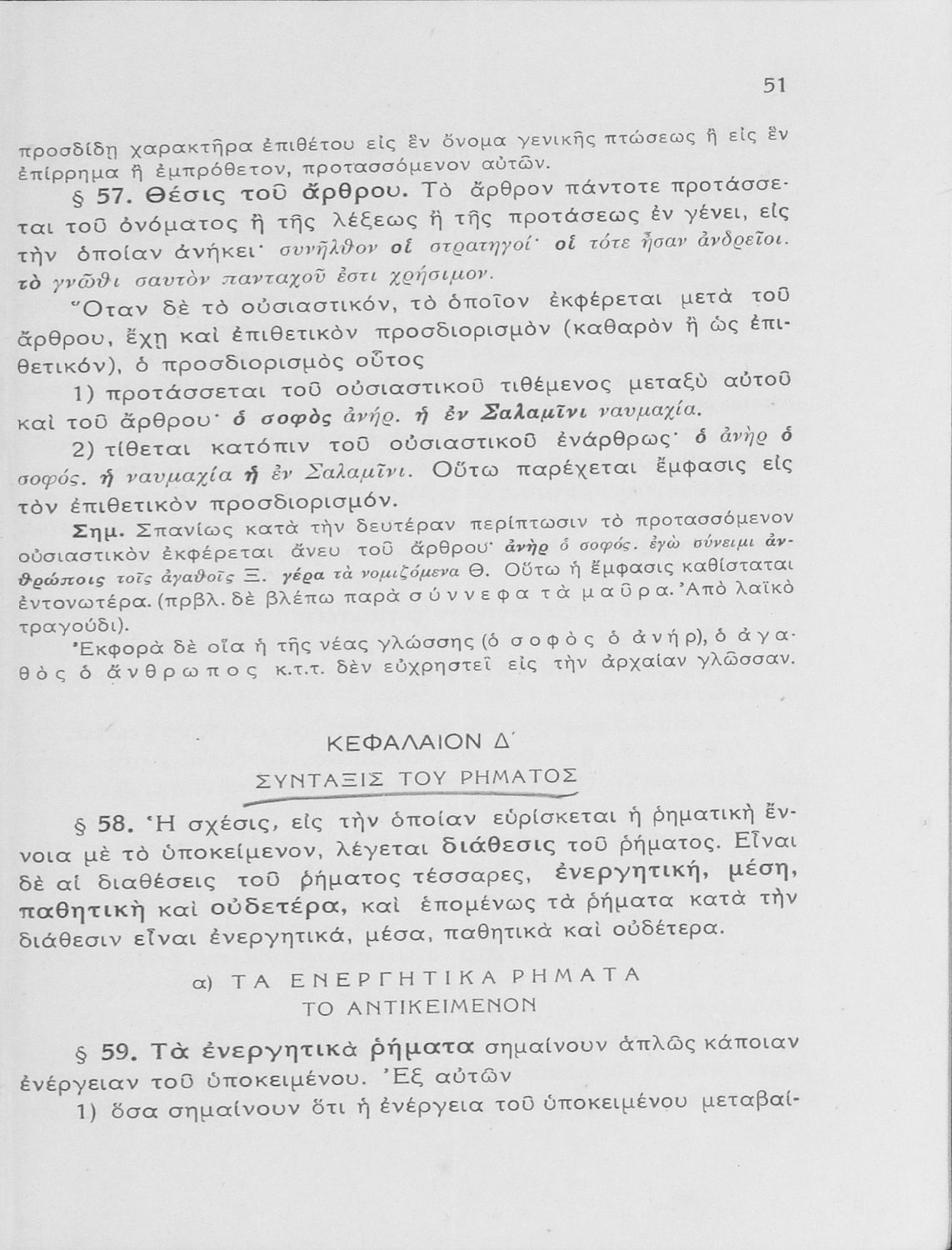 Σχολικό εγχειρίδιο Αρχαίων Ελληνικών Γυμνασίου που εξετάζει τα μέρη του λόγου και την σύνταξή τους.