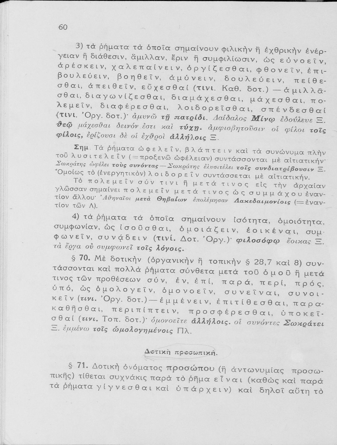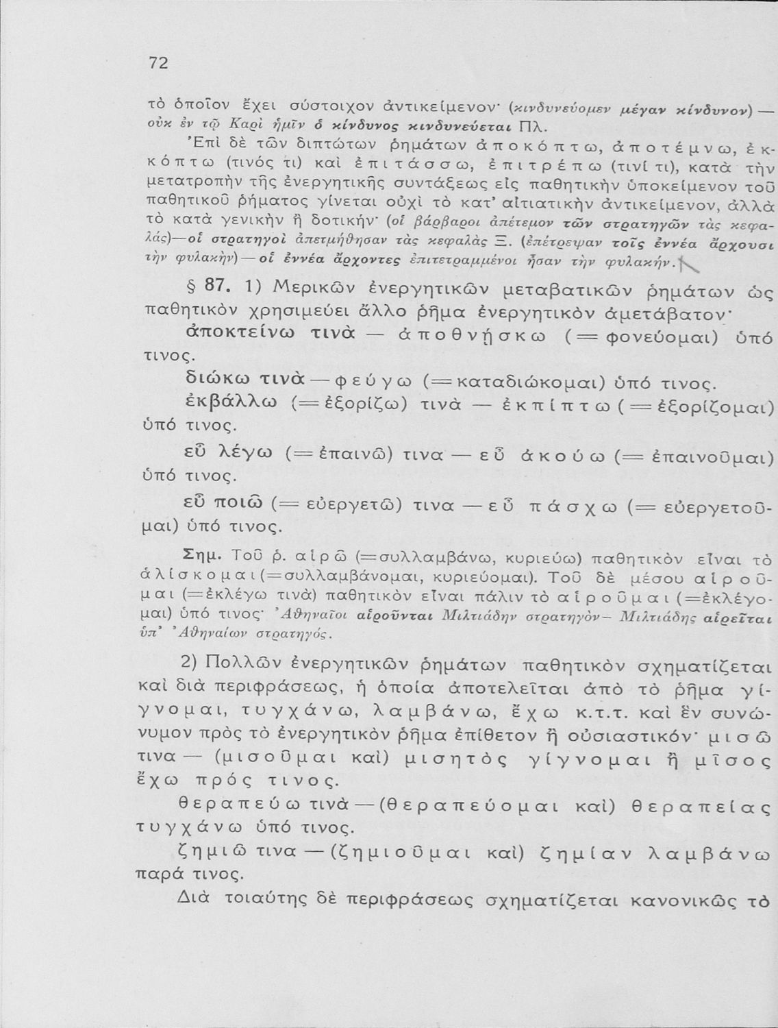 Κωδικός αναγνώρισης: 01-17969 Τίτλος: Συντακτικόν της αρχαίας ελληνικής γλώσσης προς χρήσιν των μαθητών των ανωτέρων τάξεων των Εξαταξίων Γυμνασίων νέου τύπου Συγγραφέας: Αχιλλέας Τζάρτζανος Μέγεθος και υπόστρωμα: Σχολικό εγχειρίδιο, 20εκ., σκληρό εξώφυλλο, 112 σελίδες. |