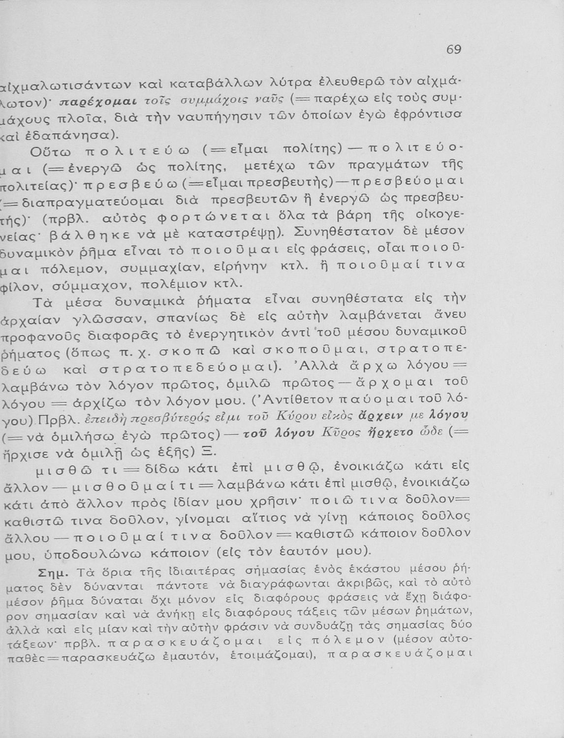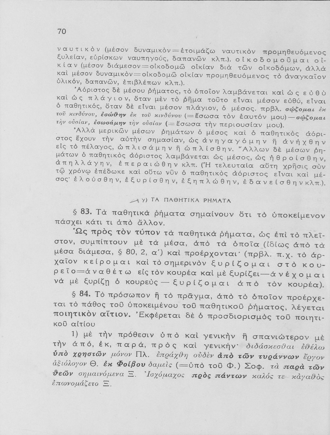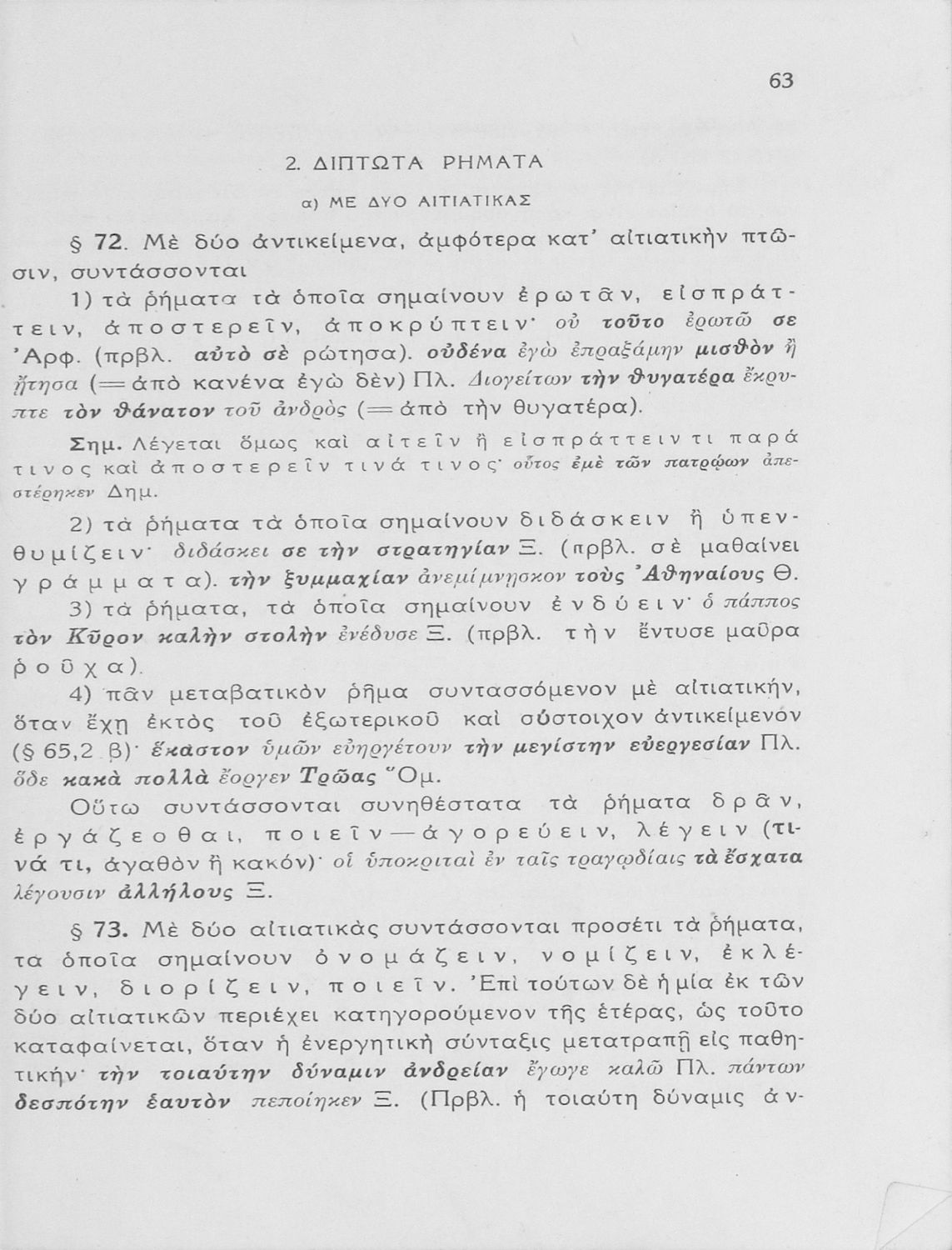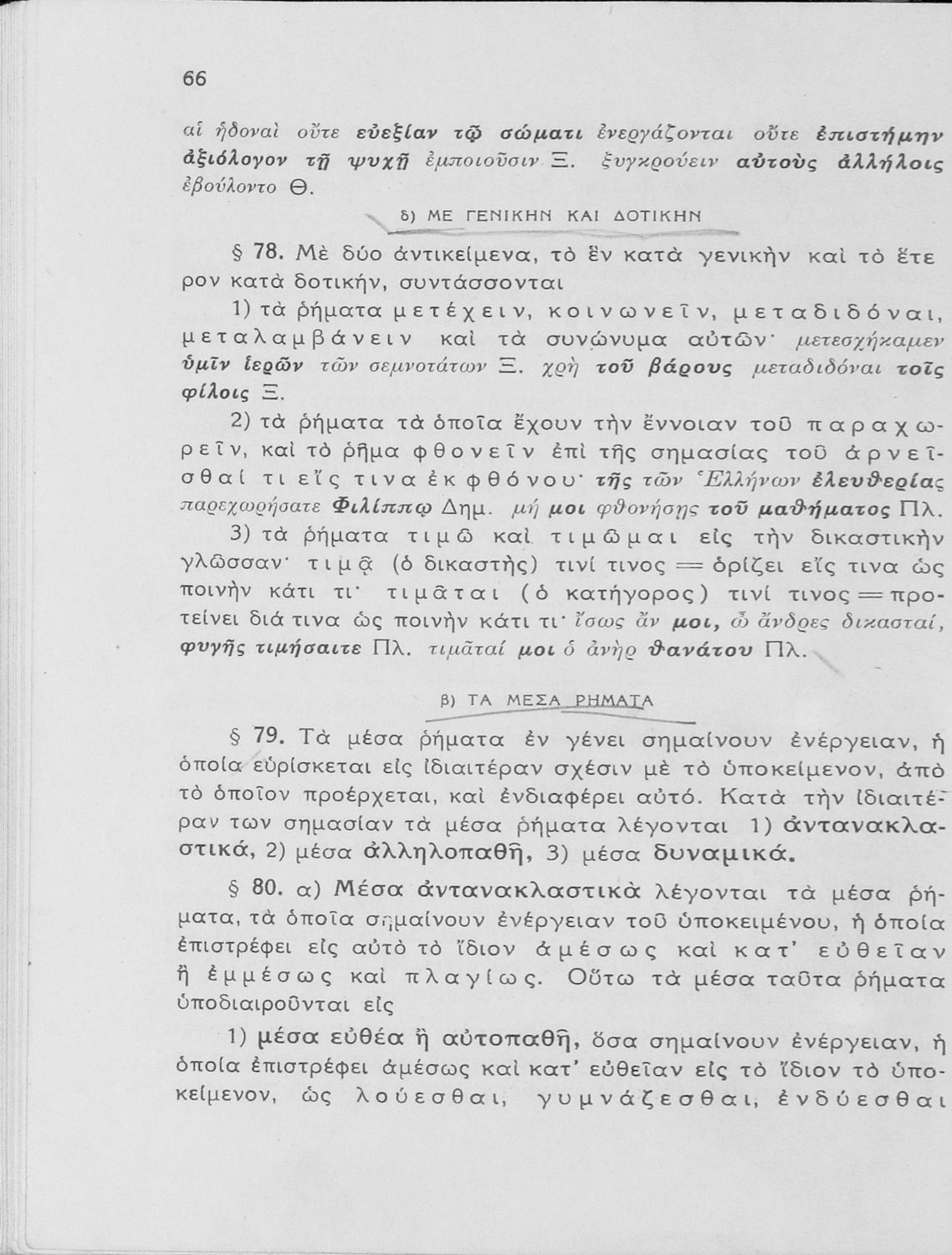 Σχολικό εγχειρίδιο Αρχαίων Ελληνικών Γυμνασίου που εξετάζει τα μέρη του λόγου και την σύνταξή τους.