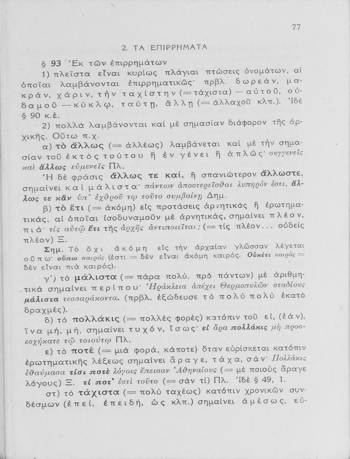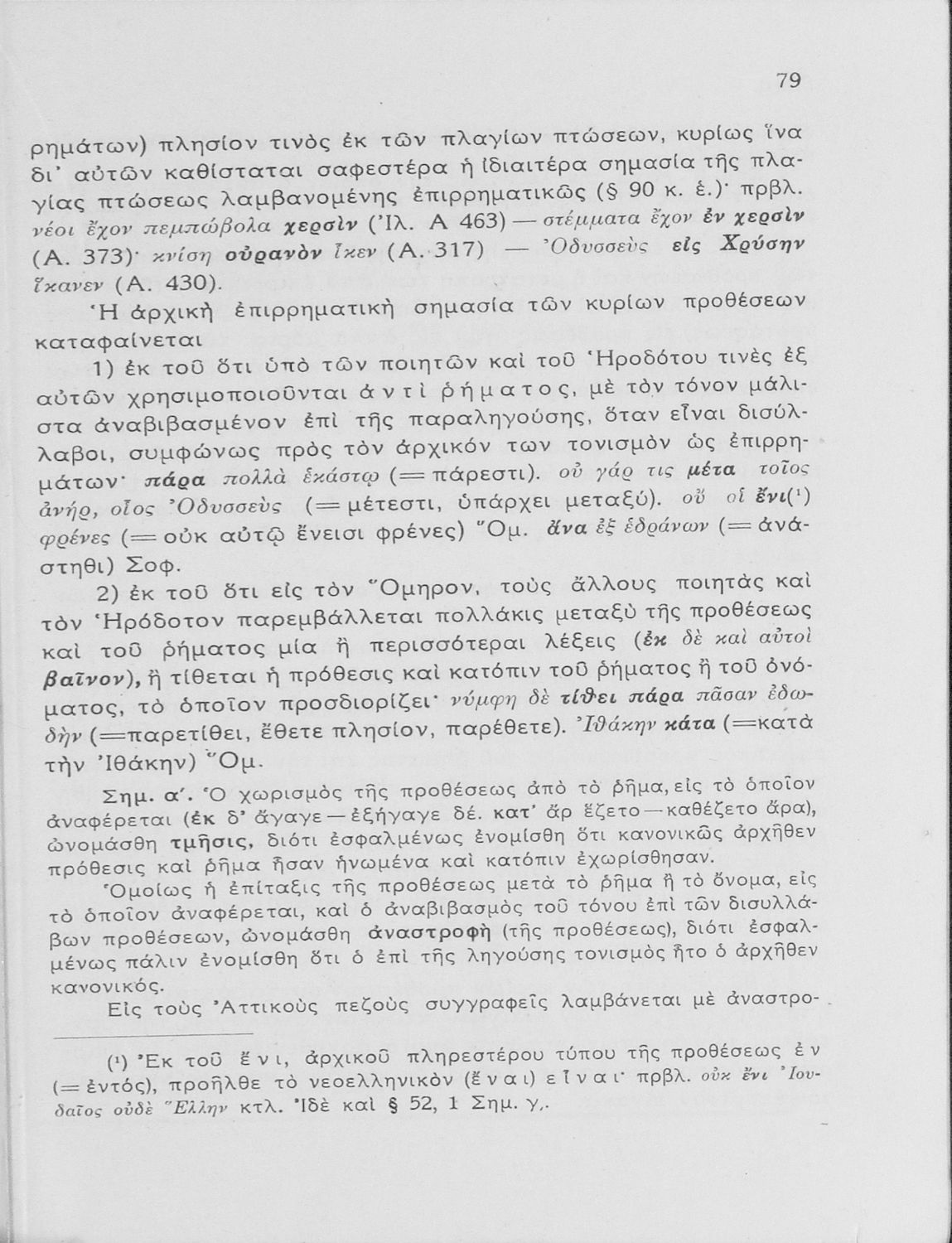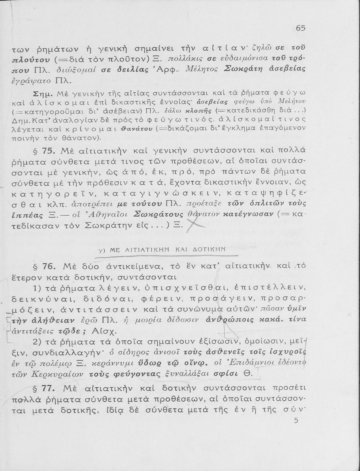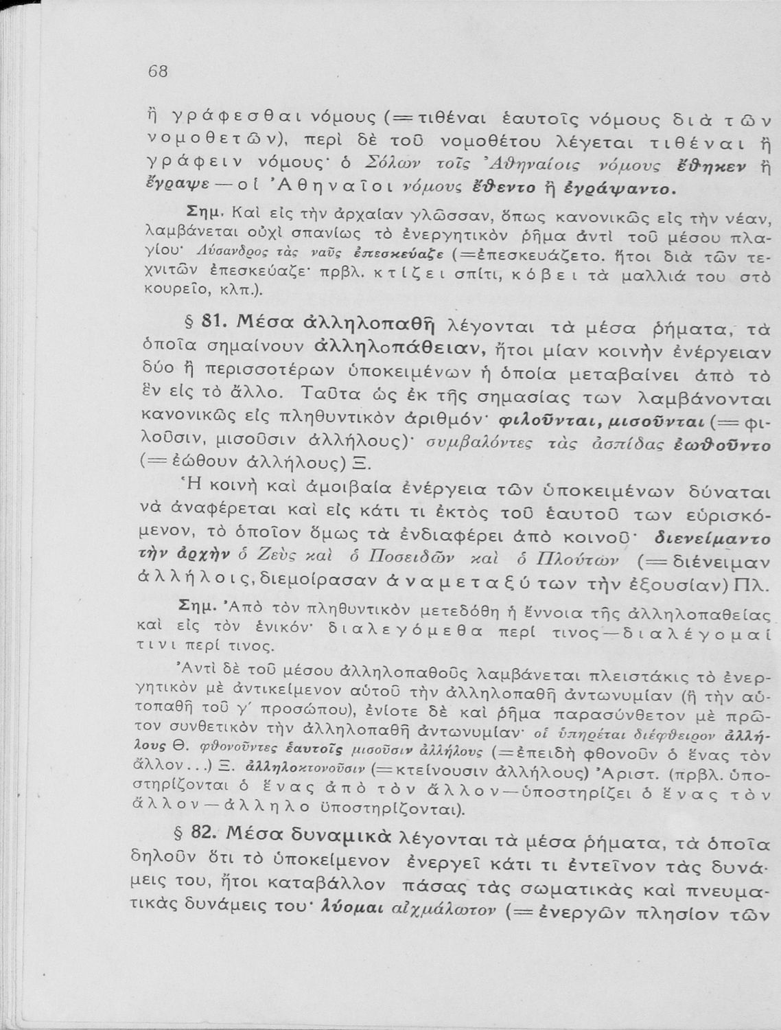 Σχολικό εγχειρίδιο Αρχαίων Ελληνικών Γυμνασίου που εξετάζει τα μέρη του λόγου και την σύνταξή τους.