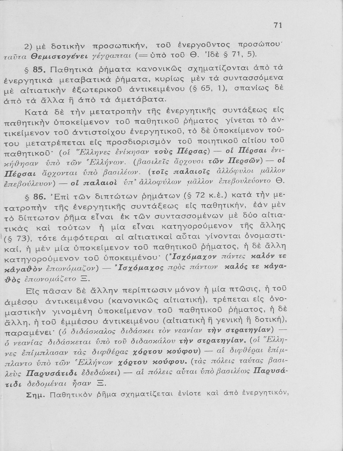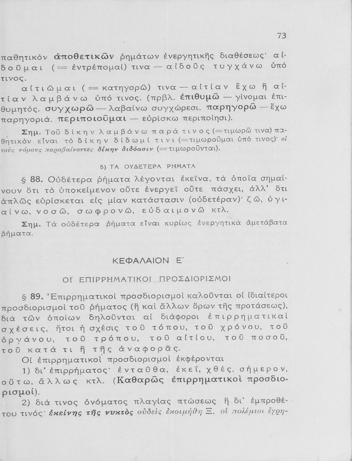 Βαθμίδα εκπαίδευσης: Δευτεροβάθμια Τάξη: Γυμνάσιο Μάθημα: Αρχαία Ελληνικά Γλώσσα: Καθαρεύουσα Παρουσίαση περιεχομένου: Σχολικό εγχειρίδιο Αρχαίων Ελληνικών Γυμνασίου που εξετάζει τα μέρη του λόγου και την σύνταξή τους. |