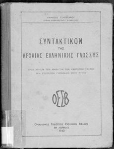 Συντακτικόν της αρχαίας ελληνικής γλώσσης προς χρήσιν των μαθητών των ανωτέρων τάξεων των Εξαταξίων Γυμνασίων νέου τύπου