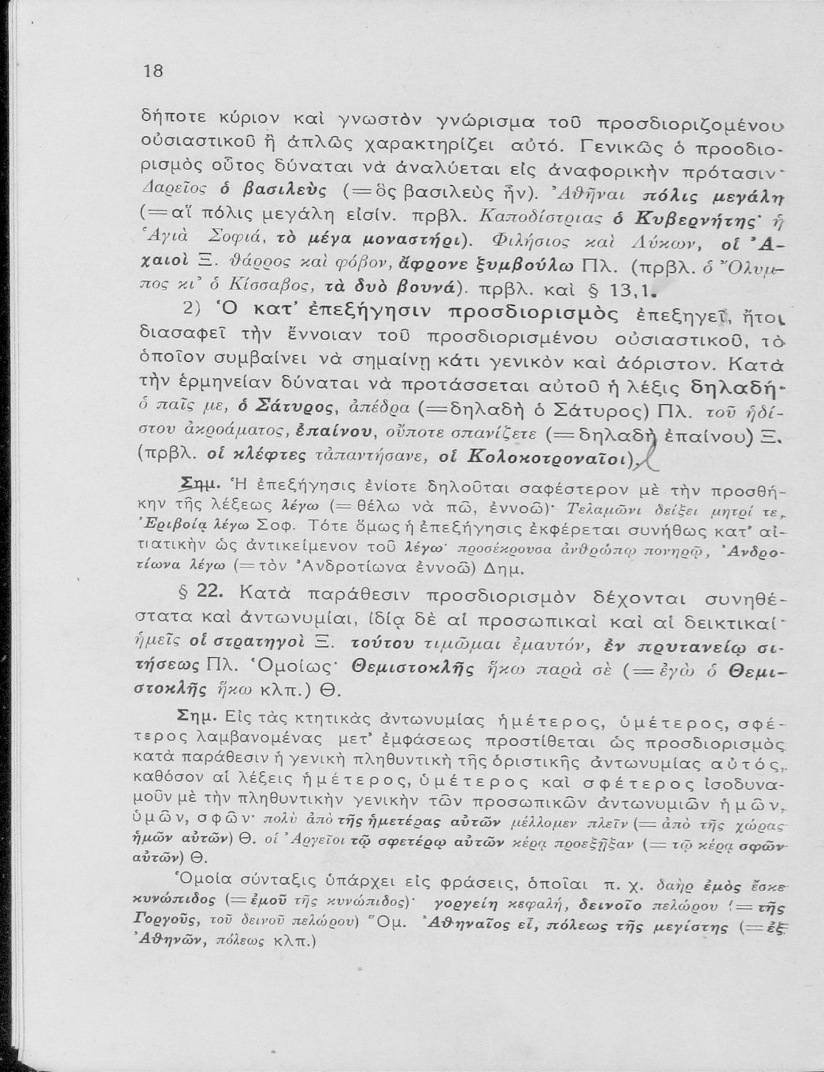 Σχολικό εγχειρίδιο Αρχαίων Ελληνικών για τα Ελληνικά Σχολεία, Παρθεναγωγεία και Γυμνάσια που περιέχει τους κανόνες γραμματικής και είναι χωρισμένο σε φθογγολογικό, τυπολογικό και ετυμολογικό μέρος.