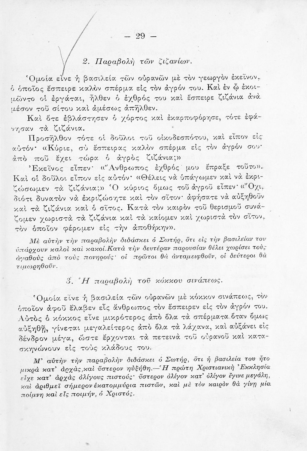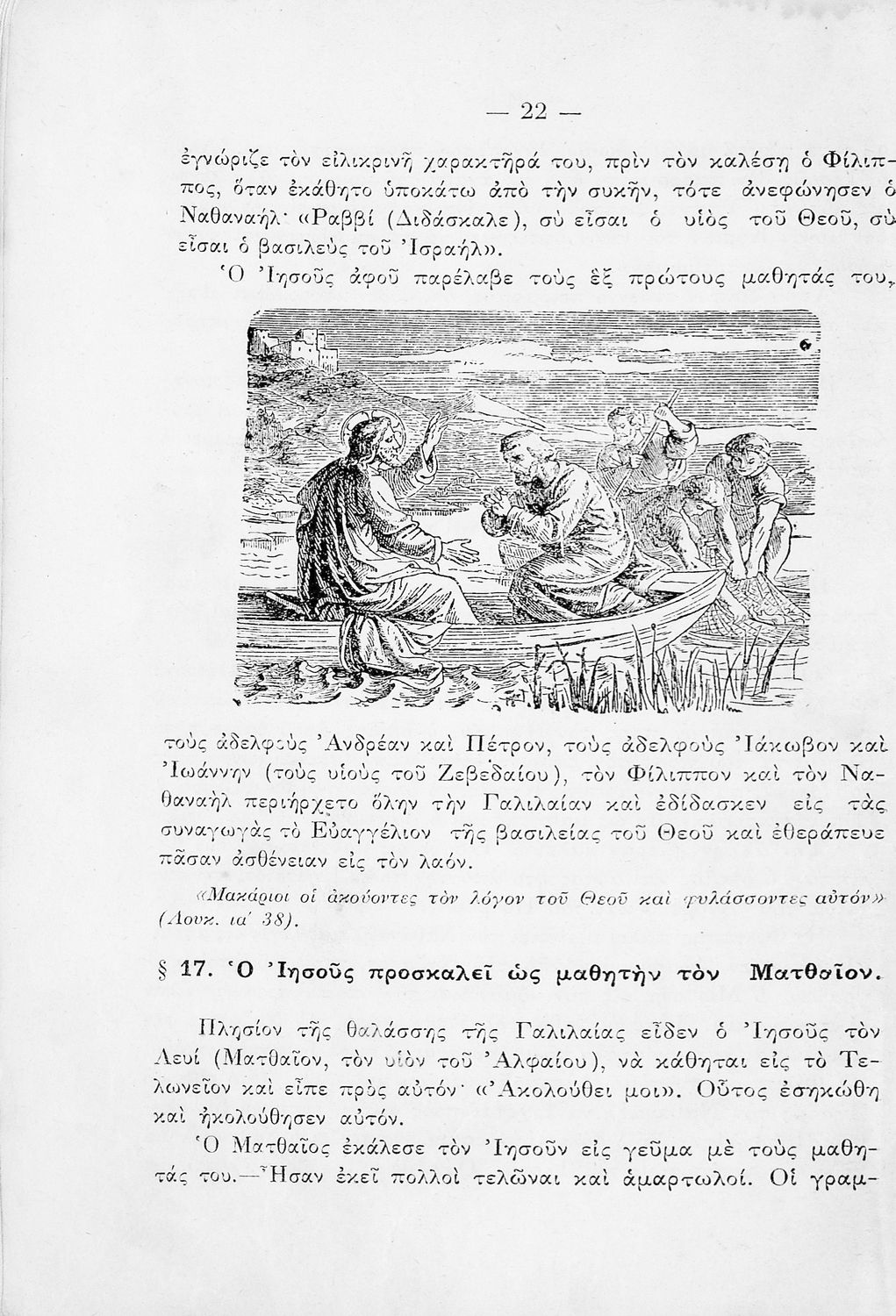 Σχολικό εγχειρίδιο Θρησκευτικών για τα Ελληνικά Σχολεία και Παρθεναγωγεία που συνιστά μία εξιστόρηση της Καινής Διαθήκης από τη γέννηση της Θεοτόκου ως την ανάληψη του Χριστού και τη δράση των Αποστόλων.