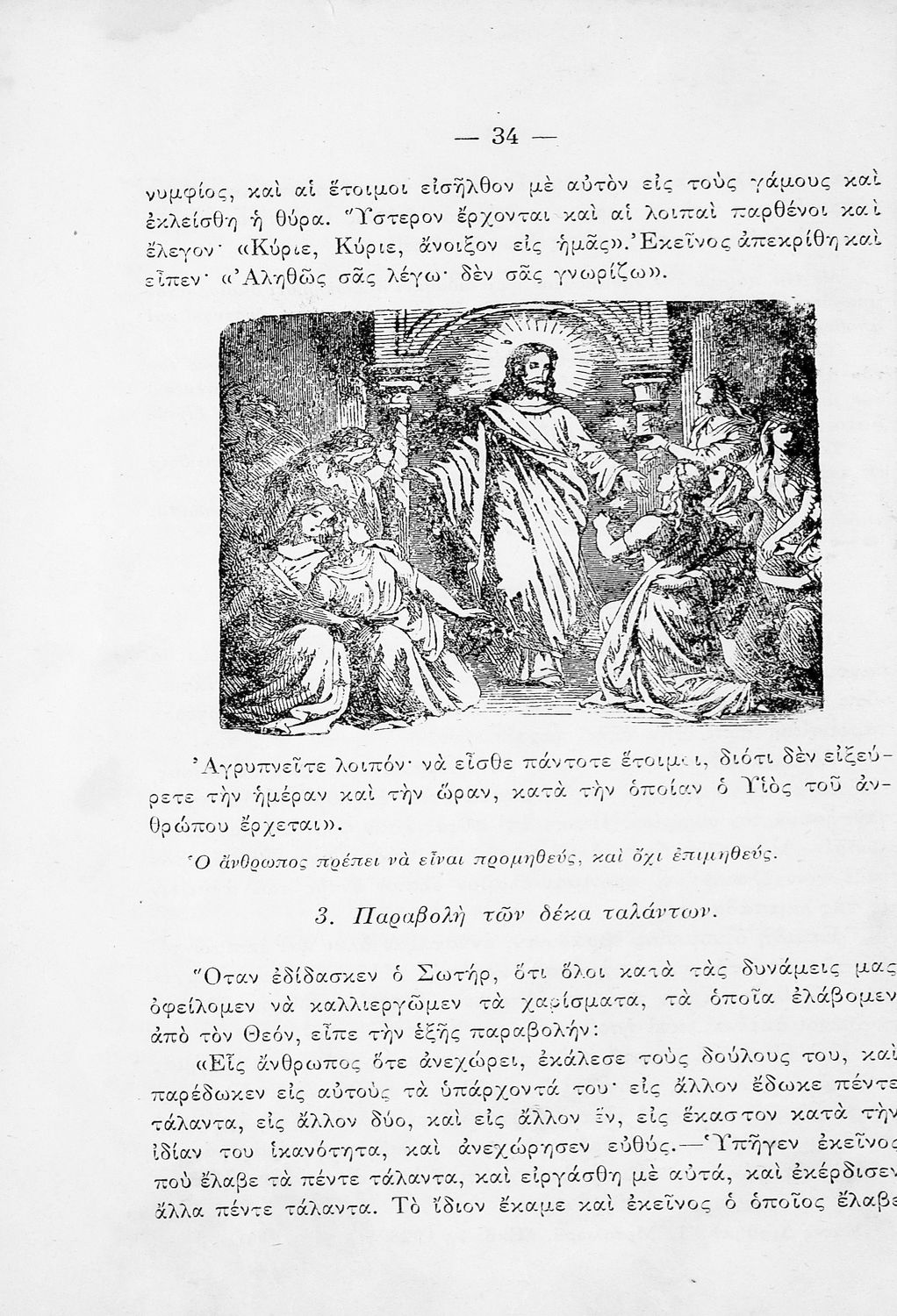 Σχολικό εγχειρίδιο Θρησκευτικών για τα Ελληνικά σχολεία και Παρθεναγωγεία που συνιστά μία εξιστόρηση της Καινής Διαθήκης από τη γέννηση της Θεοτόκου ως την ανάληψη του Χριστού και τη δράση των Αποστόλων.