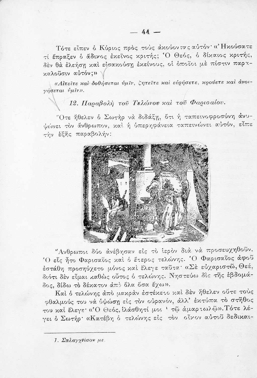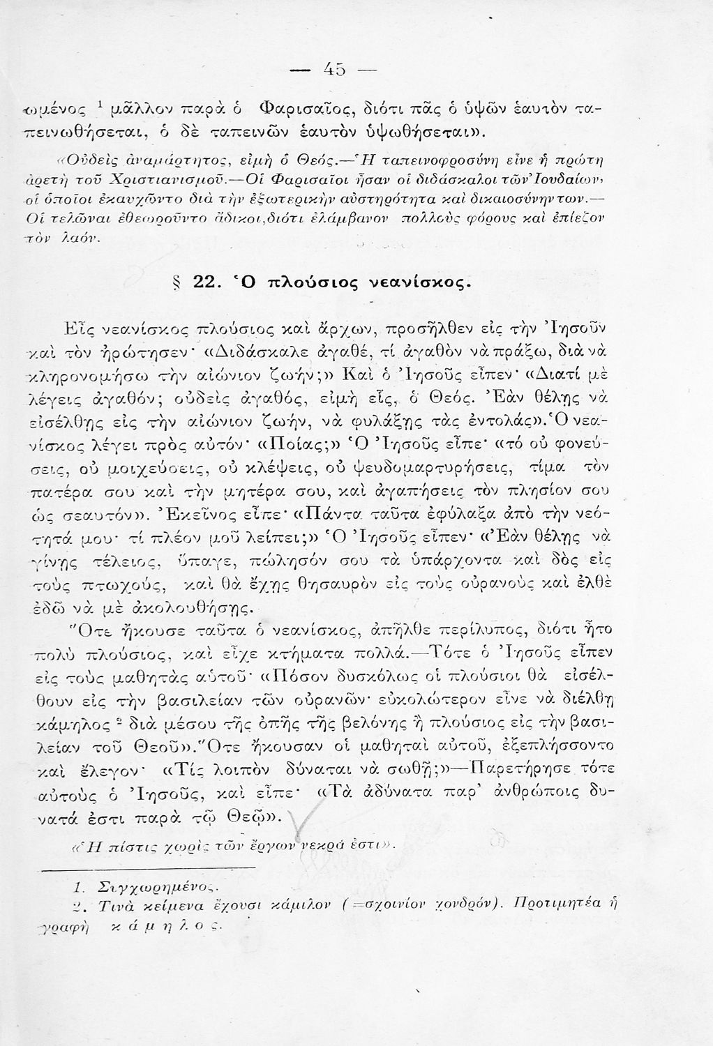 Σχολικό εγχειρίδιο Θρησκευτικών για τα Ελληνικά Σχολεία και τα Παρθεναγωγεία που περιλαμβάνει την ιστορία της Καινής Διαθήκης από τον Ευαγγελισμό της Θεοτόκου μέχρι την ανάληψη του Ιησού Χριστού