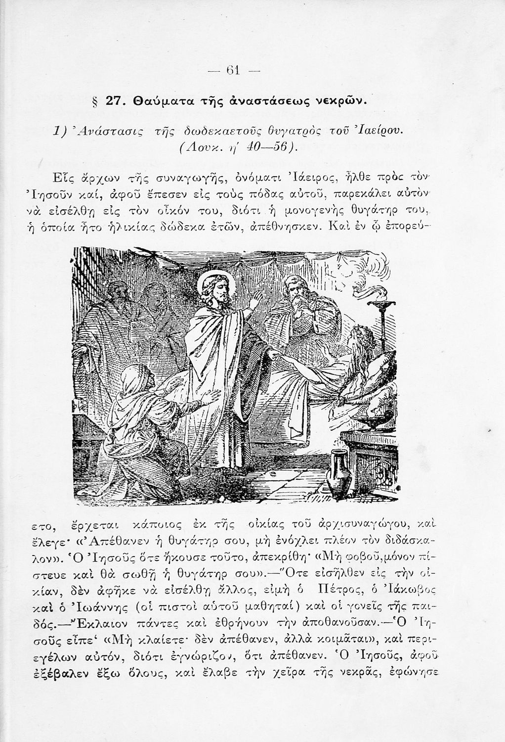 Σχολικό εγχειρίδιο Θρησκευτικών για τα Ελληνικά Σχολεία και Παρθεναγωγεία που συνιστά μία εξιστόρηση της Καινής Διαθήκης από τη γέννηση της Θεοτόκου ως την ανάληψη του Χριστού και τη δράση των Αποστόλων.