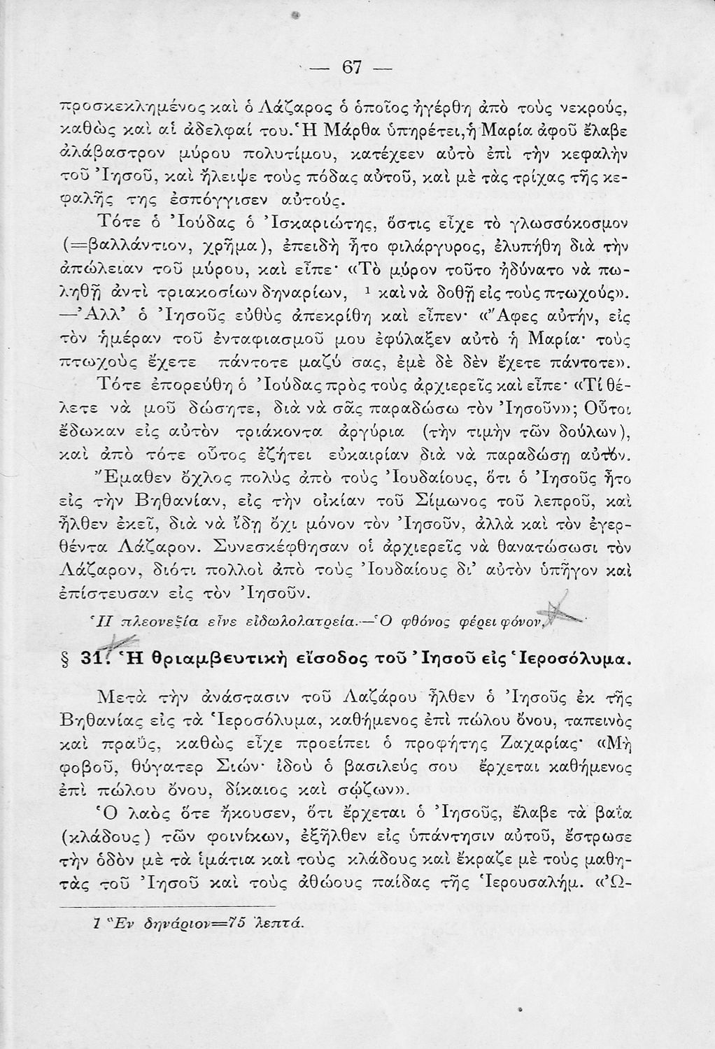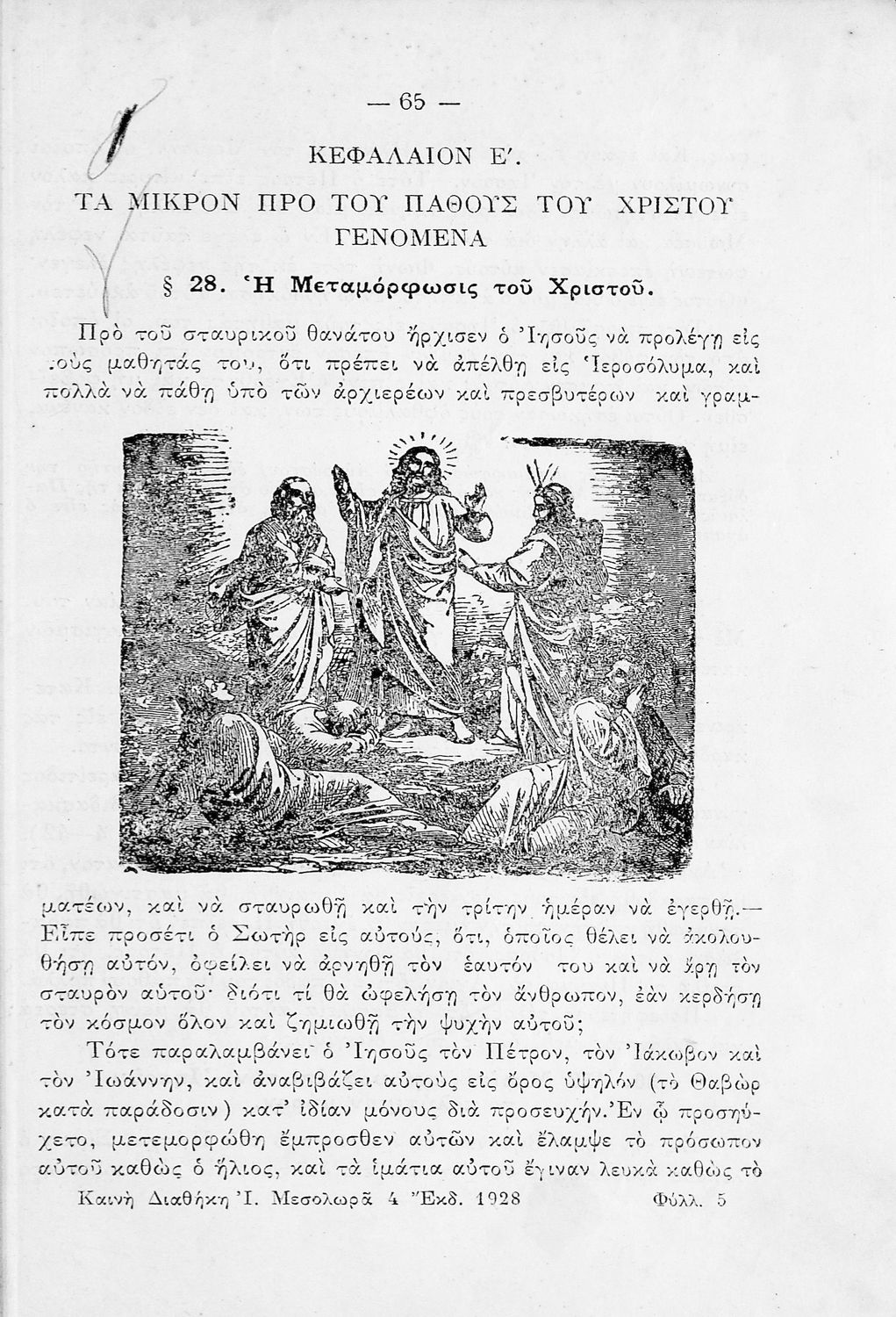 Σχολικό εγχειρίδιο Θρησκευτικών για τα Ελληνικά Σχολεία και τα Παρθεναγωγεία που περιλαμβάνει την ιστορία της Καινής Διαθήκης από τον Ευαγγελισμό της Θεοτόκου μέχρι την ανάληψη του Ιησού Χριστού