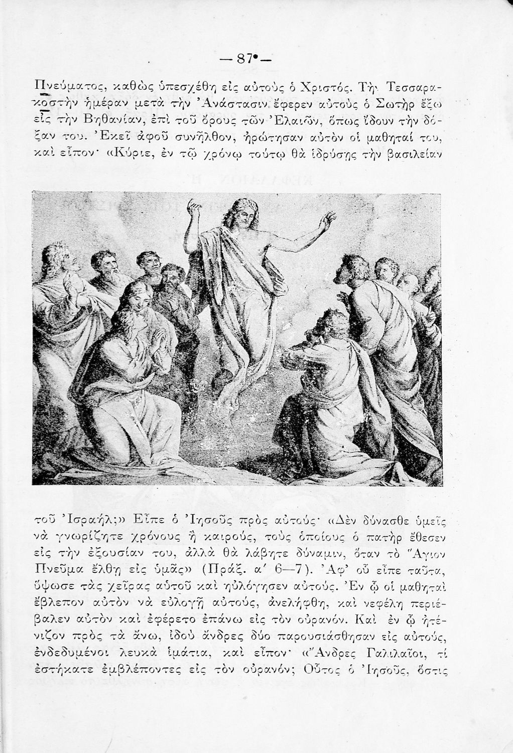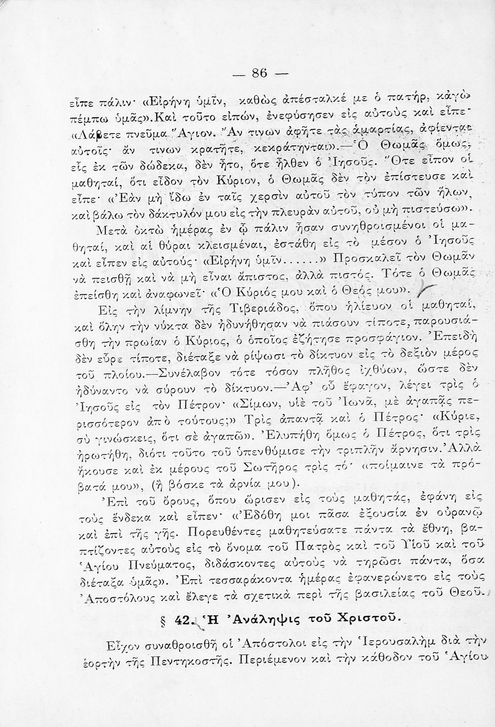 Σχολικό εγχειρίδιο Θρησκευτικών για τα Ελληνικά Σχολεία και τα Παρθεναγωγεία που περιλαμβάνει την ιστορία της Καινής Διαθήκης από τον Ευαγγελισμό της Θεοτόκου μέχρι την ανάληψη του Ιησού Χριστού