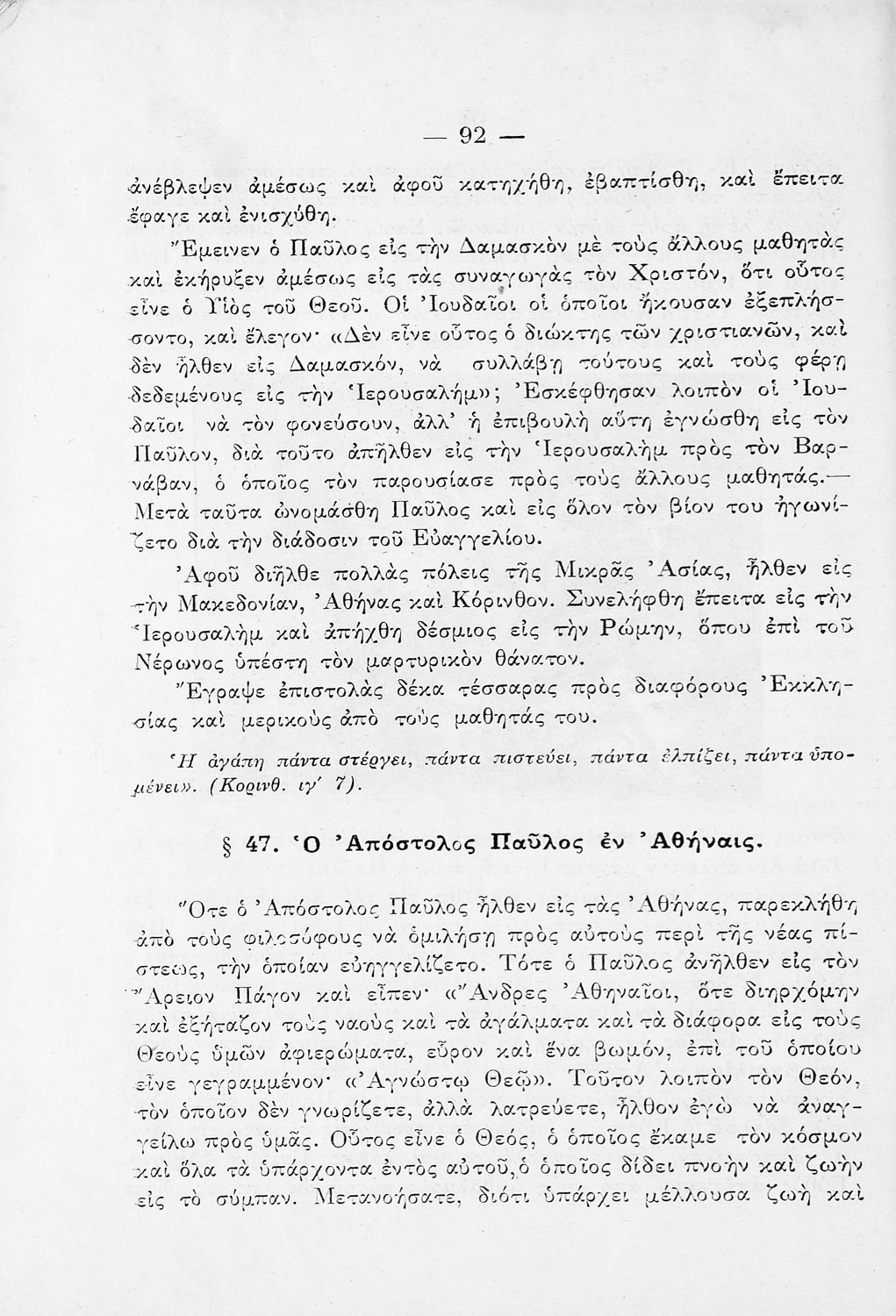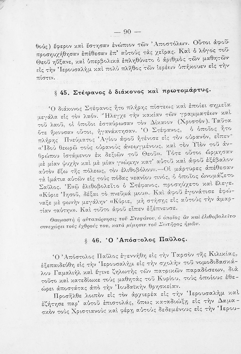 Σχολικό εγχειρίδιο Θρησκευτικών για τα Ελληνικά Σχολεία και τα Παρθεναγωγεία που αποτελεί μια εξιστόρηση της Καινής Διαθήκης από την γέννηση του Ιησού Χριστού ως το έργο των Αποστόλων