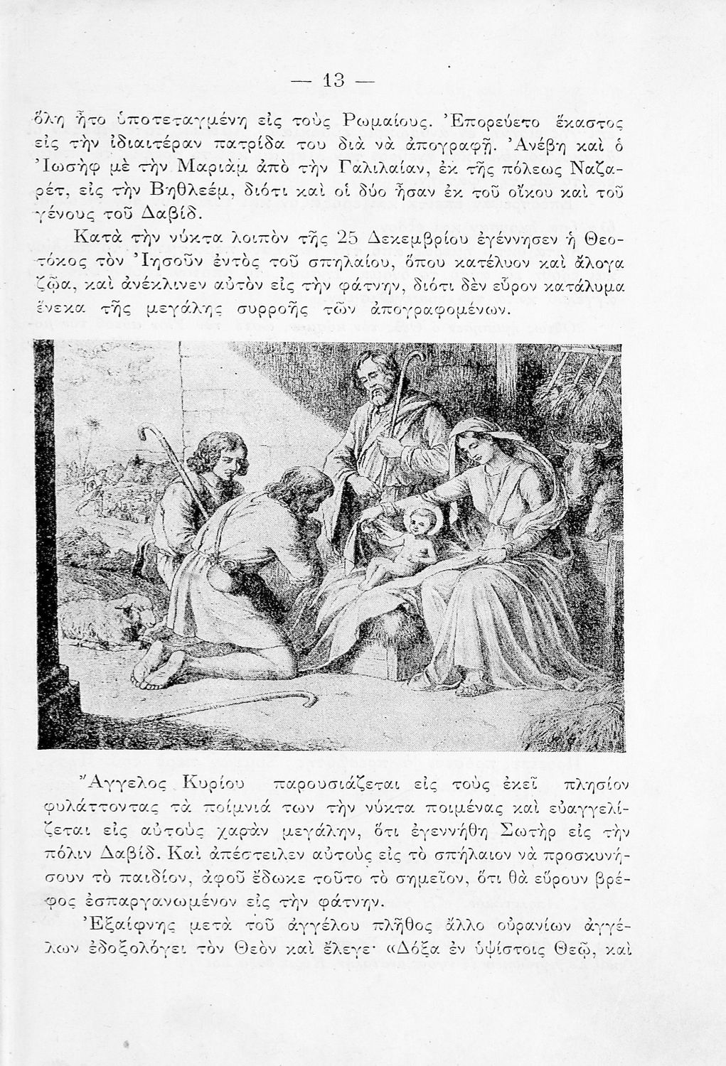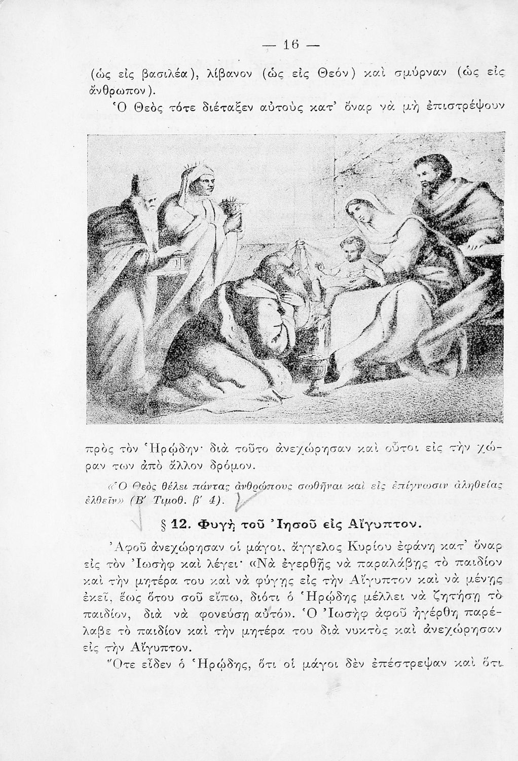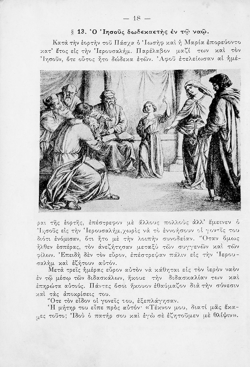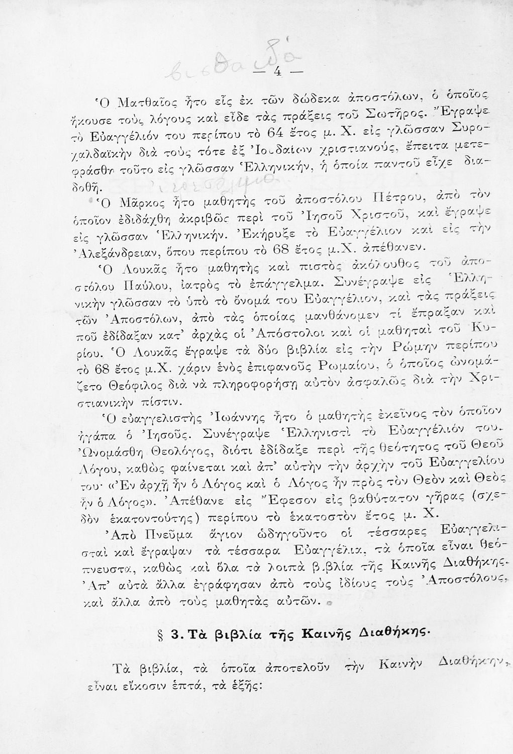 Σχολικό εγχειρίδιο Θρησκευτικών για τα Ελληνικά Σχολεία και τα Παρθεναγωγεία που περιλαμβάνει την ιστορία της Καινής Διαθήκης από τον Ευαγγελισμό της Θεοτόκου μέχρι την ανάληψη του Ιησού Χριστού