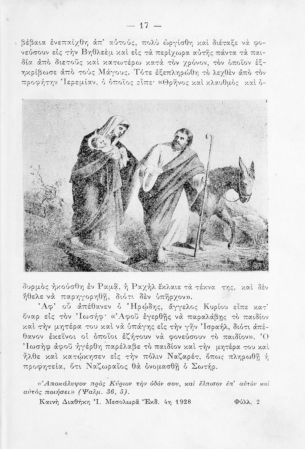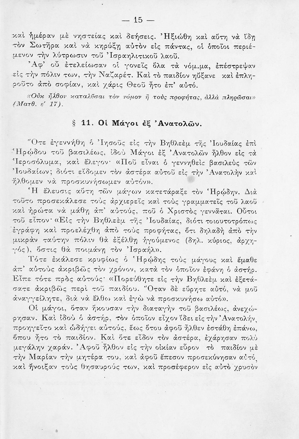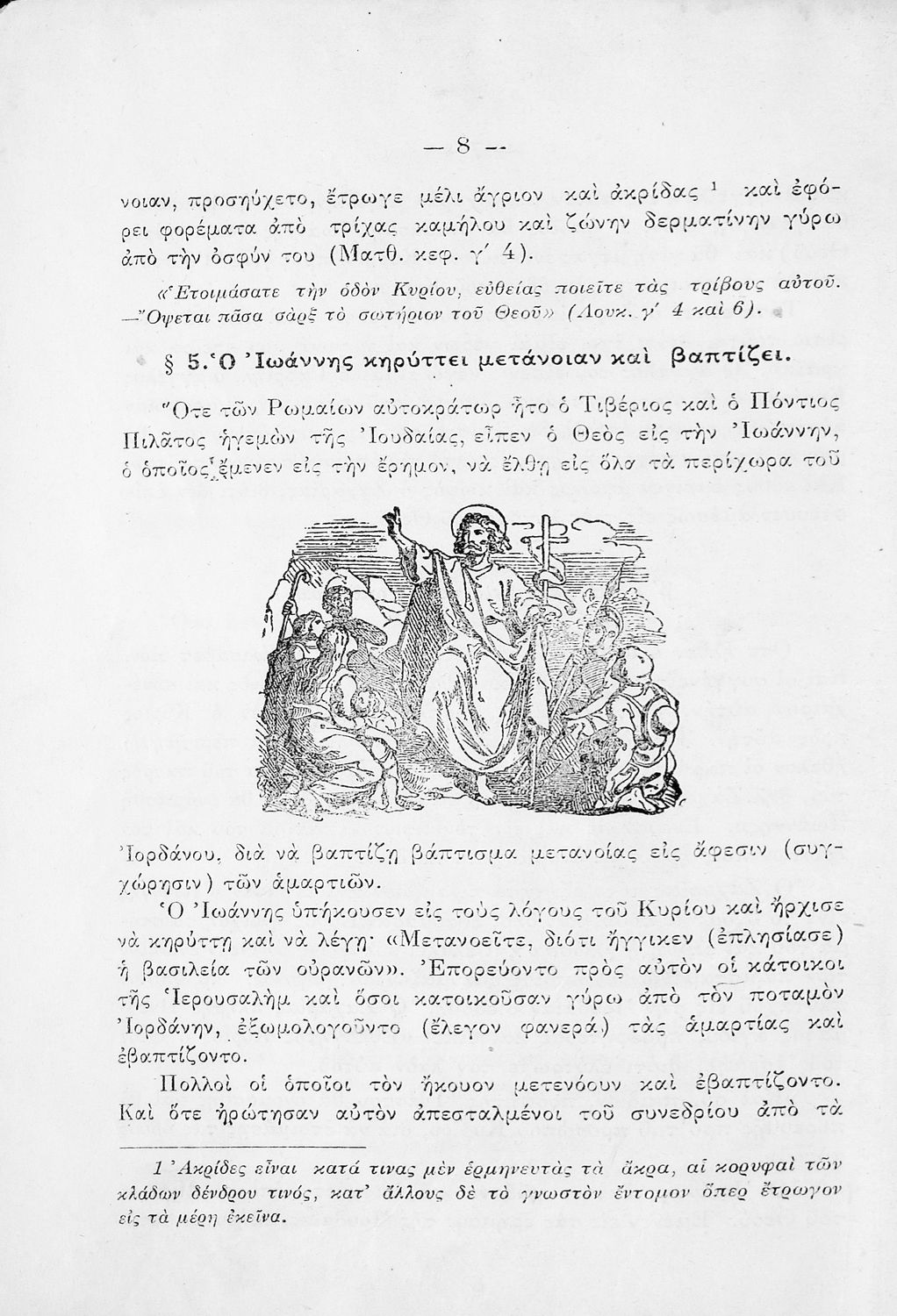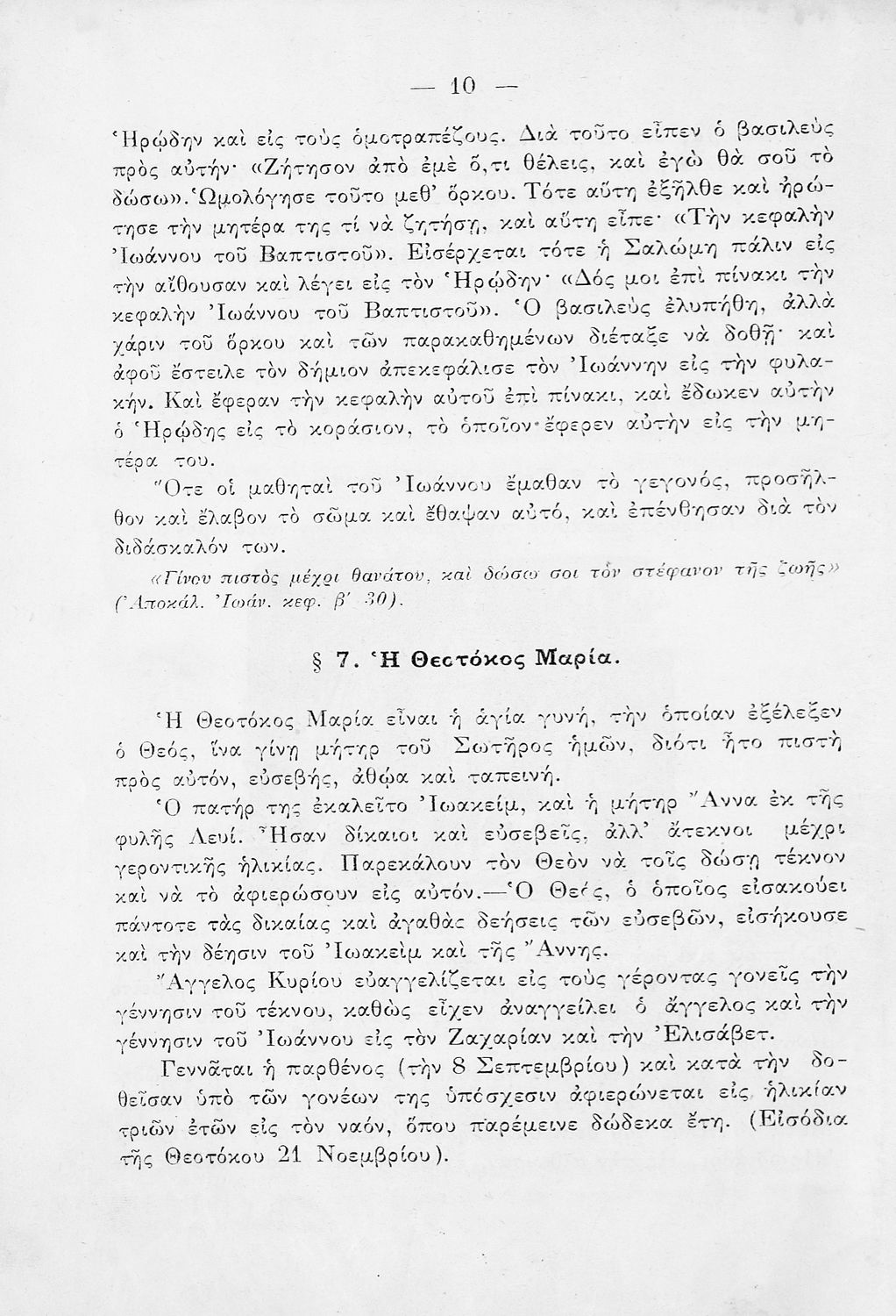 Σχολικό εγχειρίδιο Θρησκευτικών για τα Ελληνικά Σχολεία και τα Παρθεναγωγεία που περιλαμβάνει την ιστορία της Καινής Διαθήκης από τον Ευαγγελισμό της Θεοτόκου μέχρι την ανάληψη του Ιησού Χριστού