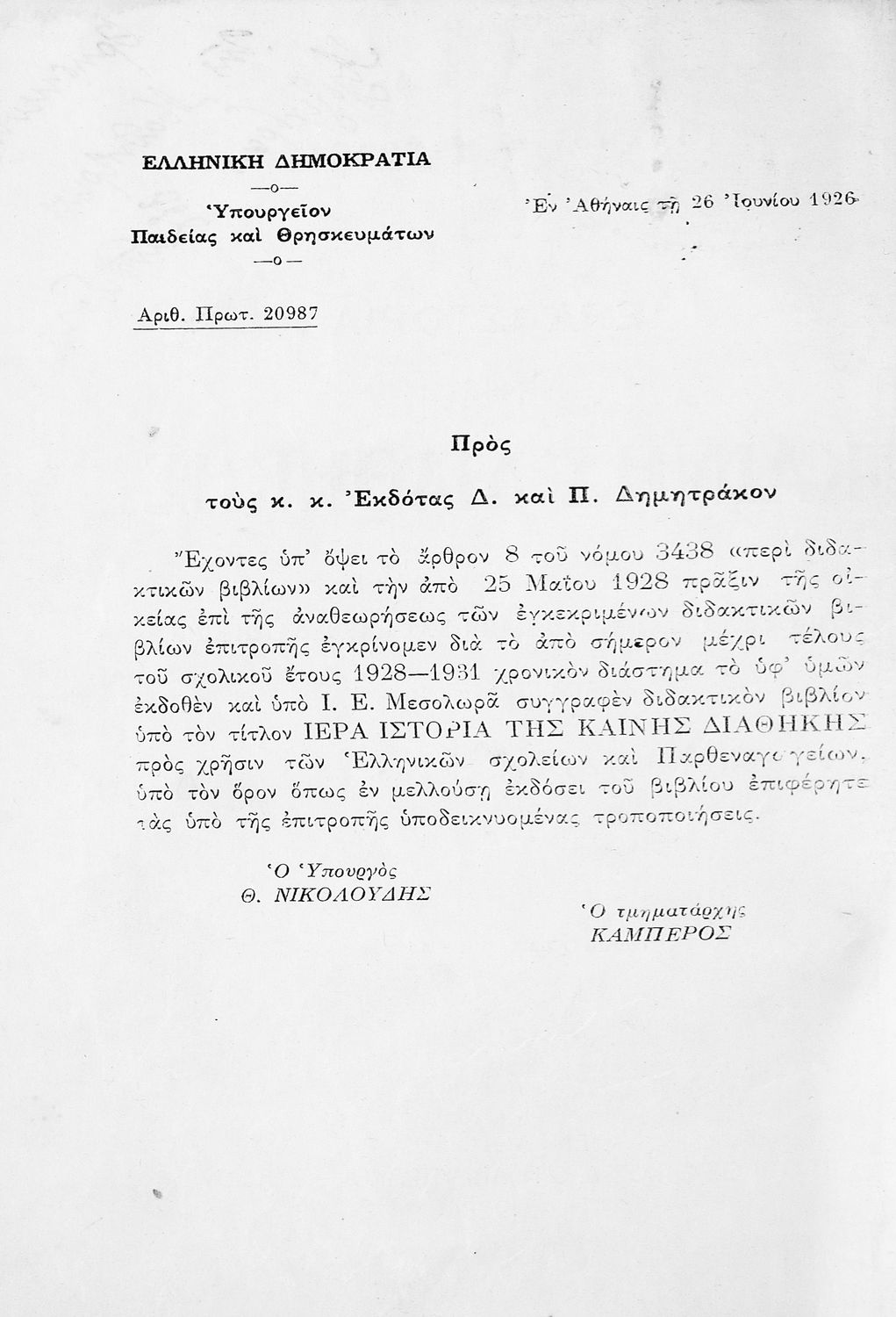 Εκδότης: Δ. Π. Δημητράκος Έτος έκδοσης: 1928 Τόπος έκδοσης: Αθήνα Έκδοση: 4η Υπουργική απόφαση / Σύμβαση: 20987/26-7-1926 Έτος έγκρισης: 1926 |
