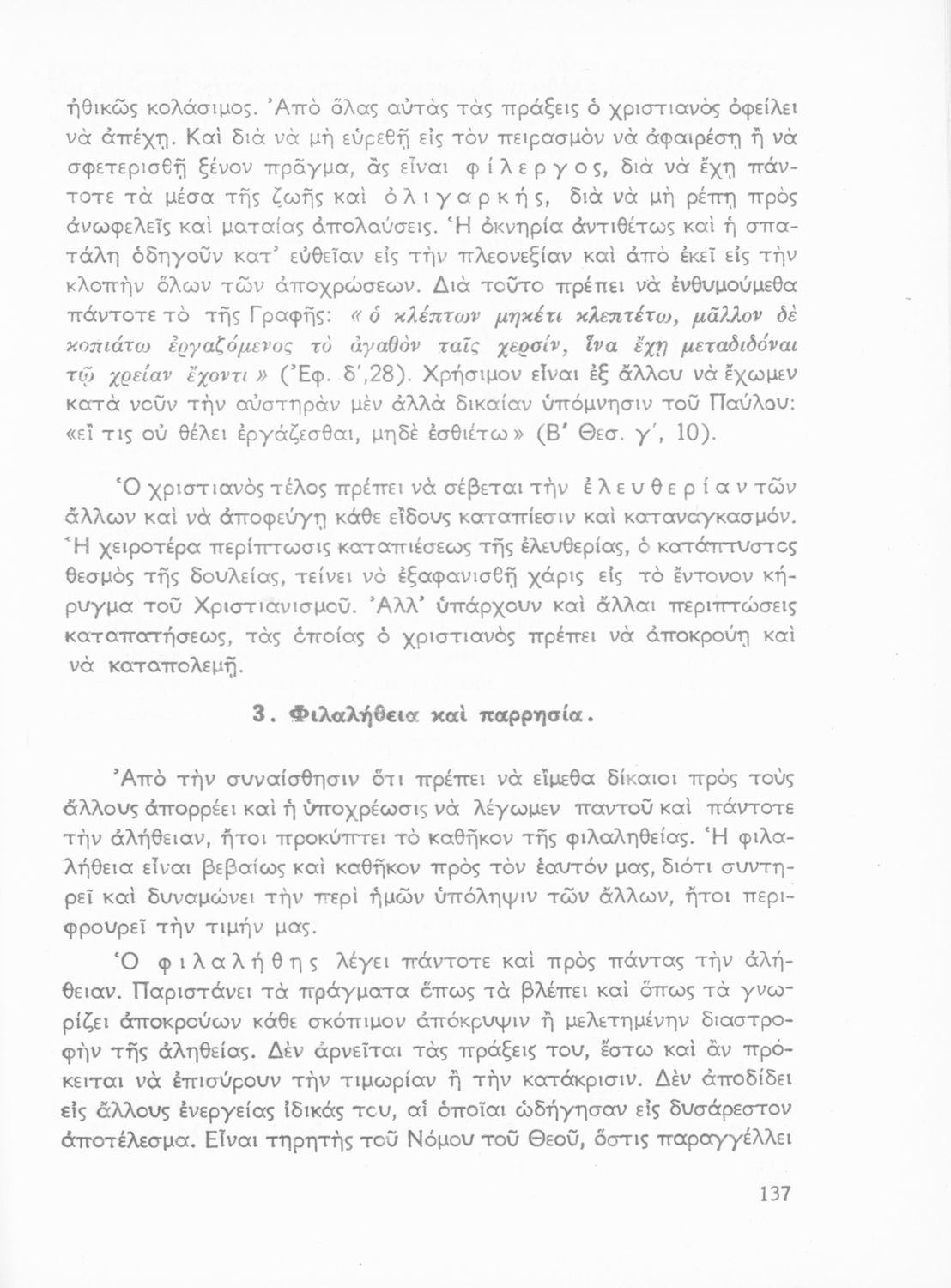Παρουσίαση περιεχομένου: Σχολικό εγχειρίδιο Θρησκευτικών που πραγματεύεται την έννοια της αρετής και της ηθικής, της αμαρτίας και της λύτρωσης, της δικαιοσύνης και της αγάπης όπως αυτή ορίζεται από το Χριστιανισμό. Φέρει το σύμβολο της δικτατορίας.