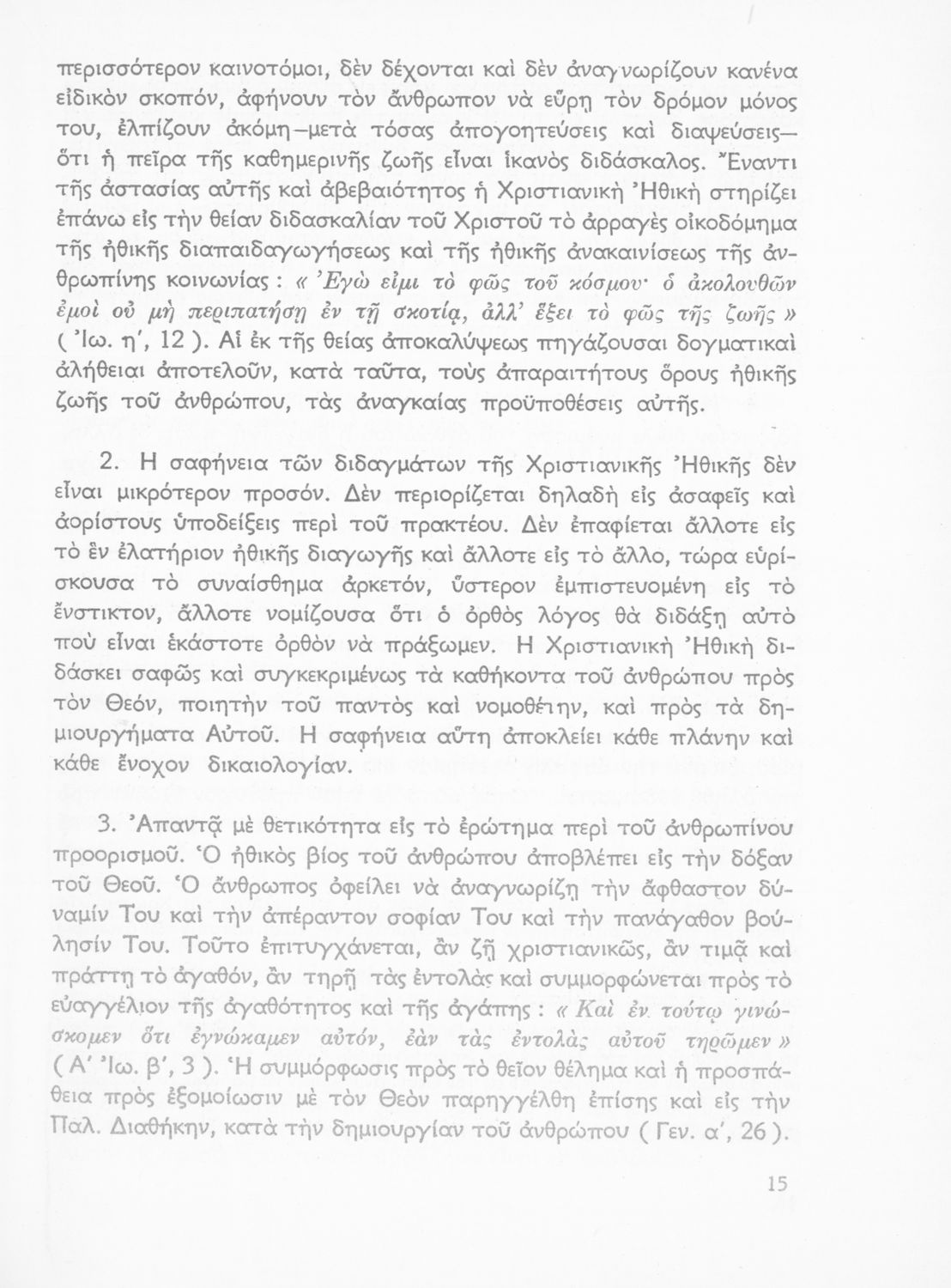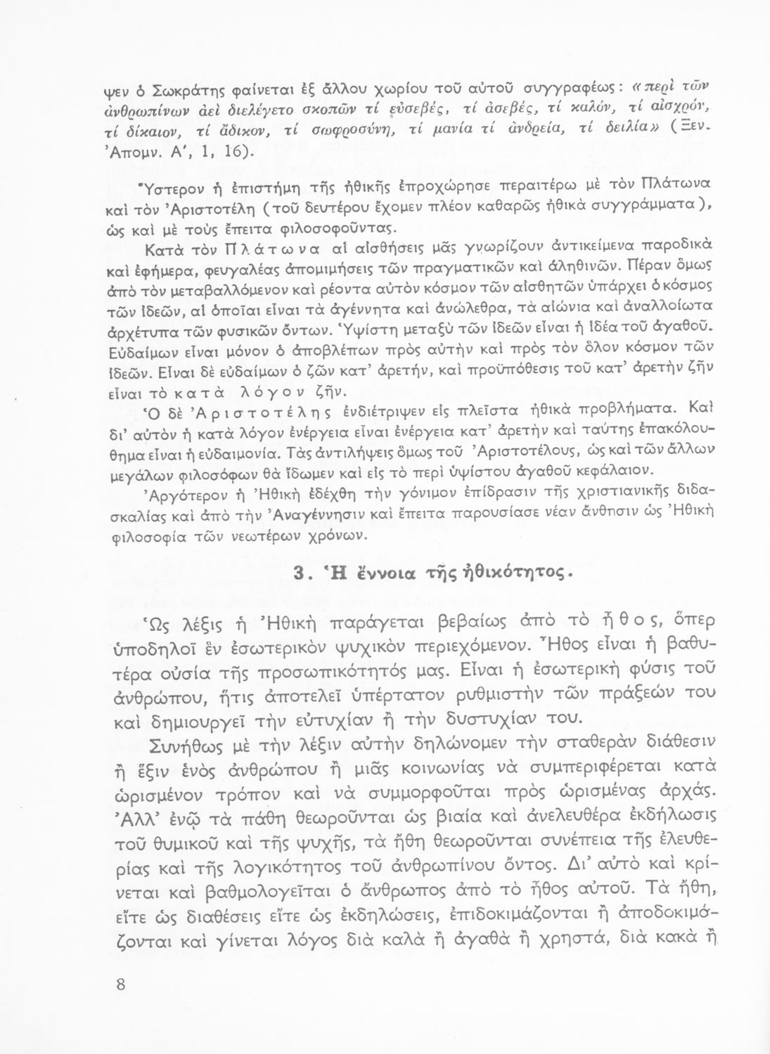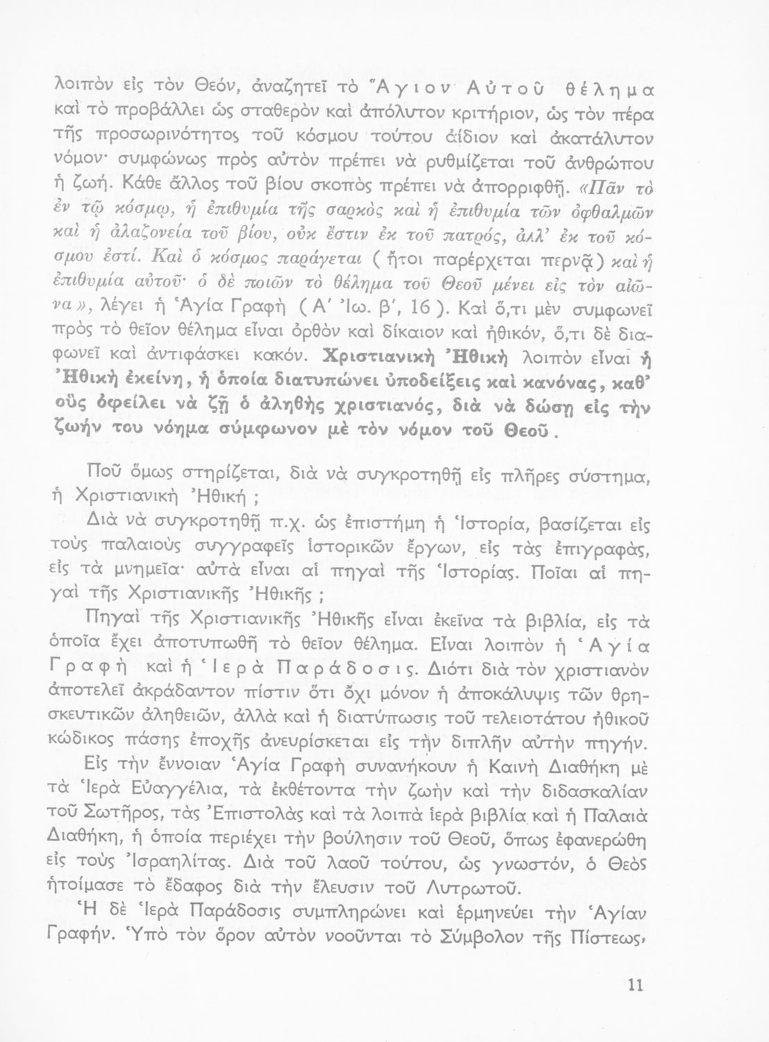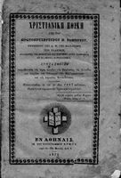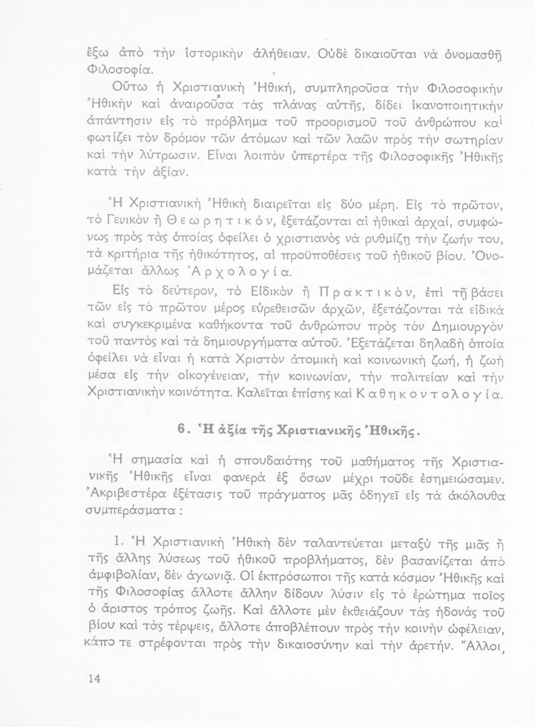 Βαθμίδα εκπαίδευσης: Δευτεροβάθμια Μάθημα: Θρησκευτικά Γλώσσα: Καθαρεύουσα Παρουσίαση περιεχομένου: Σχολικό εγχειρίδιο Θρησκευτικών που πραγματεύεται την έννοια της αρετής και της ηθικής, της αμαρτίας και της λύτρωσης, της δικαιοσύνης και της αγάπης όπως αυτή ορίζεται από το Χριστιανισμό. Φέρει το σύμβολο της δικτατορίας. |