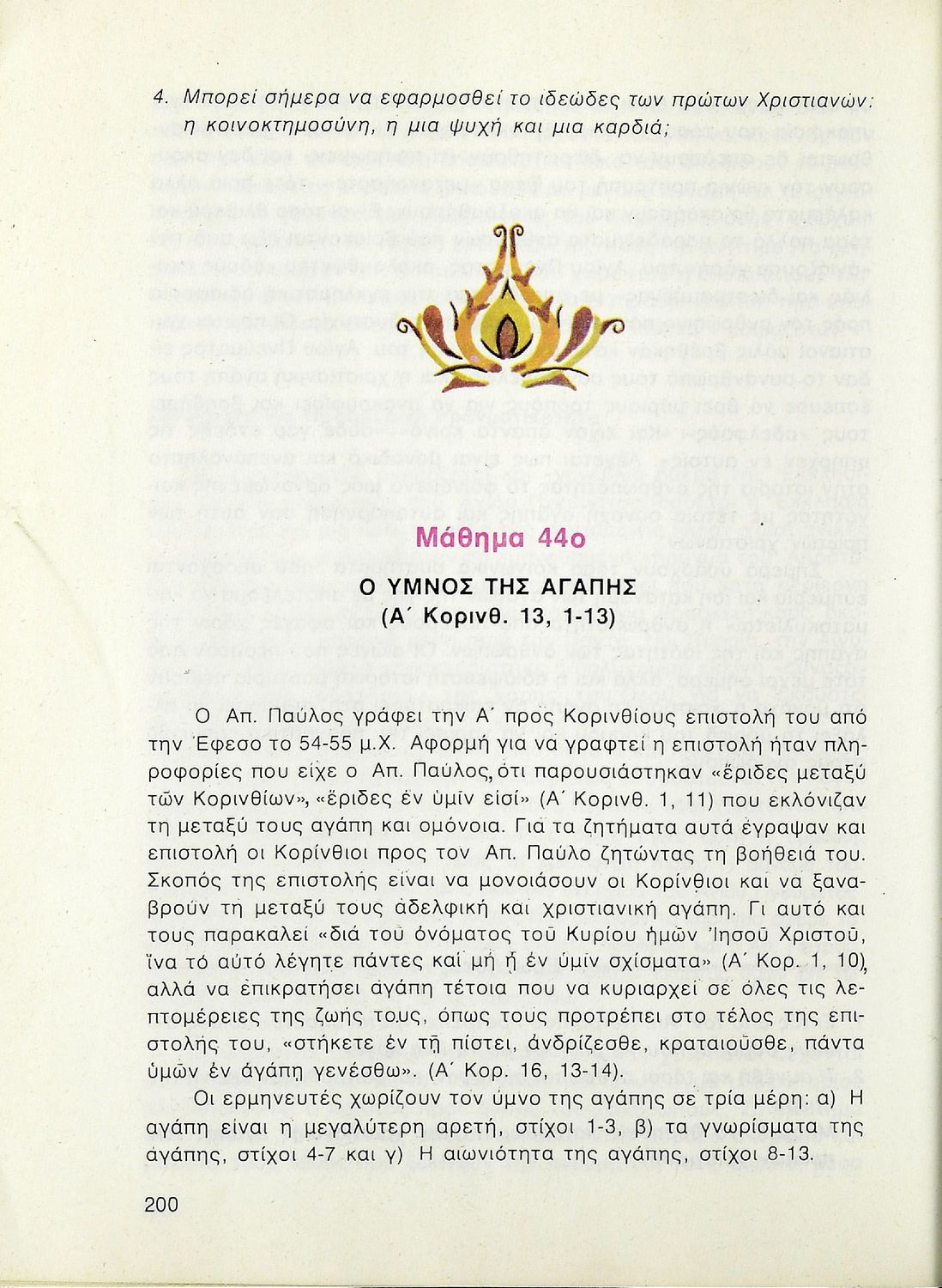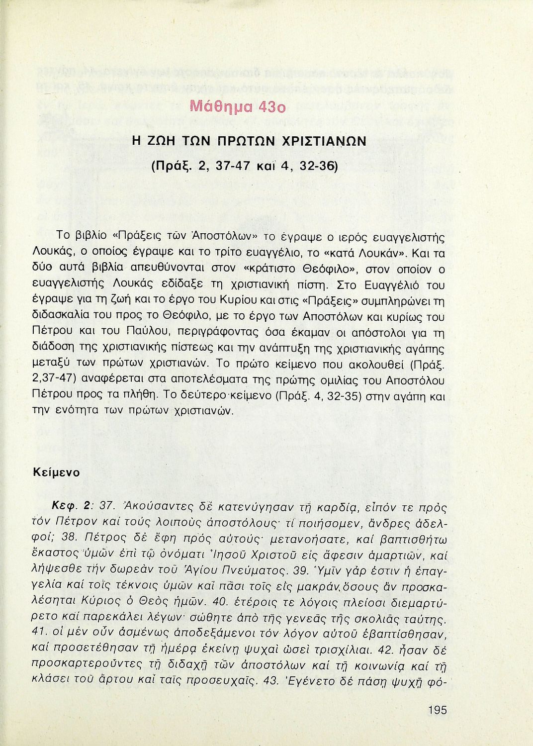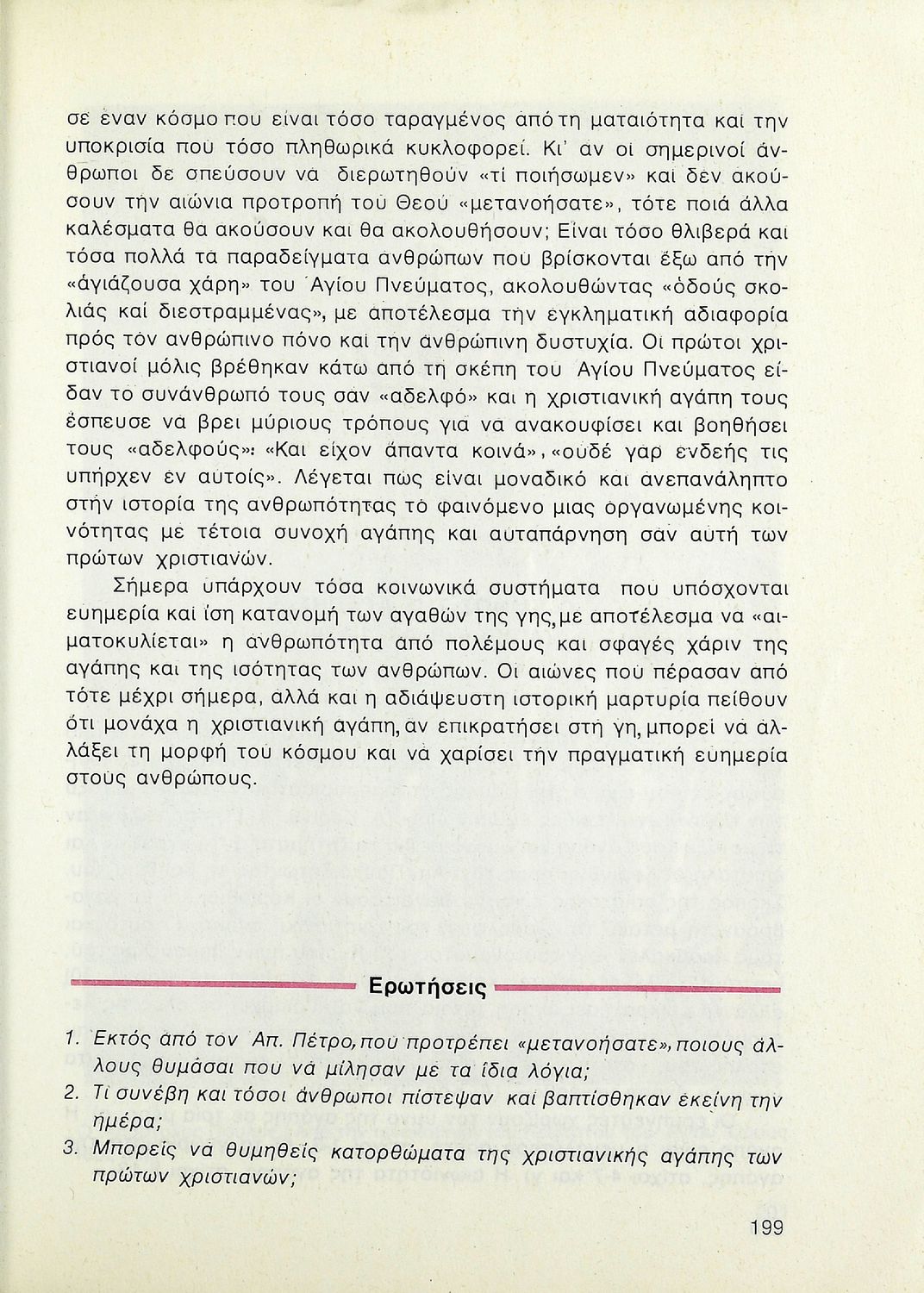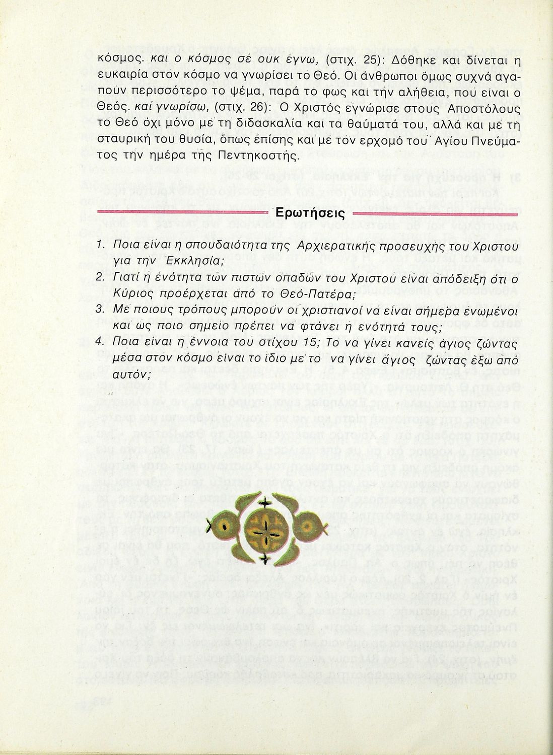 Βαθμίδα εκπαίδευσης: Δευτεροβάθμια Τάξη: Β' Λυκείου Μάθημα: Θρησκευτικά Γλώσσα: Δημοτική Παρουσίαση περιεχομένου: Σχολικό εγχειρίδιο Θρησκευτικών Β΄ Λυκείου που περιλαμβάνει μια συνοπτική παρουσίαση των κυριότερων θρησκειών, αναλύει τη σχέση του χριστιανισμού με τις άλλες θρησκείες, και εστιάζει στις πηγές και τα θρησκευτικά κείμενα της χριστιανικής πίστης. Περιέχει και ερωτήσεις κατανόησης. |