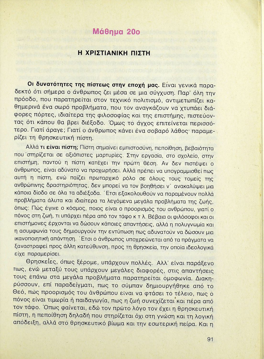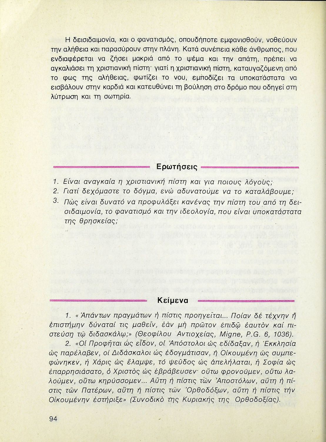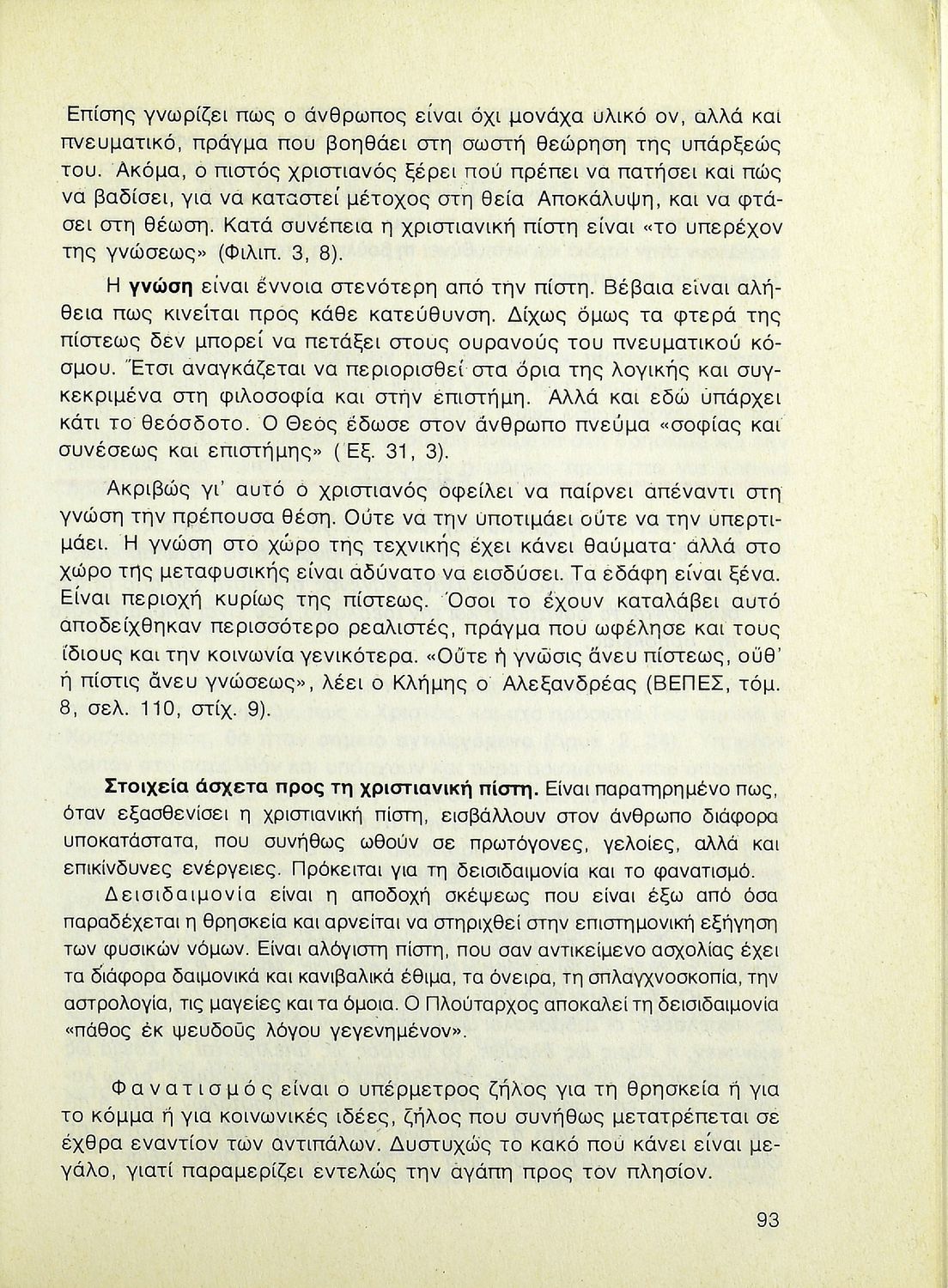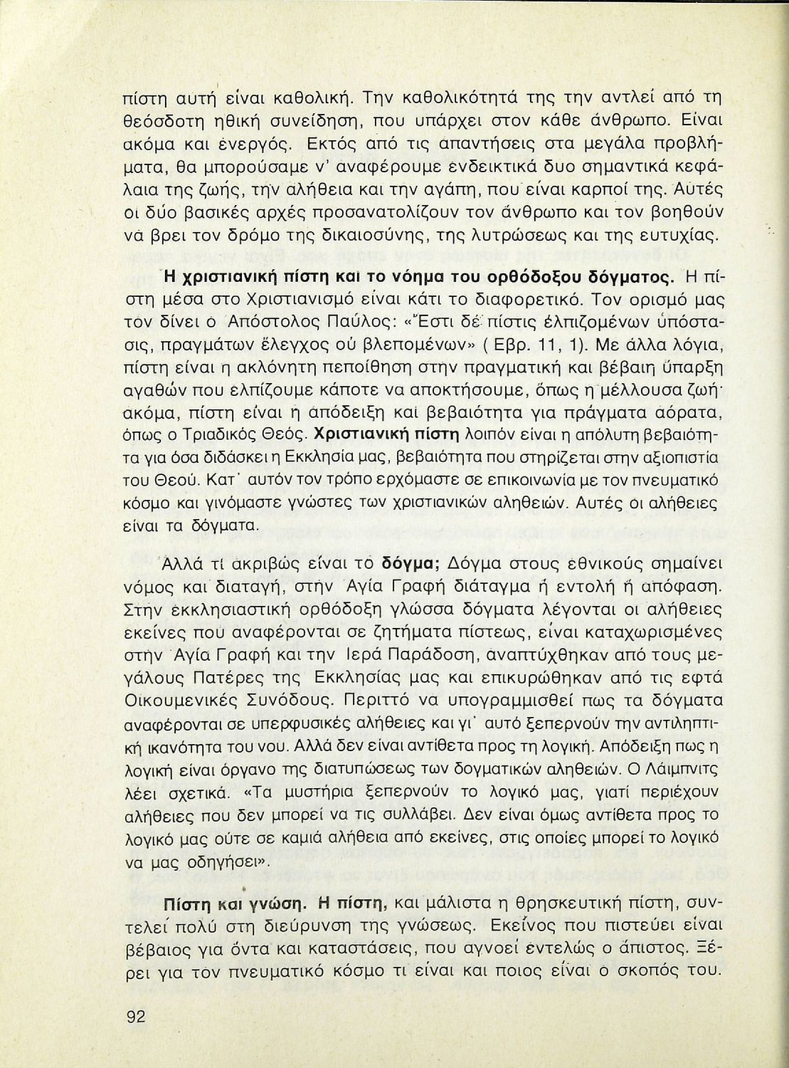 Βαθμίδα εκπαίδευσης: Δευτεροβάθμια Τάξη: Β' Λυκείου Μάθημα: Θρησκευτικά Γλώσσα: Δημοτική Παρουσίαση περιεχομένου: Σχολικό εγχειρίδιο Θρησκευτικών Β΄ Λυκείου που περιλαμβάνει μια συνοπτική παρουσίαση των κυριότερων θρησκειών, αναλύει τη σχέση του χριστιανισμού με τις άλλες θρησκείες, και εστιάζει στις πηγές και τα θρησκευτικά κείμενα της χριστιανικής πίστης. Περιέχει και ερωτήσεις κατανόησης. |