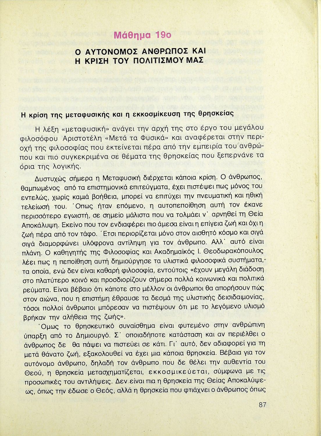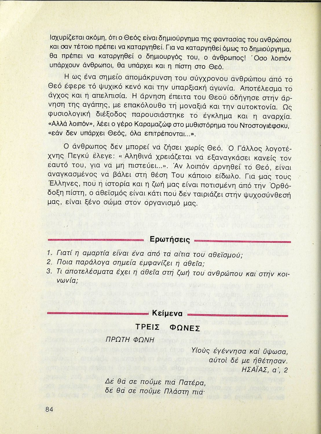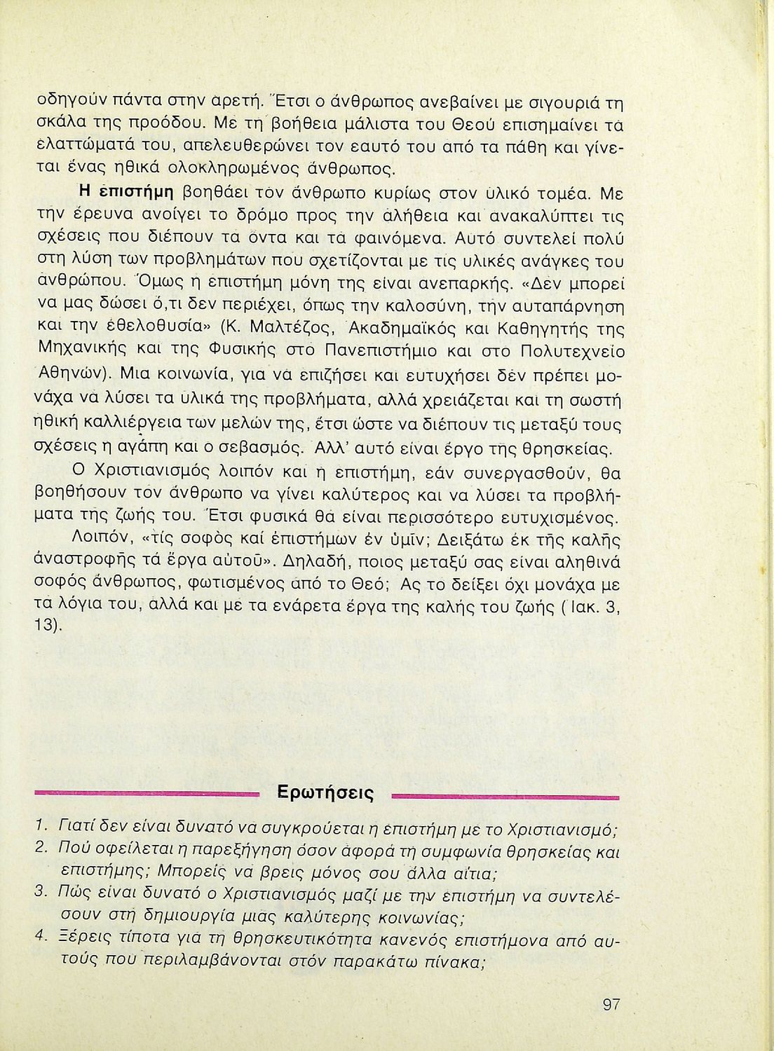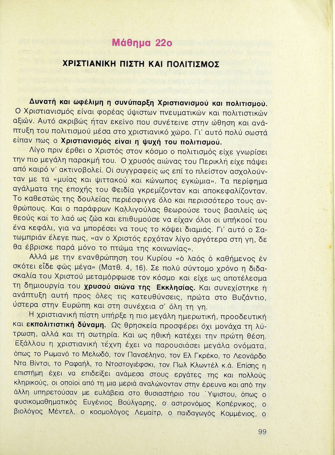 Βαθμίδα εκπαίδευσης: Δευτεροβάθμια Τάξη: Β' Λυκείου Μάθημα: Θρησκευτικά Γλώσσα: Δημοτική Παρουσίαση περιεχομένου: Σχολικό εγχειρίδιο Θρησκευτικών Β΄ Λυκείου που περιλαμβάνει μια συνοπτική παρουσίαση των κυριότερων θρησκειών, αναλύει τη σχέση του χριστιανισμού με τις άλλες θρησκείες, και εστιάζει στις πηγές και τα θρησκευτικά κείμενα της χριστιανικής πίστης. Περιέχει και ερωτήσεις κατανόησης. |