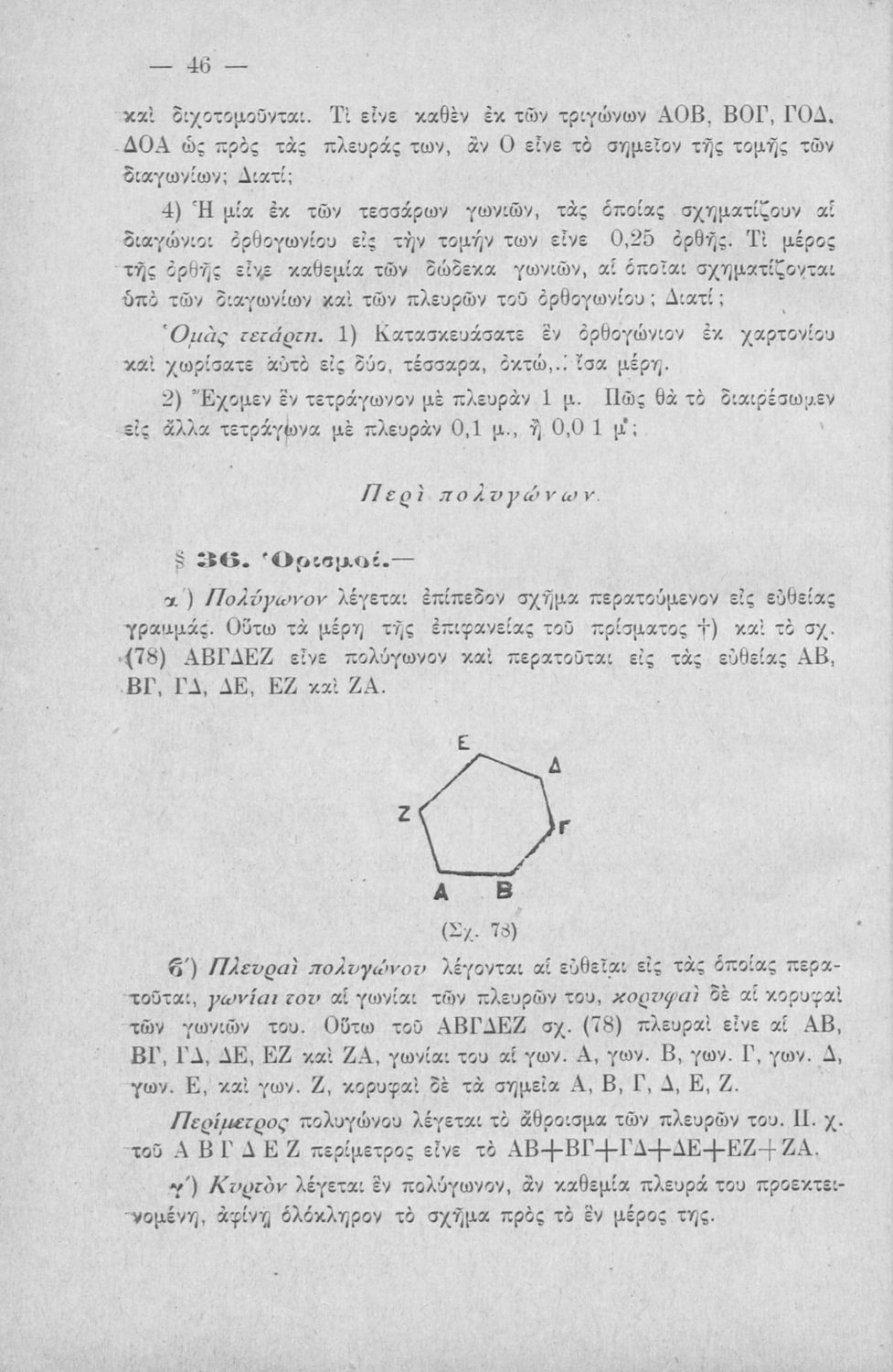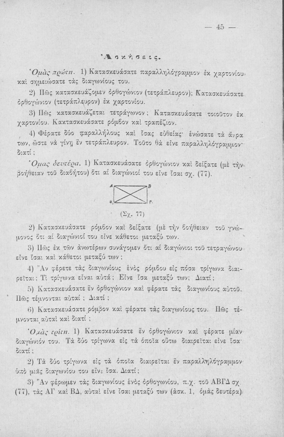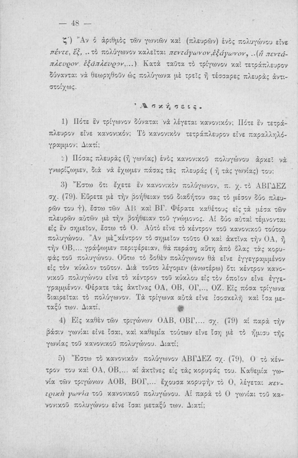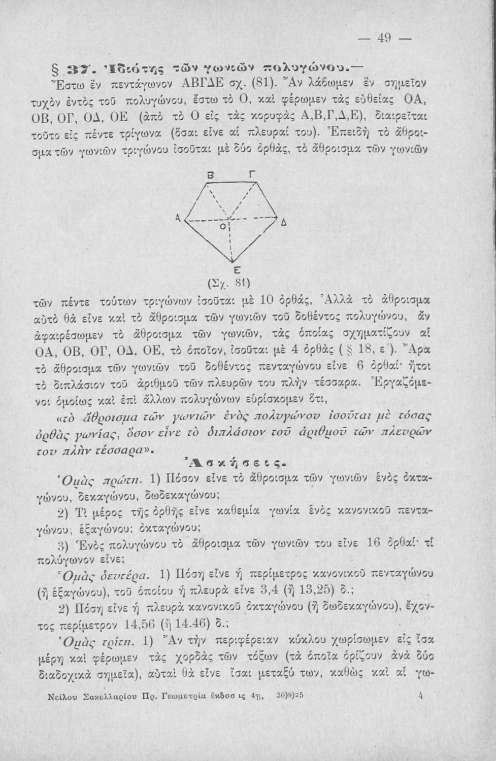 Βαθμίδα εκπαίδευσης: Δευτεροβάθμια Τάξη: Ελληνικό Σχολείο / Αστικό Σχολείο / Ανώτερα Παρθεναγωγεία Μάθημα: Μαθηματικά Γλώσσα: Απλή καθαρεύουσα Παρουσίαση περιεχομένου: Σχολικό εγχειρίδιο Γεωμετρίας για τα Ελληνικά και Αστικά Σχολεία που περιέχει θεωρία και ασκήσεις και είναι χωρισμένο σε Επιπεδομετρία και Στερεομετρία. Ο συγγραφέας ήταν καθηγητής στο Πανεπιστήμιο Αθηνών. |