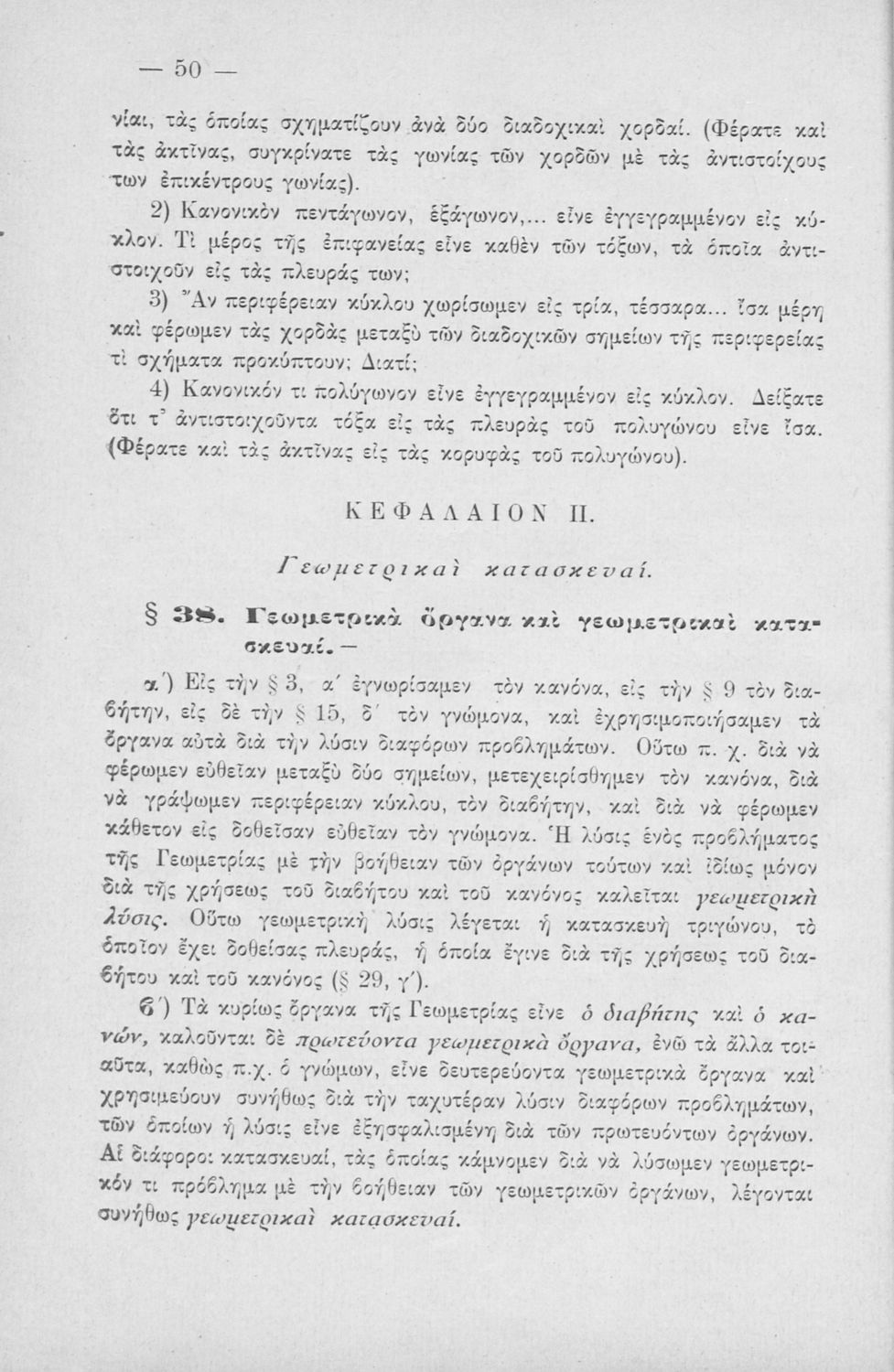 Σχολικό εγχειρίδιο Γεωμετρίας για τα Ελληνικά και Αστικά Σχολεία που περιέχει θεωρία και ασκήσεις και είναι χωρισμένο σε Επιπεδομετρία και Στερεομετρία. Ο συγγραφέας ήταν καθηγητής στο Πανεπιστήμιο Αθηνών.
