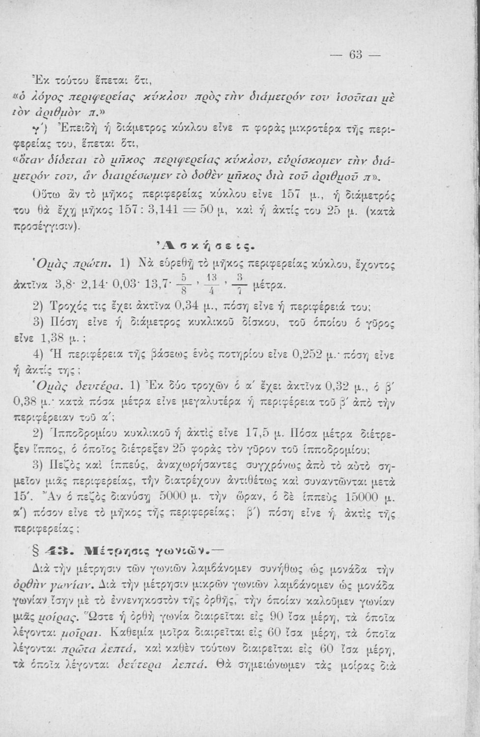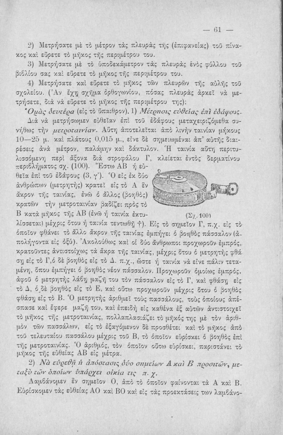 Σχολικό εγχειρίδιο Γεωμετρίας για την Α΄, Β΄ και Γ΄ τάξη των Ελληνικών και Αστικών Σχολείων και Παρθεναγωγείων που είναι χωρισμένο σε Επιπεδομετρία και Στερεομετρία και περιλαμβάνει θεωρία και ασκήσεις.