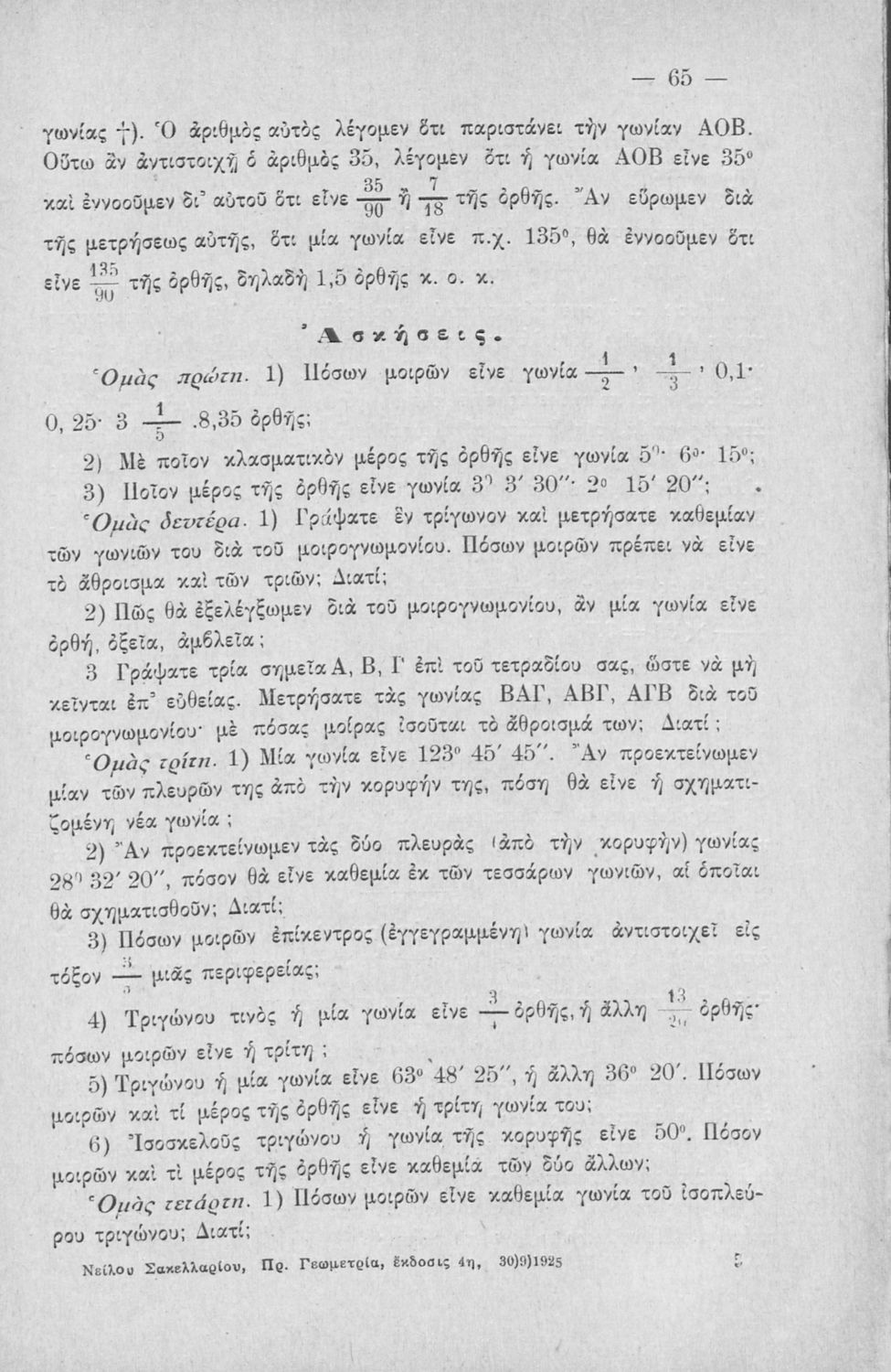 Παρουσίαση περιεχομένου: Σχολικό εγχειρίδιο Γεωμετρίας για τα Ελληνικά και Αστικά Σχολεία που περιέχει θεωρία και ασκήσεις και είναι χωρισμένο σε Επιπεδομετρία και Στερεομετρία. Ο συγγραφέας ήταν καθηγητής στο Πανεπιστήμιο Αθηνών.