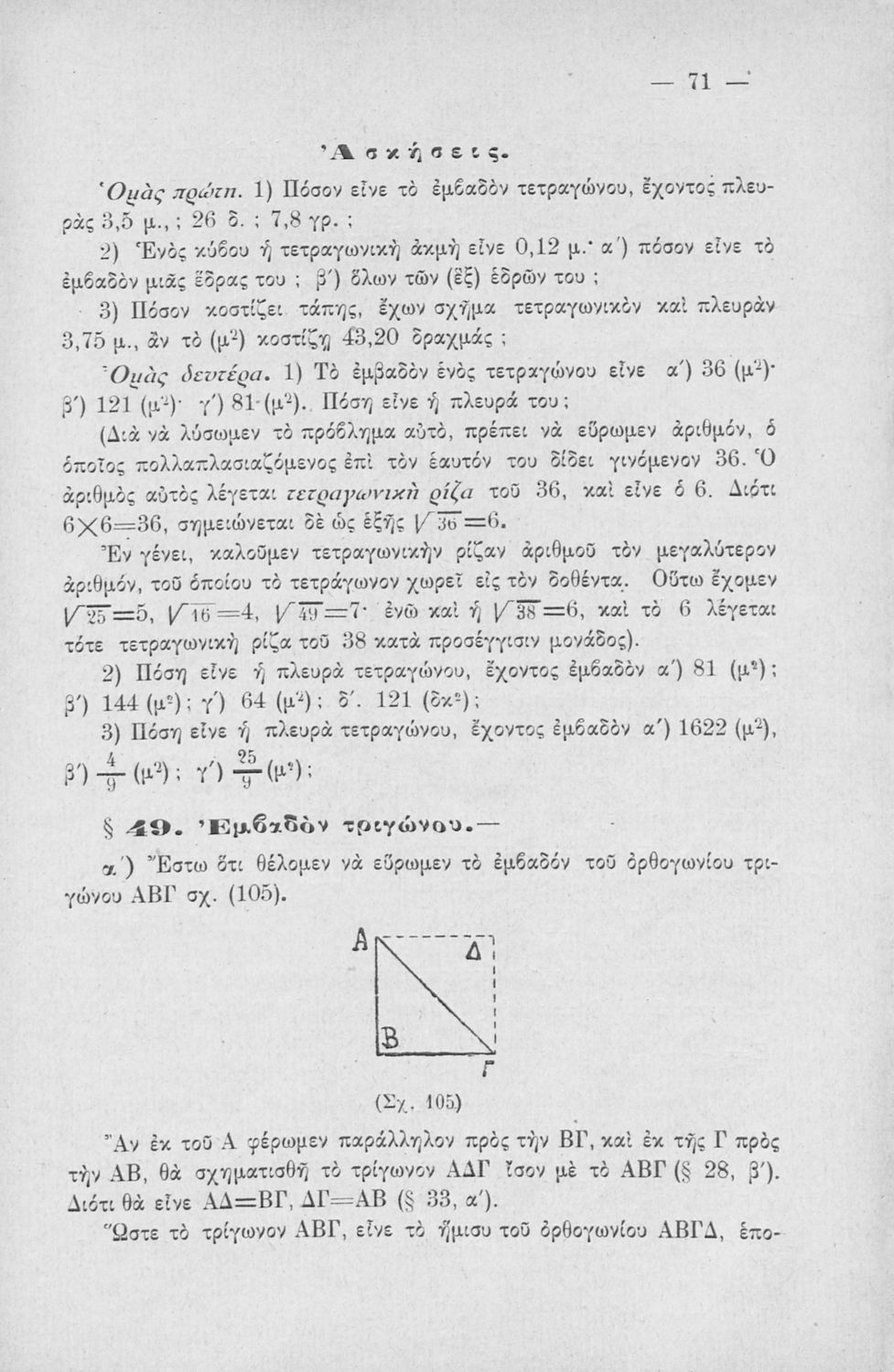 Μαθητικό βοήθημα Μαθηματικών για τους μαθητές των Ελληνικών Σχολείων και των Αστικών Σχολών που περιέχει τις λύσεις ασκήσεων αριθμητικής και γεωμετρίας που περιλαμβάνονται στα βιβλία του Ιωάννη Ν. Χατζηδάκη ...