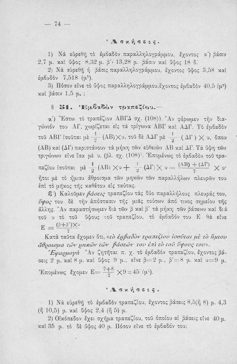 Σχολικό εγχειρίδιο Γεωμετρίας για τα Ελληνικά Σχολεία και Παρθεναγωγεία με έντονο πρακτικό προσανατολισμό.