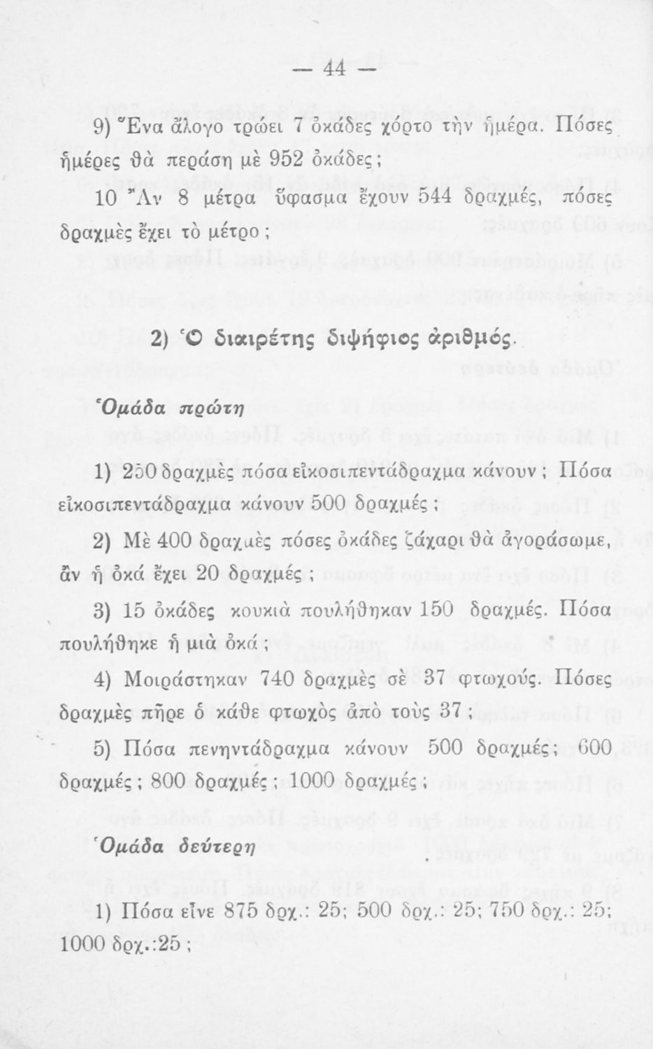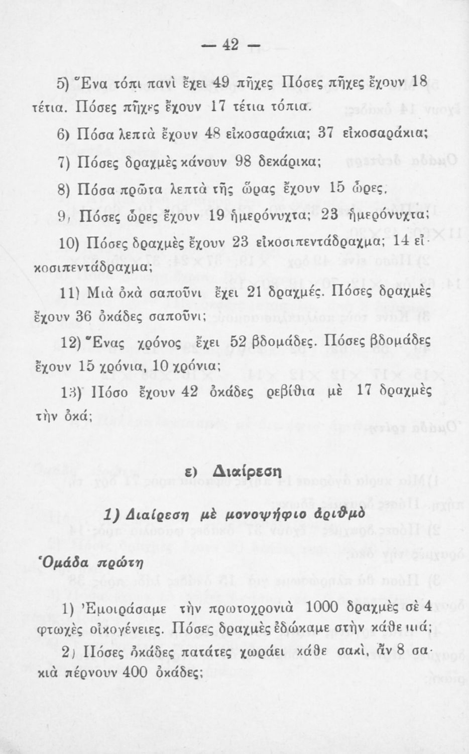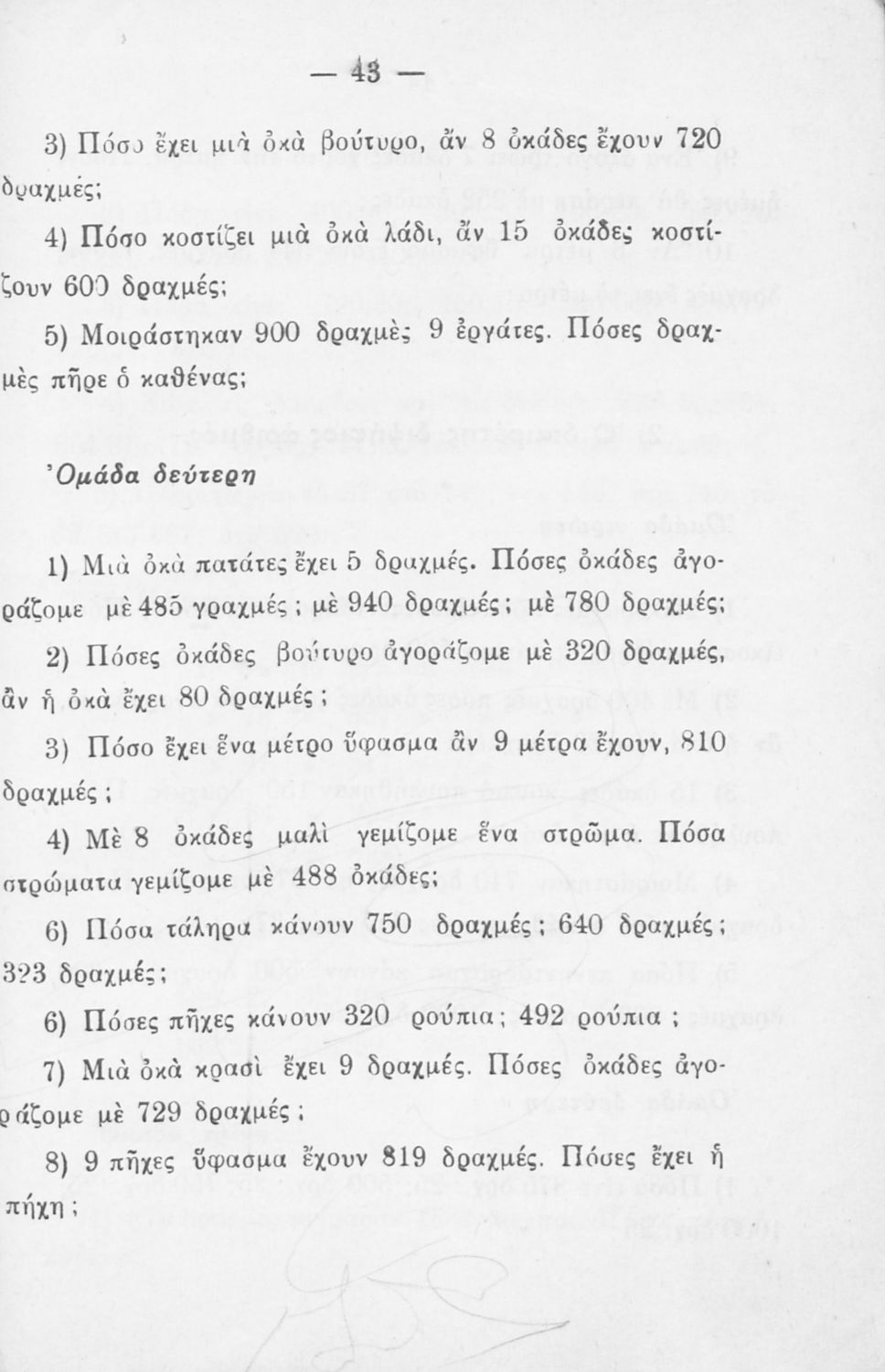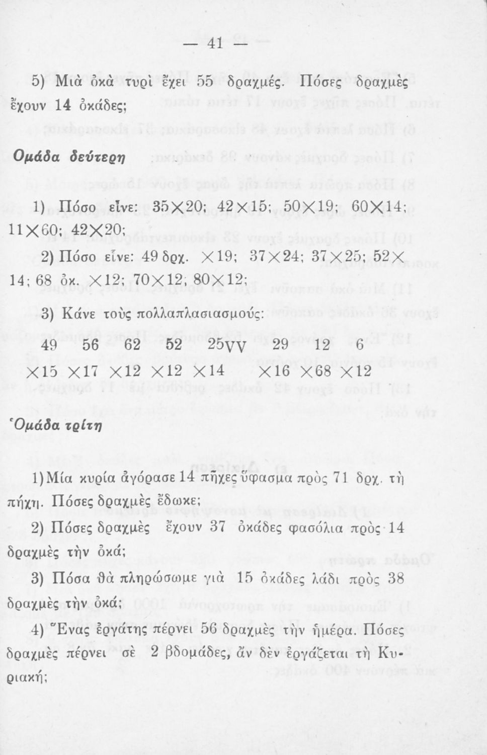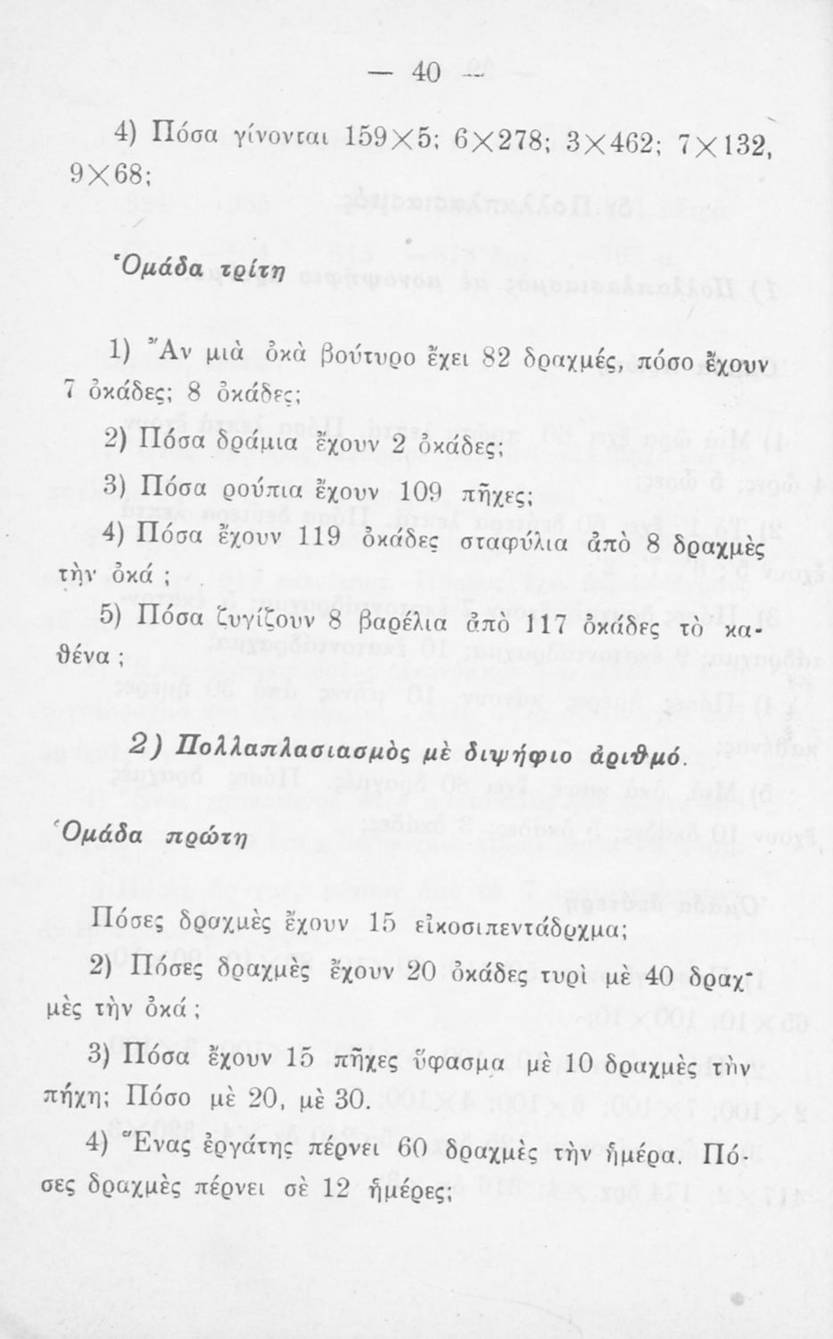 Αριθμητικά προβλήματα δια την Γ΄ τάξη των Δημοτικών Σχολείων