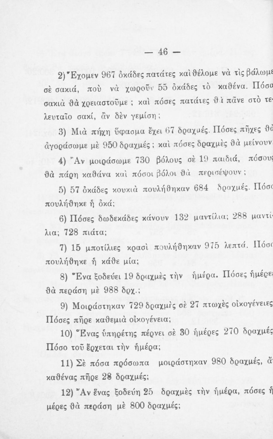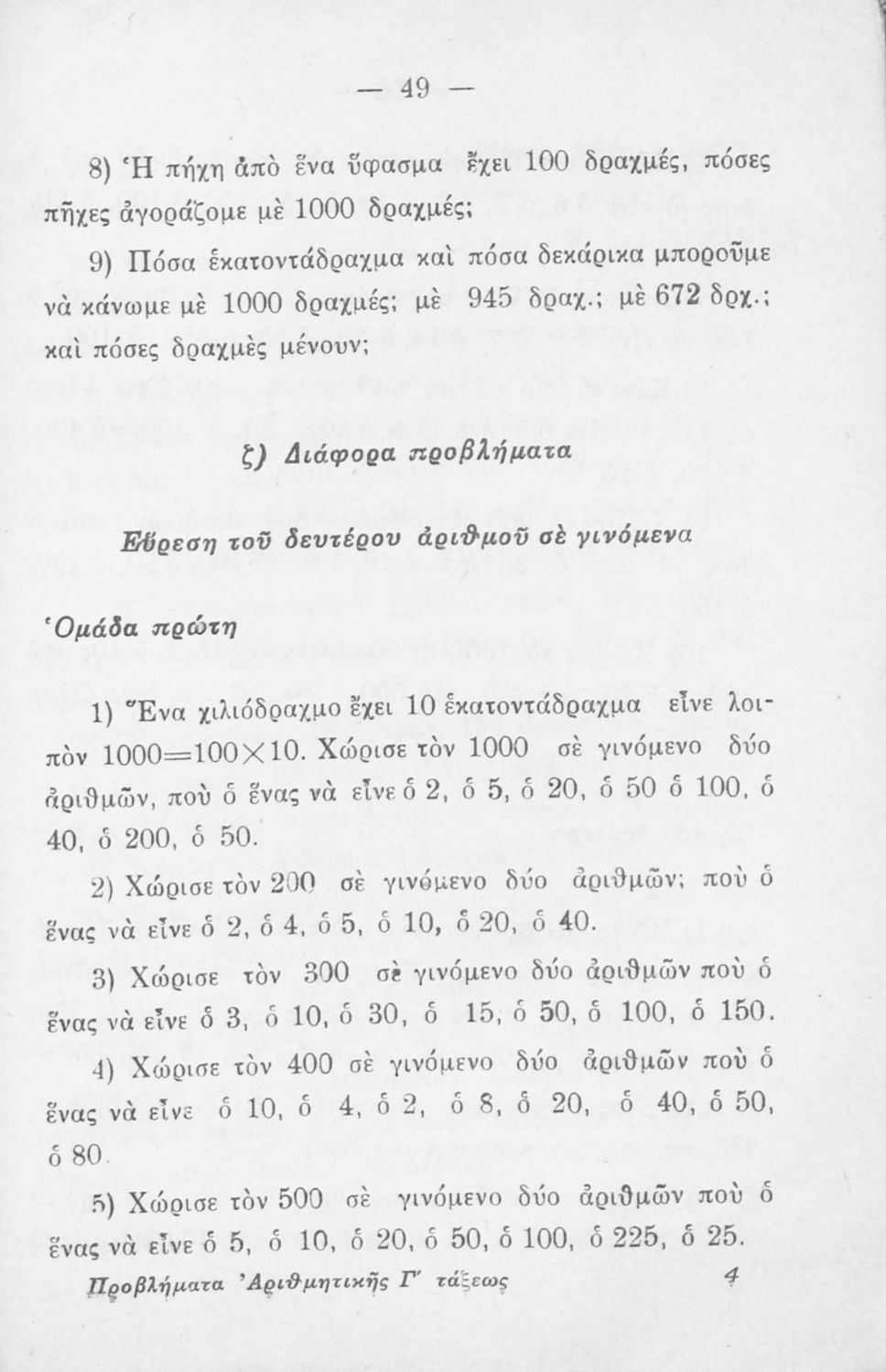 Τίτλος: Αριθμητικά προβλήματα δια την Γ΄ τάξη των Δημοτικών Σχολείων
