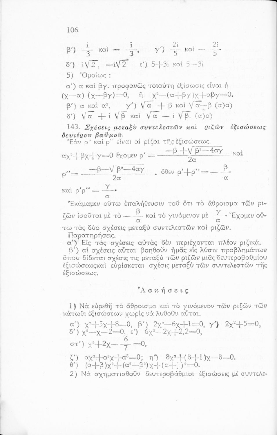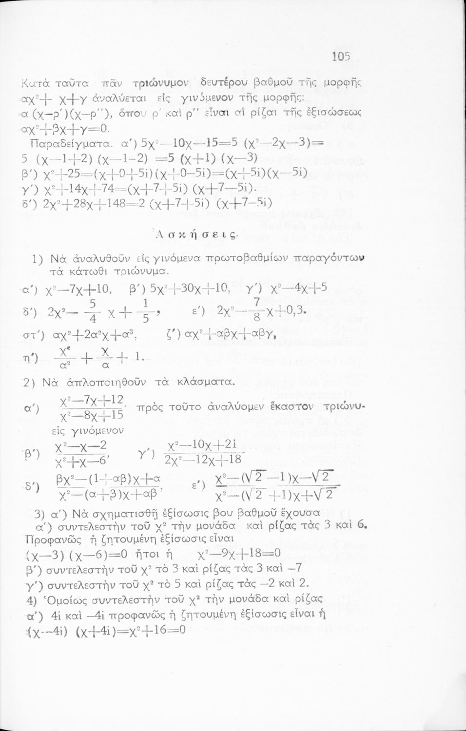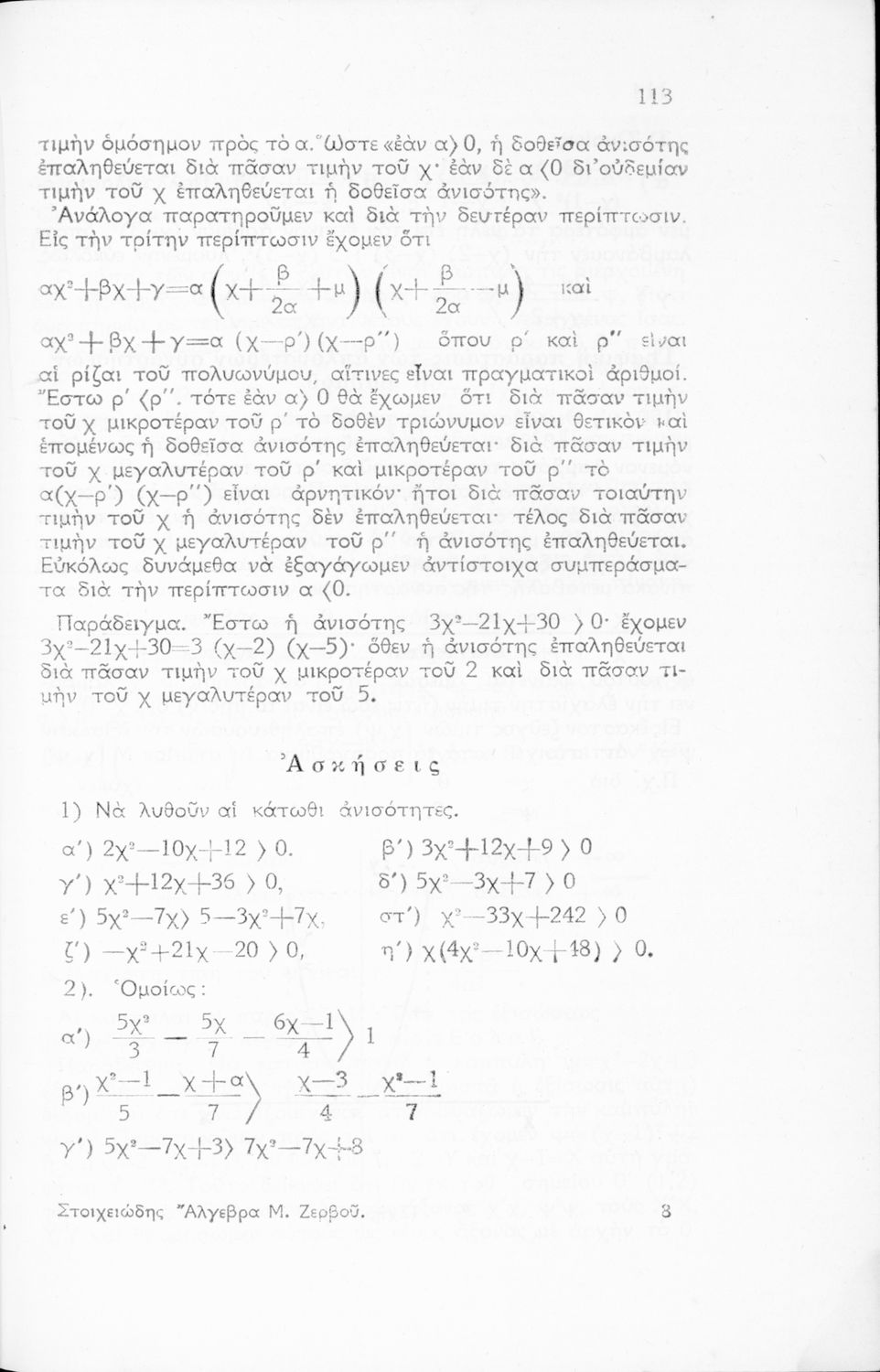 Σχολικό εγχειρίδιο Άλγεβρας Γυμνασίου που περιέχει θεωρία και ασκήσεις. Ο συγγραφέας ήταν υφηγητής στο Εθνικό Πανεπιστήμιο.