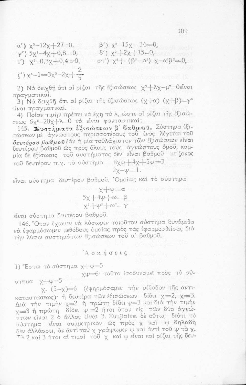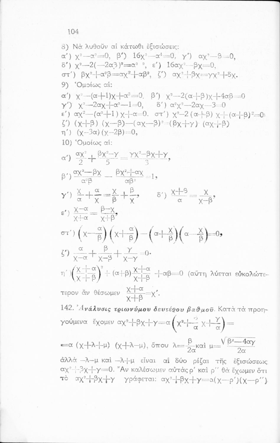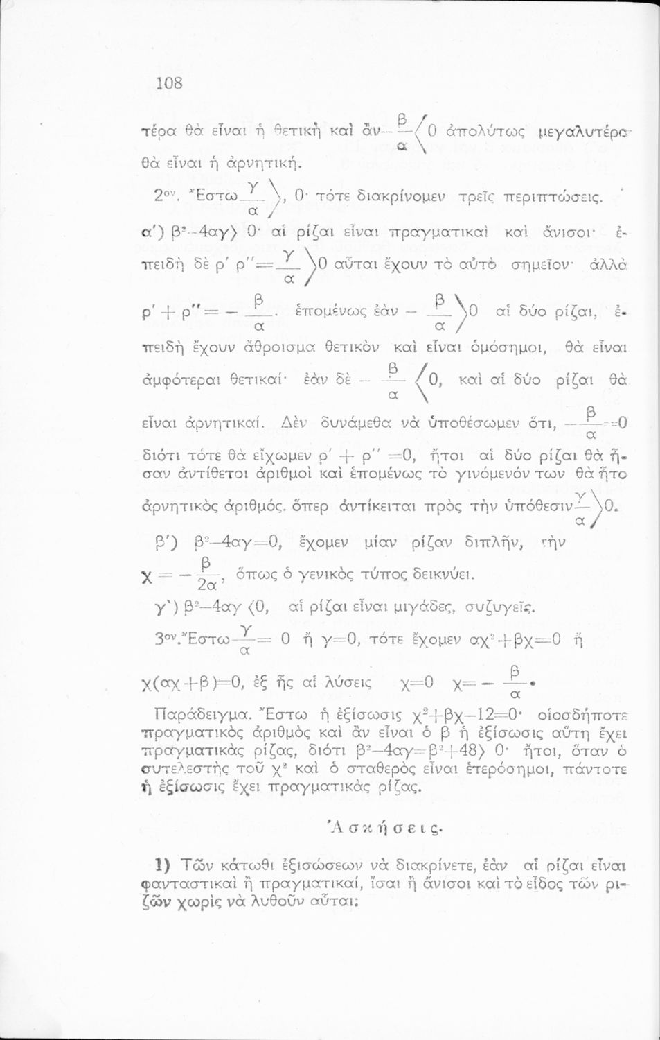 Σχολικό εγχειρίδιο Άλγεβρας Γυμνασίου που περιέχει θεωρία και ασκήσεις. Ο συγγραφέας ήταν υφηγητής στο Εθνικό Πανεπιστήμιο.