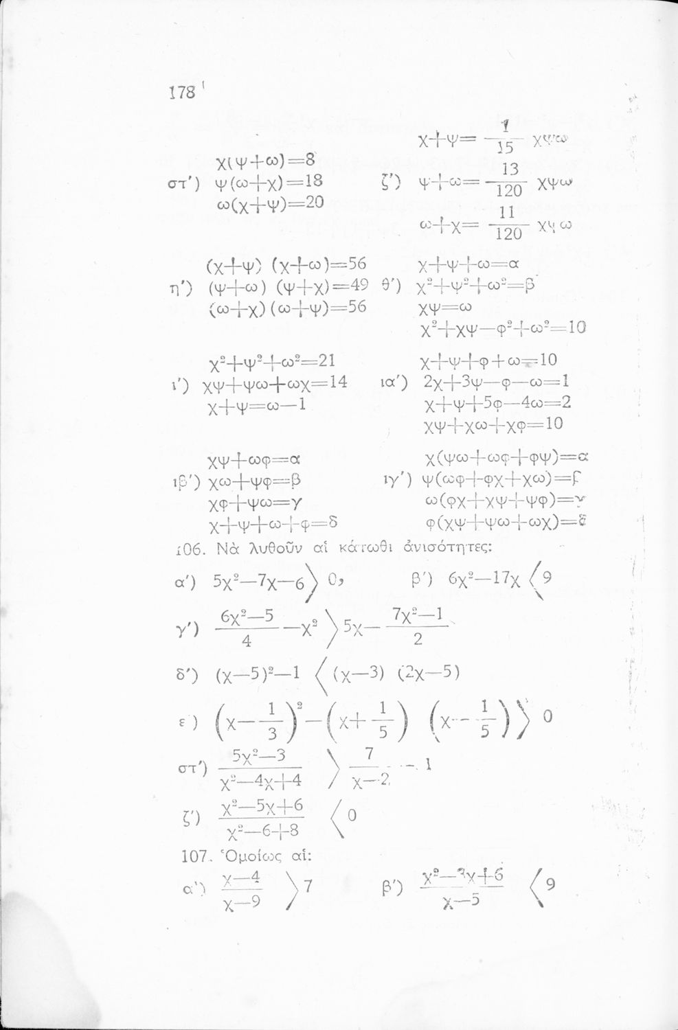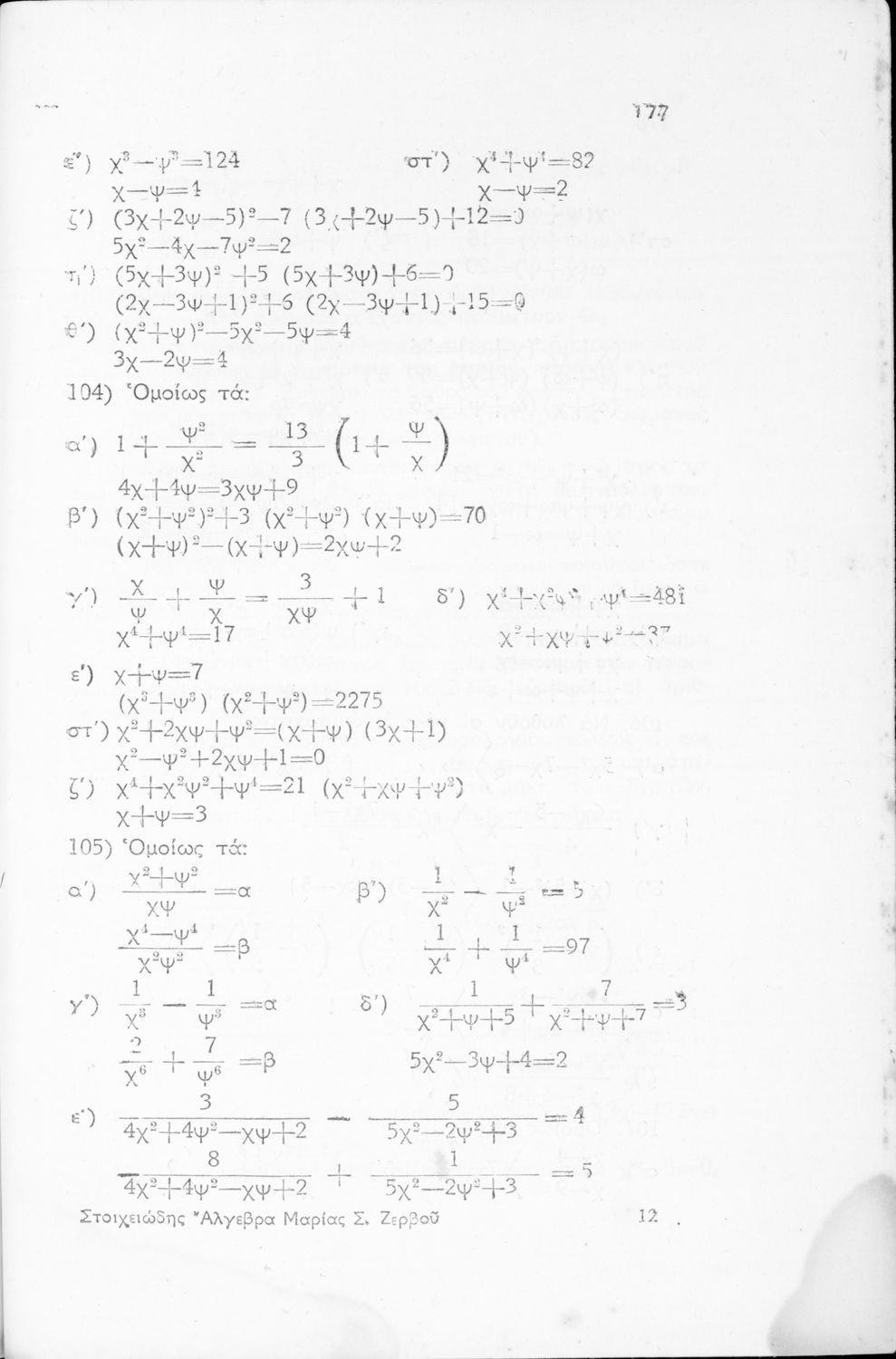 Κωδικός αναγνώρισης: 01-17976 Τίτλος: Στοιχειώδης άλγεβρα προς χρήσιν των Γυμνασίων Συγγραφέας: Μαρία Σ. Ζερβού Μέγεθος και υπόστρωμα: Σχολικό εγχειρίδιο, 21εκ., μαλακό εξώφυλλο, 185 σελίδες. |