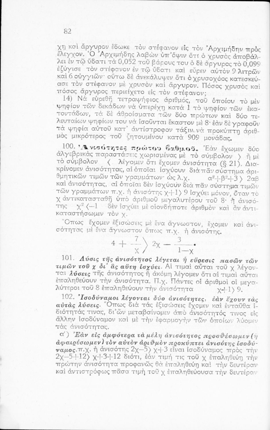 Σχολικό εγχειρίδιο Άλγεβρας Γυμνασίου που περιλαμβάνει θεωρία και ασκήσεις.