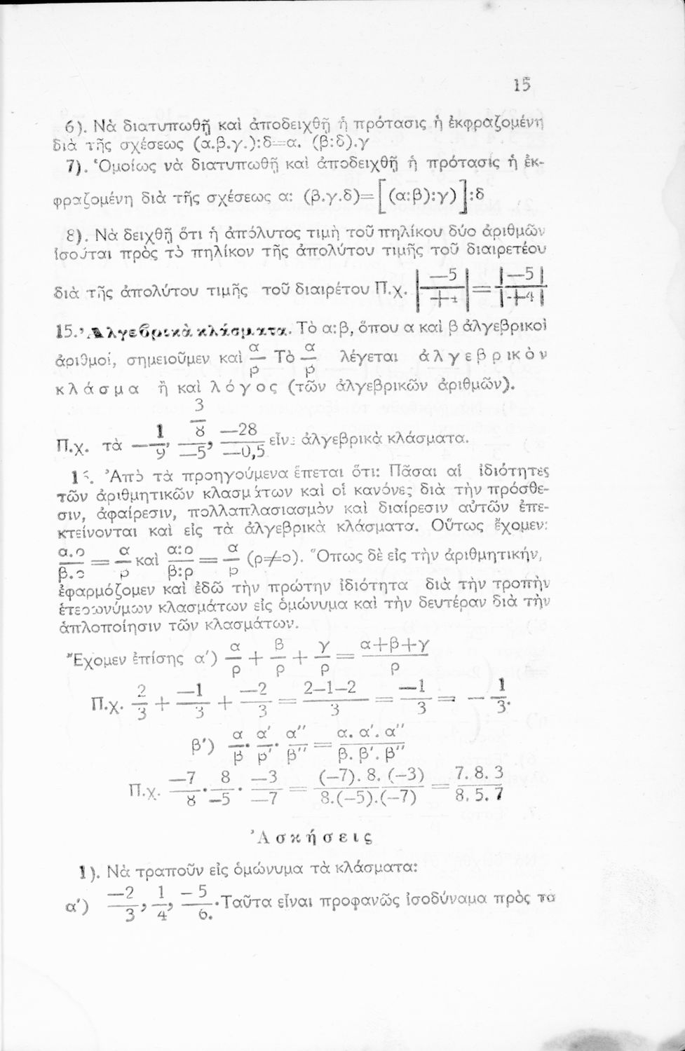 Σχολικό εγχειρίδιο Άλγεβρας Γυμνασίου που περιλαμβάνει θεωρία και ασκήσεις.
