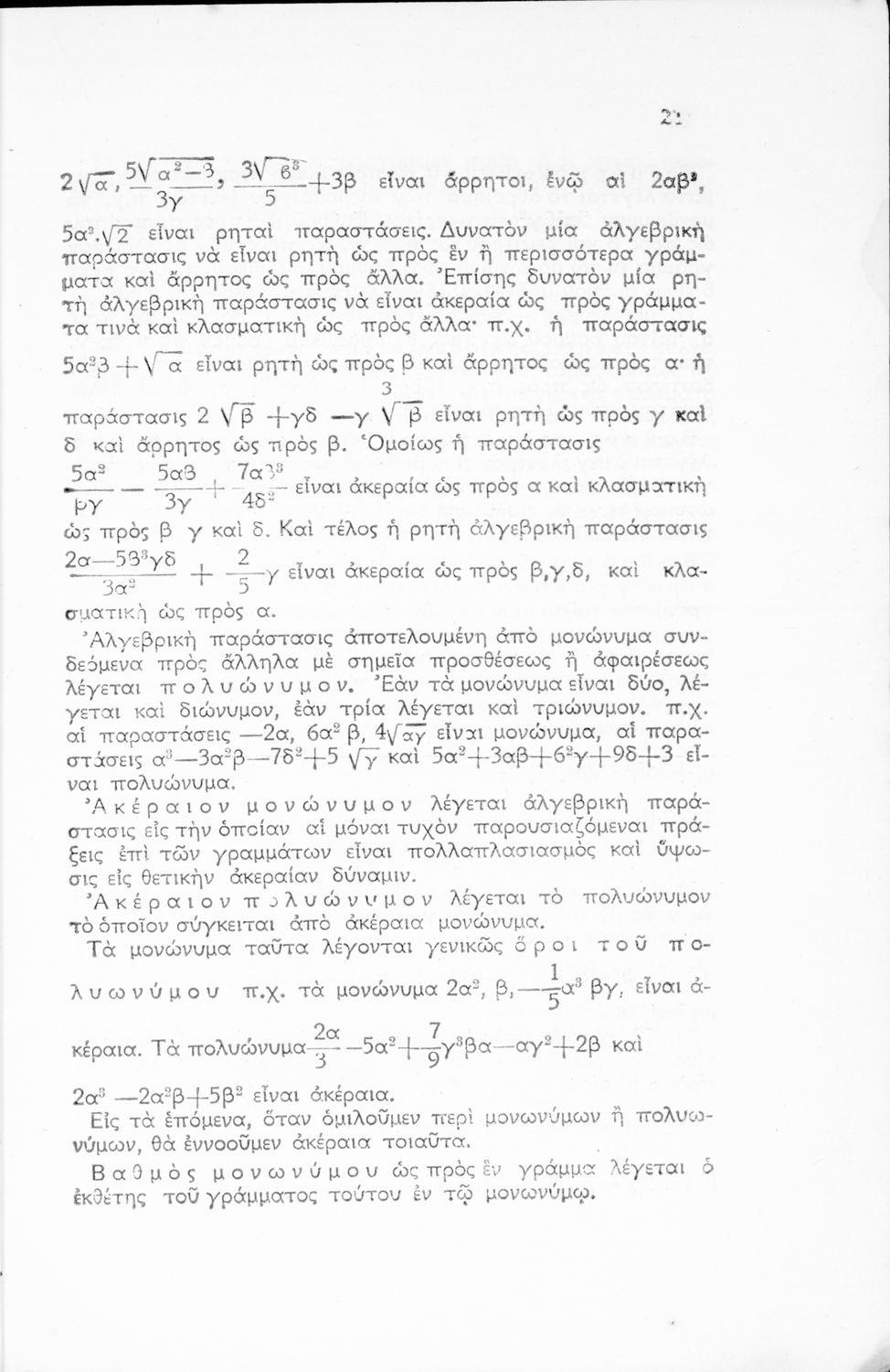 Βαθμίδα εκπαίδευσης: Δευτεροβάθμια Τάξη: Γυμνάσιο Μάθημα: Μαθηματικά Γλώσσα: Δημοτική Παρουσίαση περιεχομένου: Σχολικό εγχειρίδιο Άλγεβρας Γυμνασίου που περιλαμβάνει θεωρία και ασκήσεις. |
