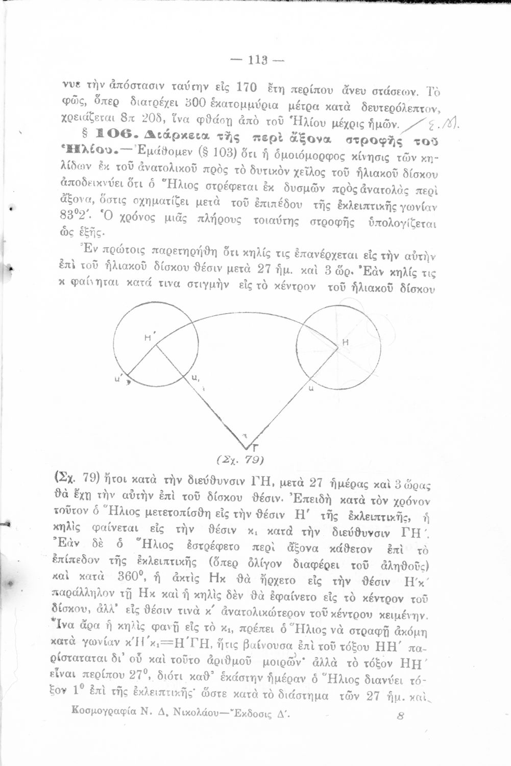 Σχολικό εγχειρίδιο Κοσμογραφίας Γυμνασίου και Πρακτικού Λυκείου που εστιάζει στην κίνηση των πλανητών και στον τρόπο υπολογισμού της τροχιάς τους. Ο συγγραφέας ήταν καθηγητής στην πρότυπη Βαρβάκειο σχολή του Διδασκαλείου Μέσης Εκπαίδευσης.