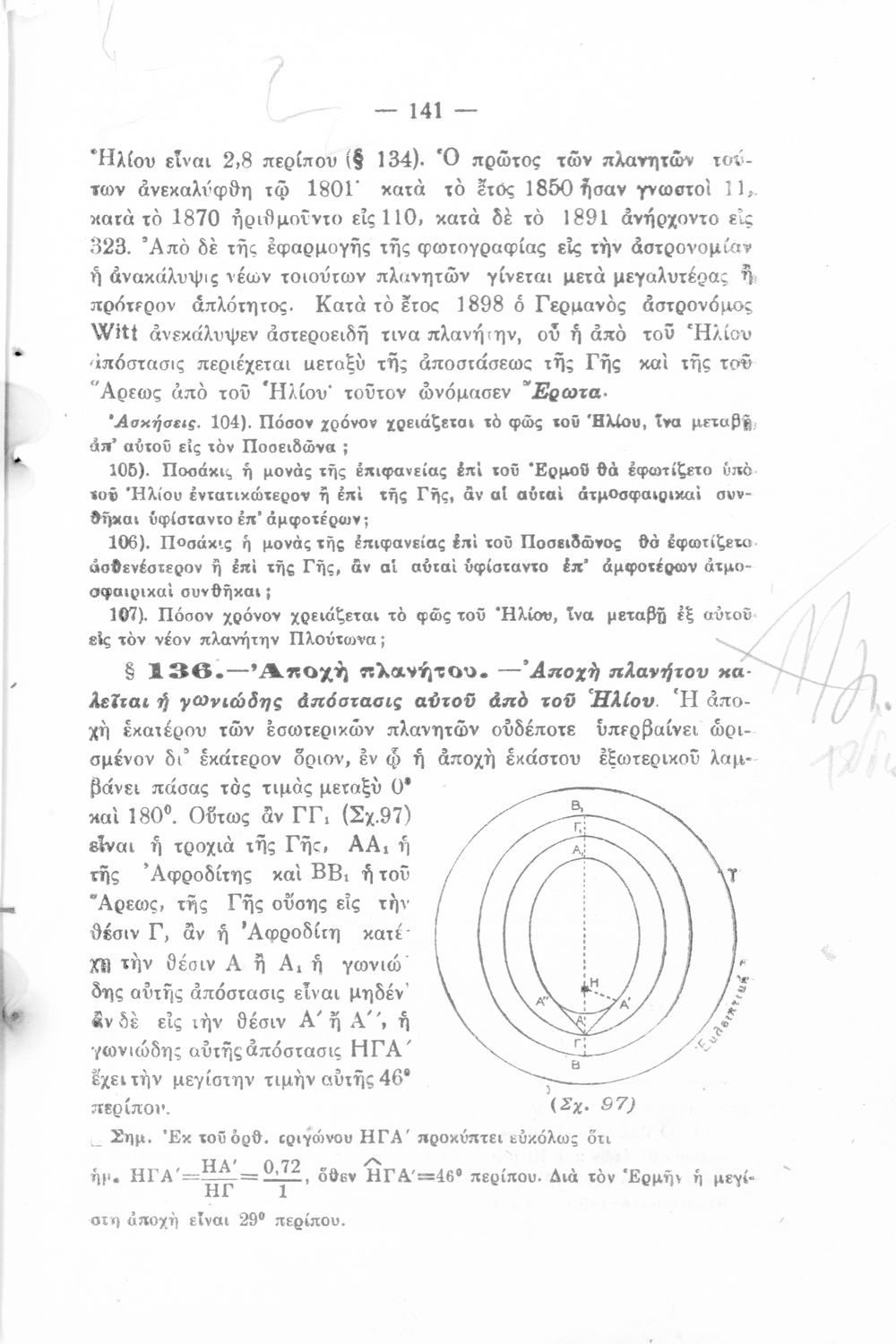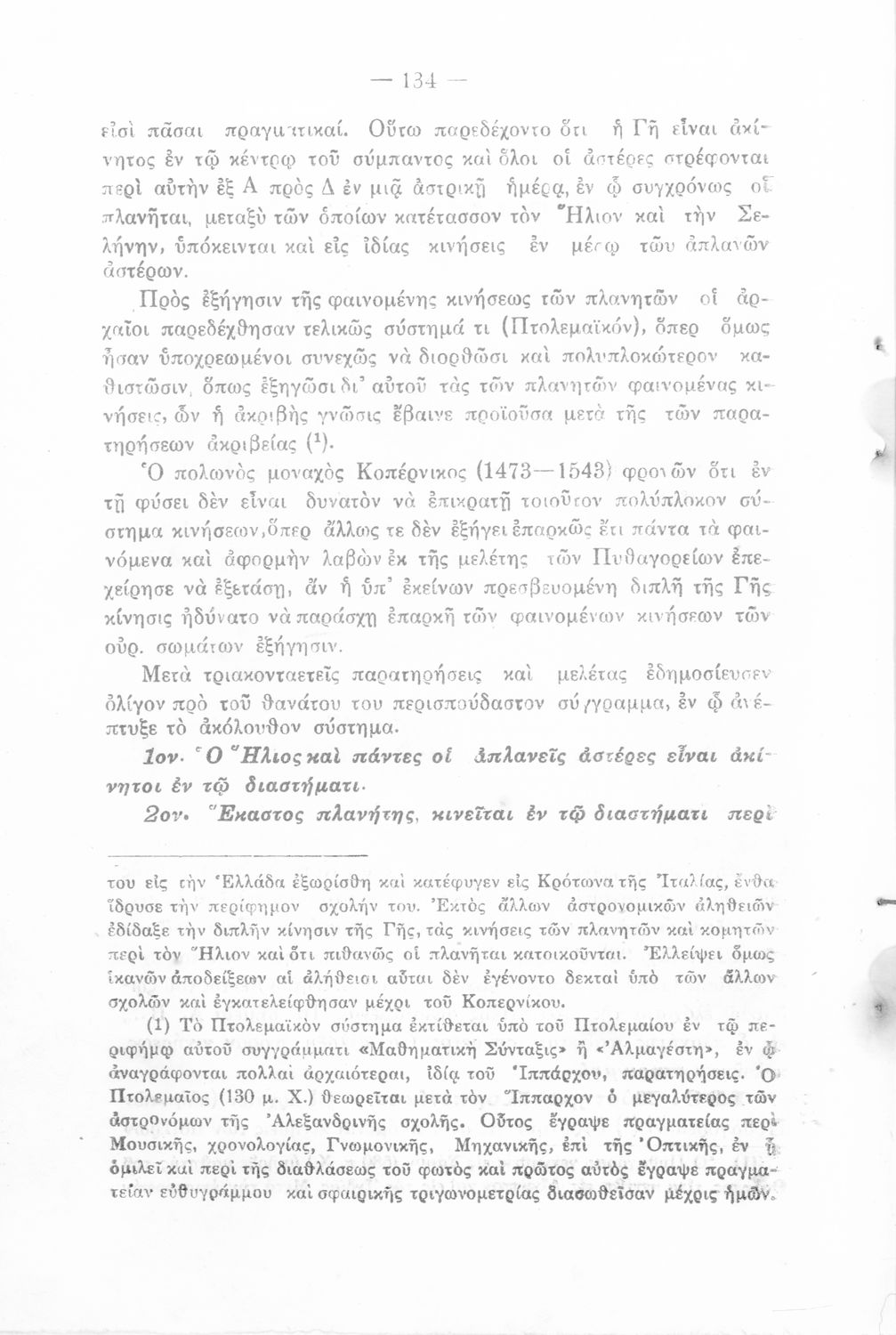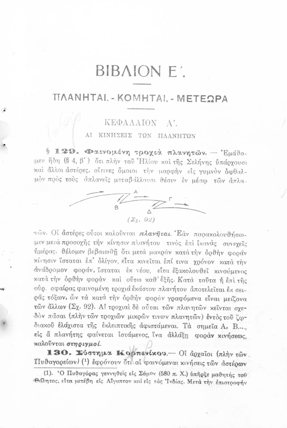 Σχολικό εγχειρίδιο Κοσμογραφίας Γυμνασίου και Πρακτικού Λυκείου που εστιάζει στην κίνηση των πλανητών και στον τρόπο υπολογισμού της τροχιάς τους. Ο συγγραφέας ήταν καθηγητής στην πρότυπη Βαρβάκειο σχολή του Διδασκαλείου Μέσης Εκπαίδευσης.