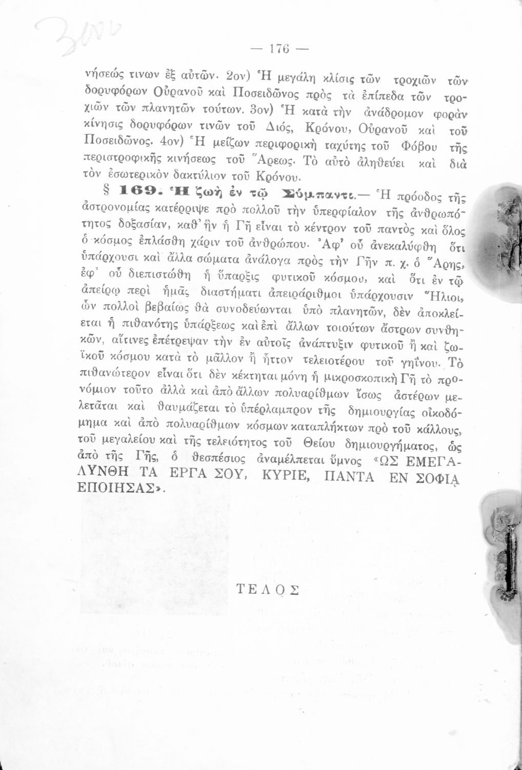 Βαθμίδα εκπαίδευσης: Δευτεροβάθμια Τάξη: Γυμνάσιο / Πρακτικό Λύκειο Μάθημα: Κοσμογραφία Γλώσσα: Καθαρεύουσα Παρουσίαση περιεχομένου: Σχολικό εγχειρίδιο Κοσμογραφίας Γυμνασίου και Πρακτικού Λυκείου που εστιάζει στην κίνηση των πλανητών και στον τρόπο υπολογισμού της τροχιάς τους. Ο συγγραφέας ήταν καθηγητής στην πρότυπη Βαρβάκειο σχολή του Διδασκαλείου Μέσης Εκπαίδευσης. |