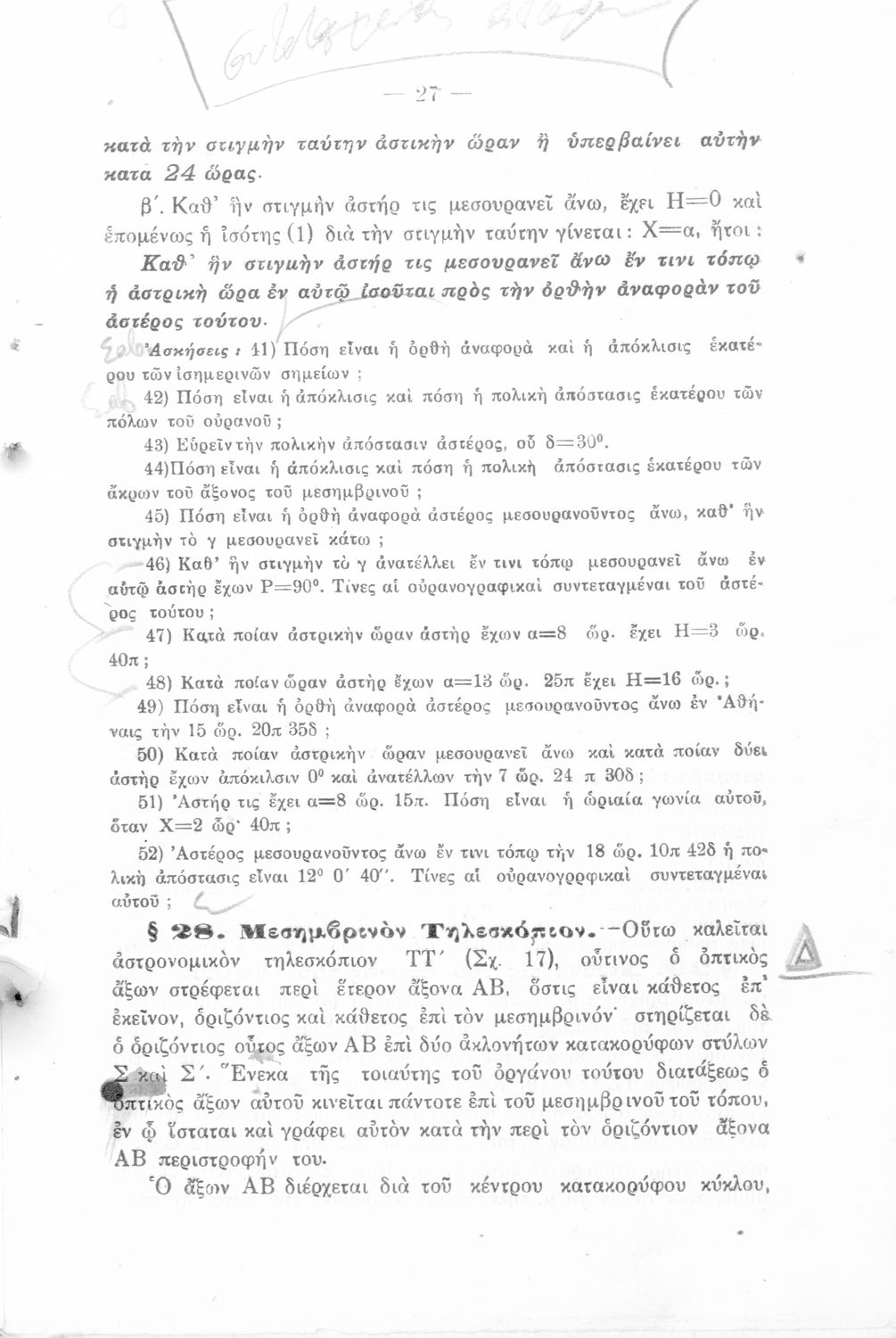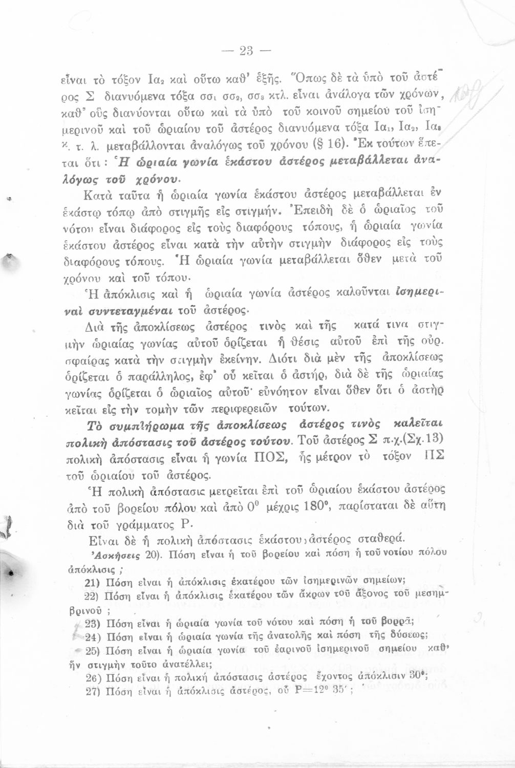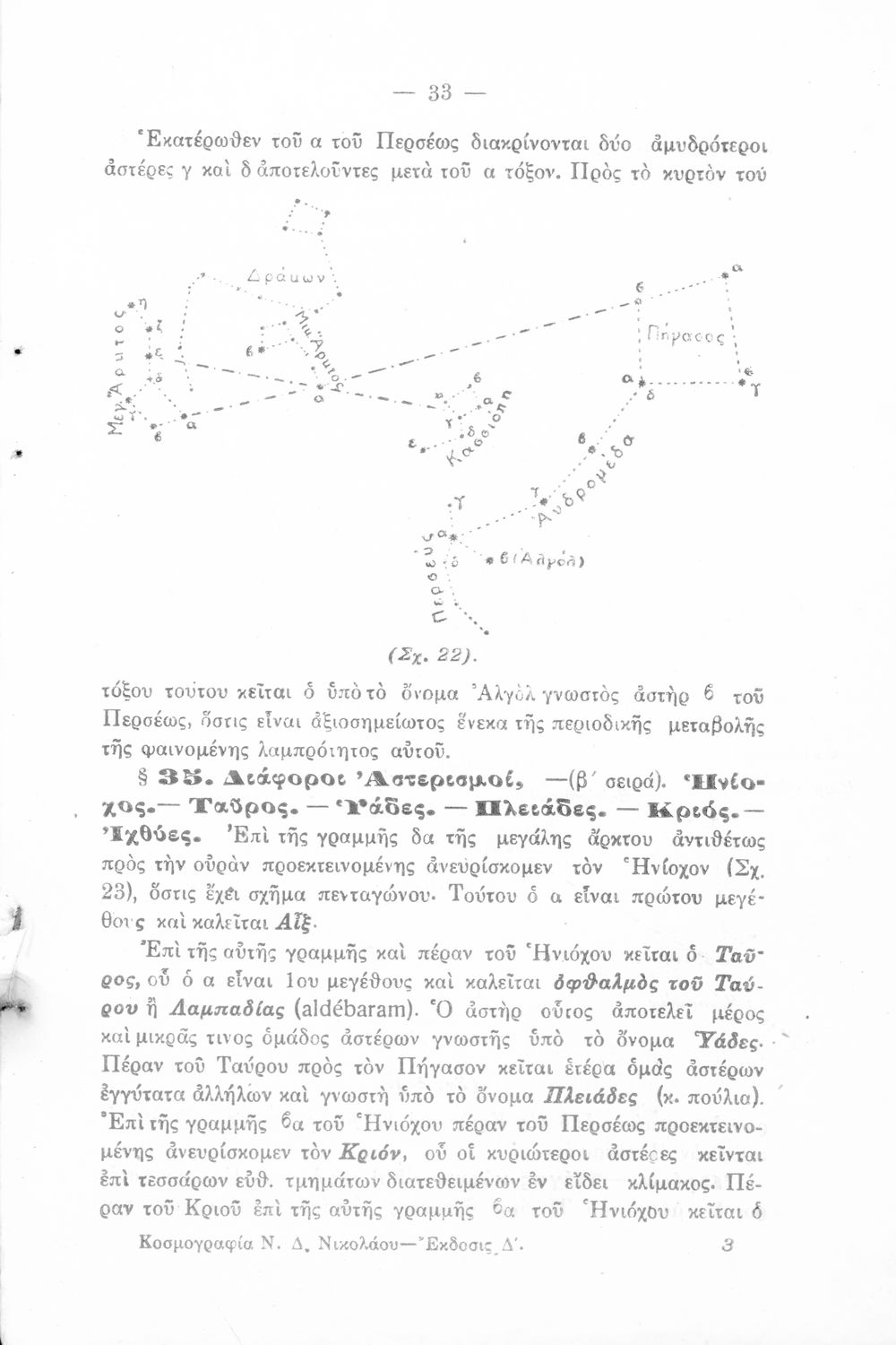 Παρουσίαση περιεχομένου: Σχολικό εγχειρίδιο Κοσμογραφίας Γυμνασίου και Πρακτικού Λυκείου που εστιάζει στην κίνηση των πλανητών και στον τρόπο υπολογισμού της τροχιάς τους. Ο συγγραφέας ήταν καθηγητής στην πρότυπη Βαρβάκειο σχολή του Διδασκαλείου Μέσης Εκπαίδευσης.