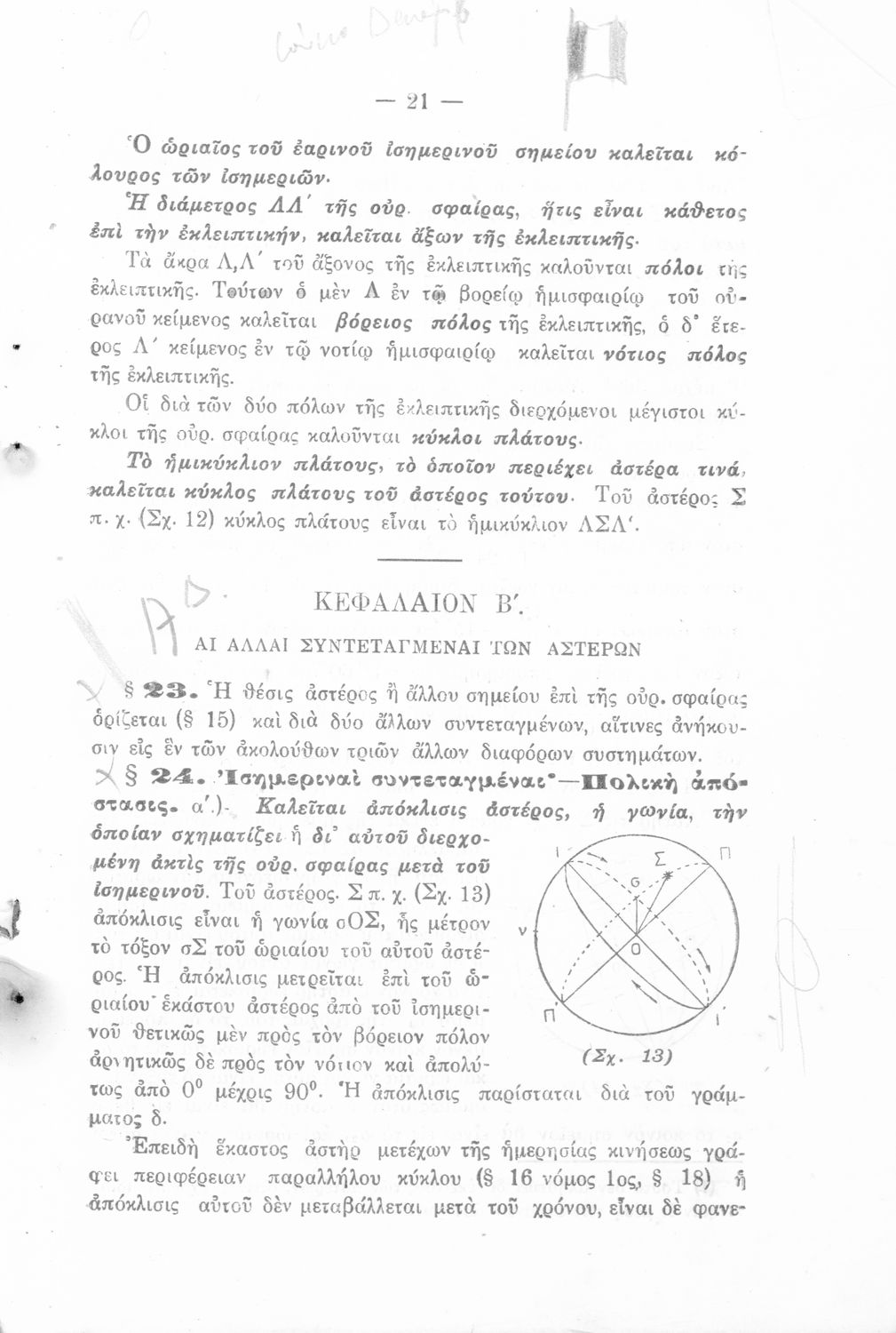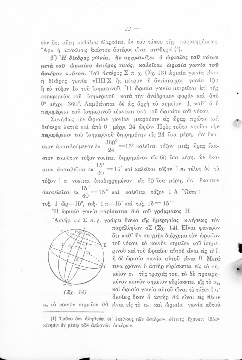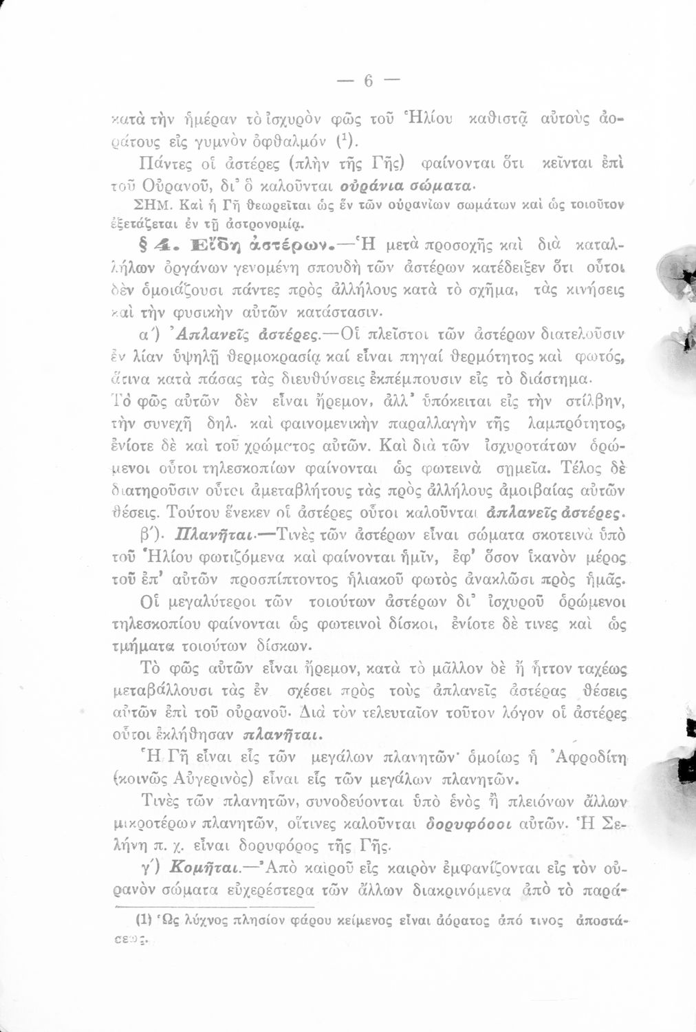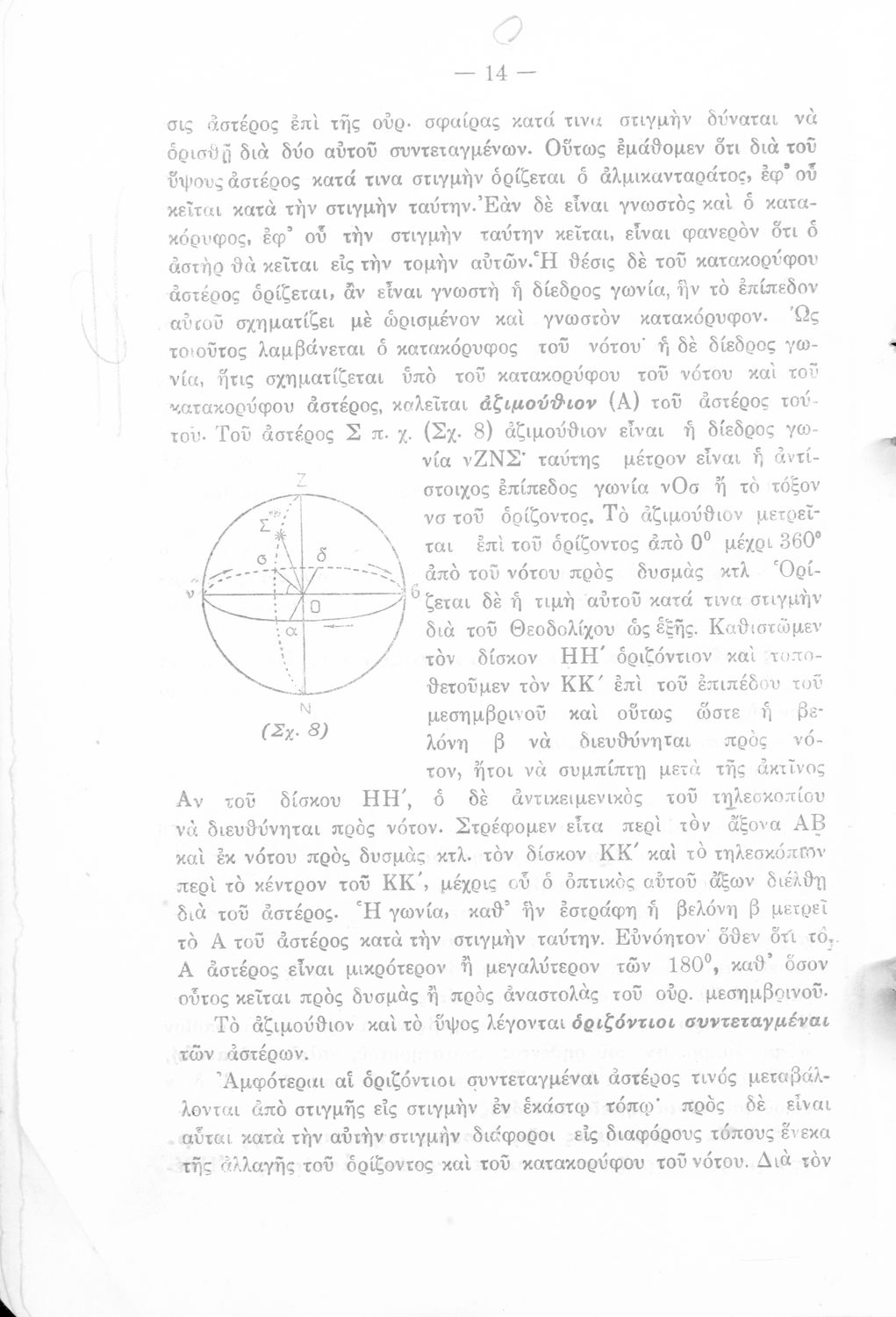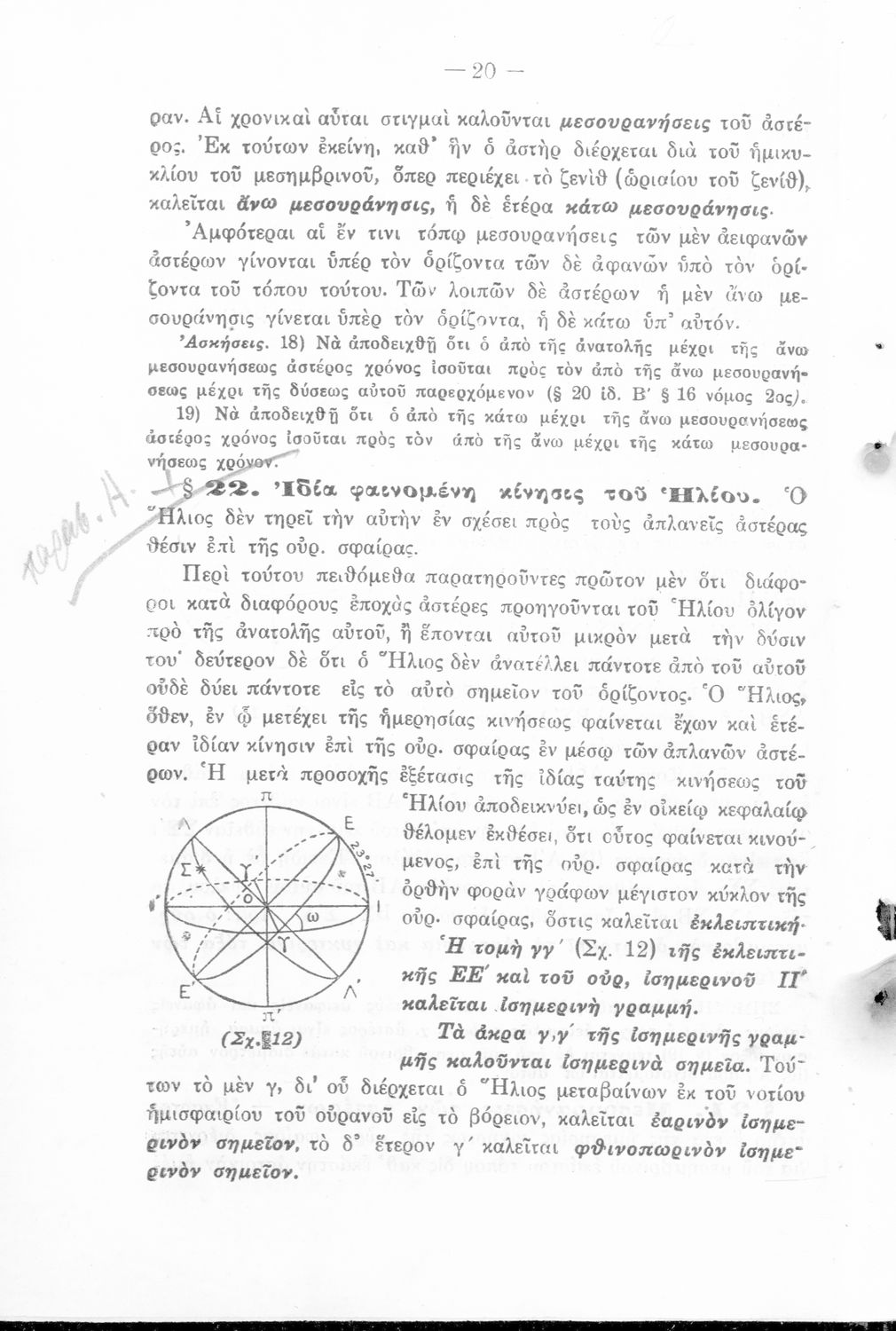 Σχολικό εγχειρίδιο Κοσμογραφίας Γυμνασίου και Πρακτικού Λυκείου που εστιάζει στην κίνηση των πλανητών και στον τρόπο υπολογισμού της τροχιάς τους. Ο συγγραφέας ήταν καθηγητής στην πρότυπη Βαρβάκειο σχολή του Διδασκαλείου Μέσης Εκπαίδευσης.